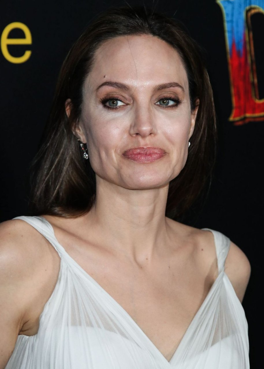 Le foto professionali di Angelina Jolie dall’evento sono qui! L’attrice più famosa ancora in vita è stata vista sul tappeto rosso della prima del film “Dumbo” a Los Angeles, 11/03/2019. Indossava un classico vestito bianco che metteva in mostra le sue mani, il sorriso e i tatuaggi. Non molto tempo fa, questa donna era una delle celebrità più belle al mondo, ma ora è solo un mucchio di ossa e pelle.