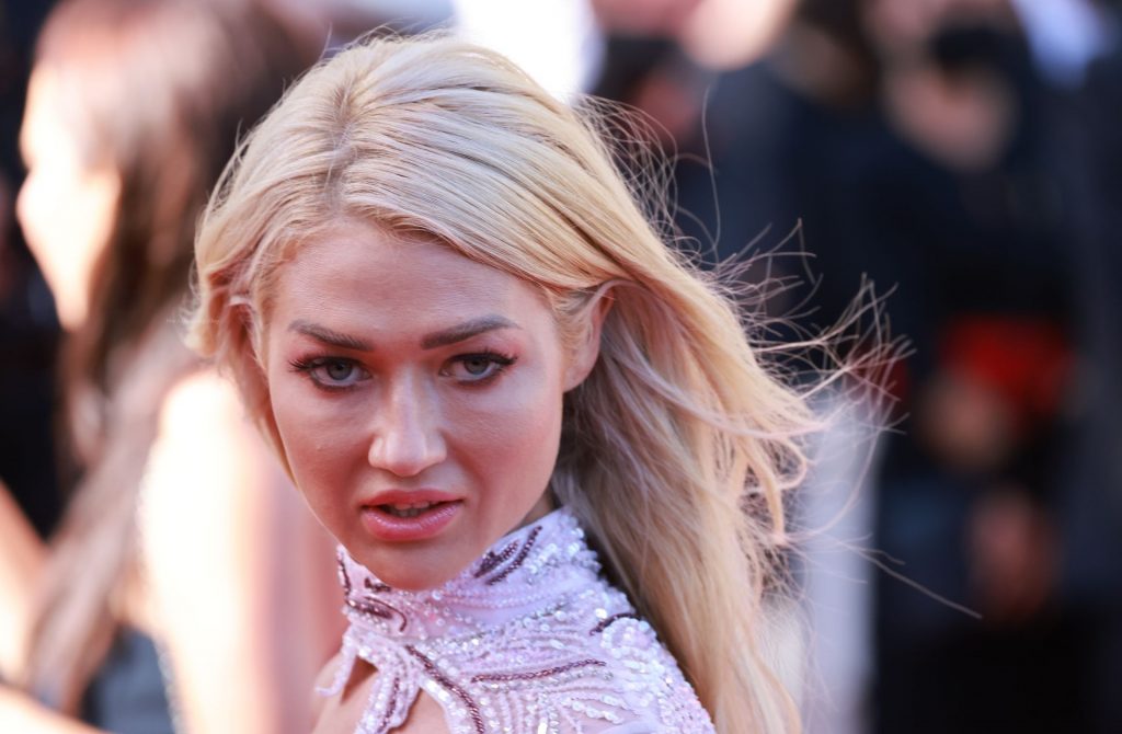 La giornalista Angelina Kali arriva per la proiezione del film “A Felesegem Tortenete” (La Storia di Mia Moglie) durante il 74º Festival di Cannes, 14/07/2021.