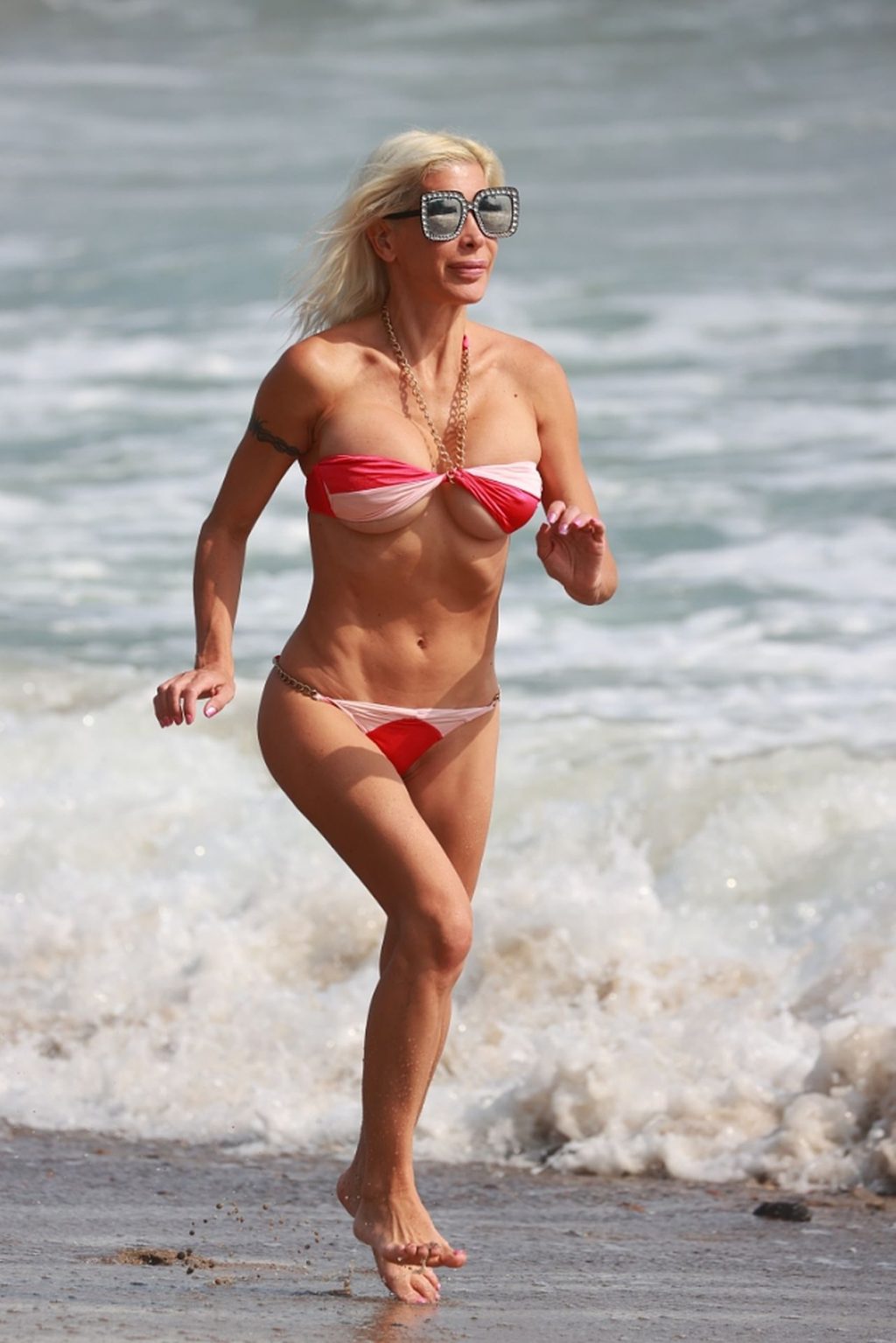 Angelique “Frenchy” Morgan si gode una giornata in spiaggia a Malibu, indossando un bikini quasi inesistente, 05/10/2020.