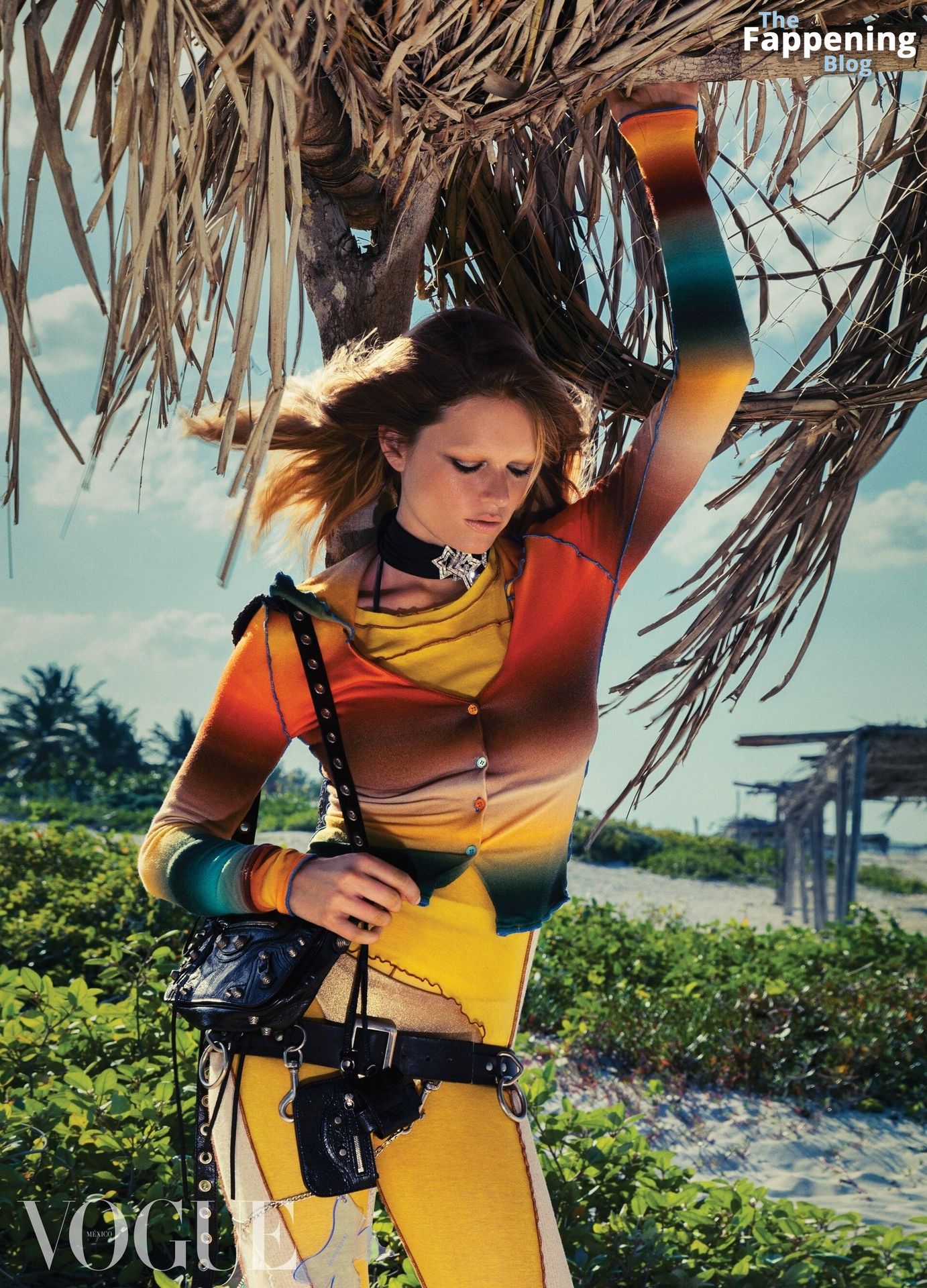 Anna Ewers sta spaccando sui set in Messico e Grecia. Le sue sopracciglia sono perfette, e trasmette forti vibrazioni da Brigitte Bardot nel suo servizio per Vogue. Ma guarda un po’, dai un’occhiata alle sue scarpe. Sembra che abbia dimenticato di portare un paio di scarpe e abbia finito per scattare con lo stesso paio! Questo spiega perché ci sono così tante foto ravvicinate con il piede tagliato.