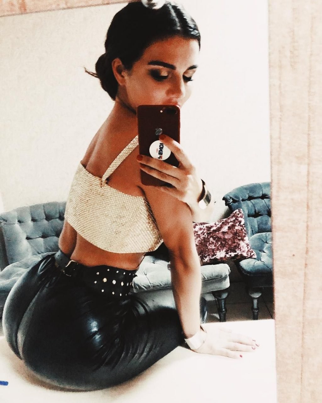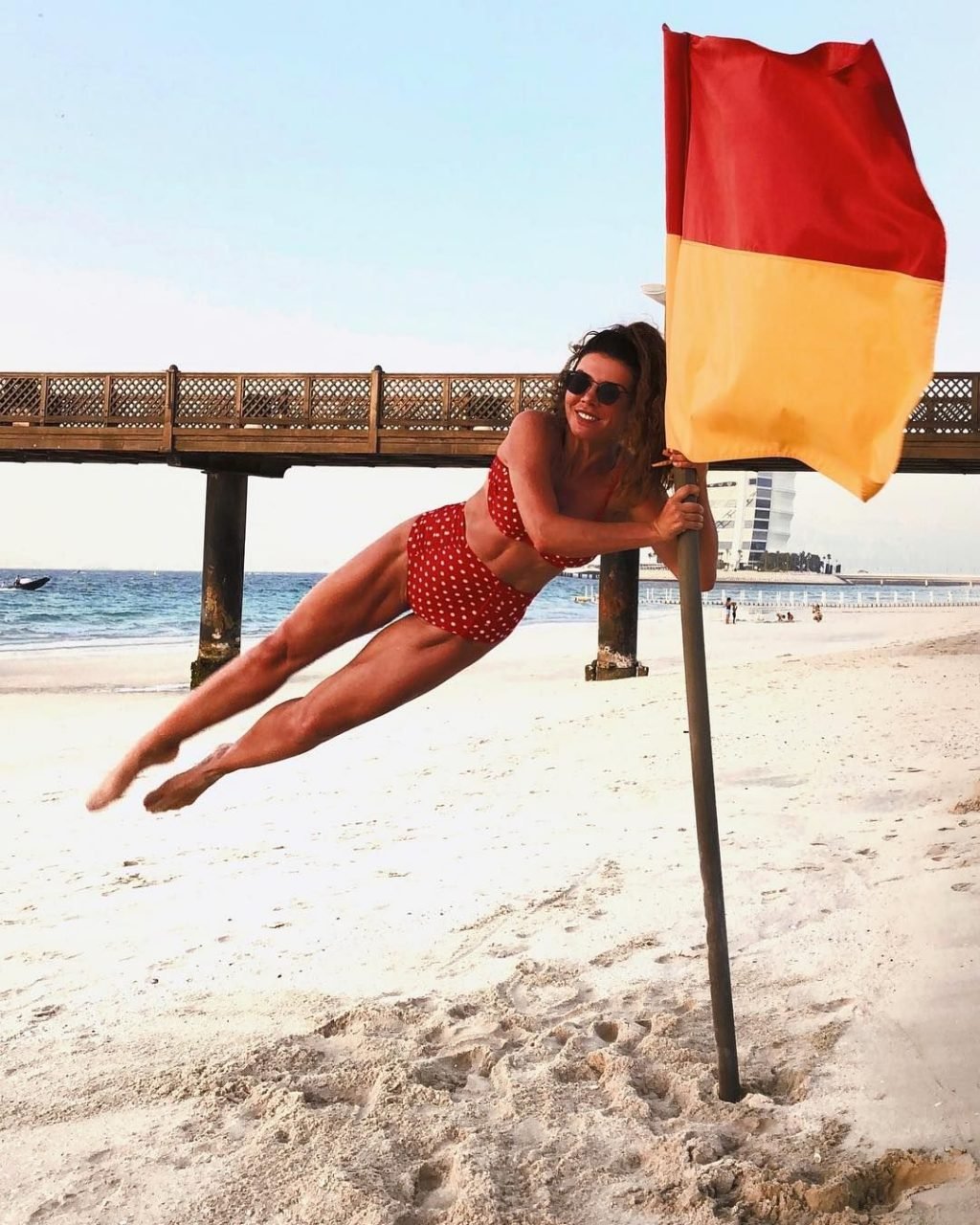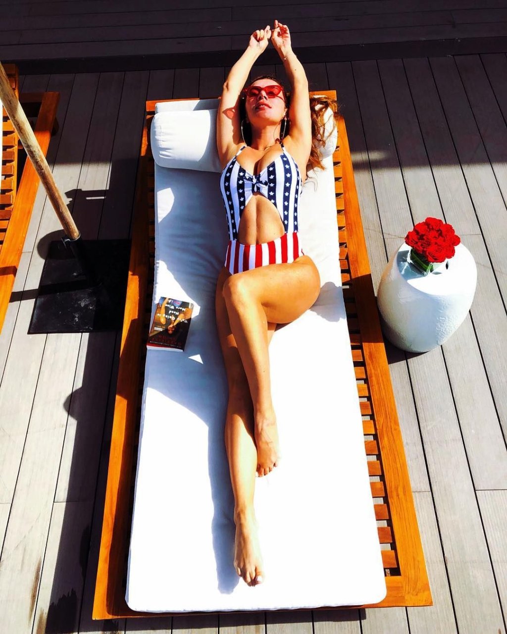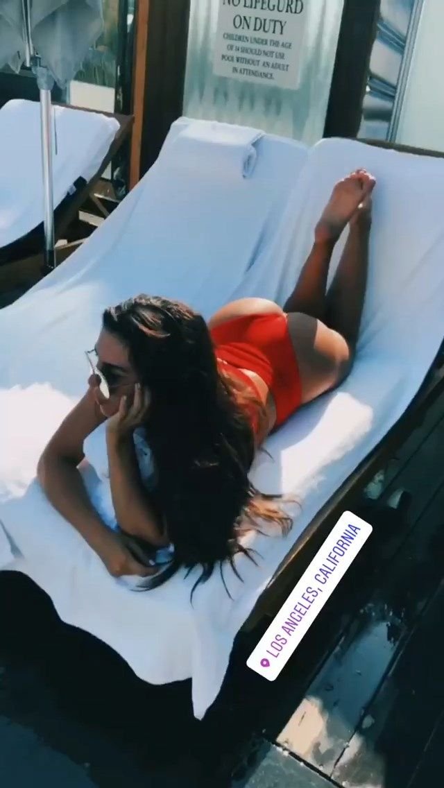 Nell’immagine, condivisa con i suoi follower su Instagram, aveva avvolto intorno a sé un foglio di plastica rosso. Un’altra foto scattata nello stesso momento la mostra indossare un top in stile basco abbinato al foglio di plastica.
