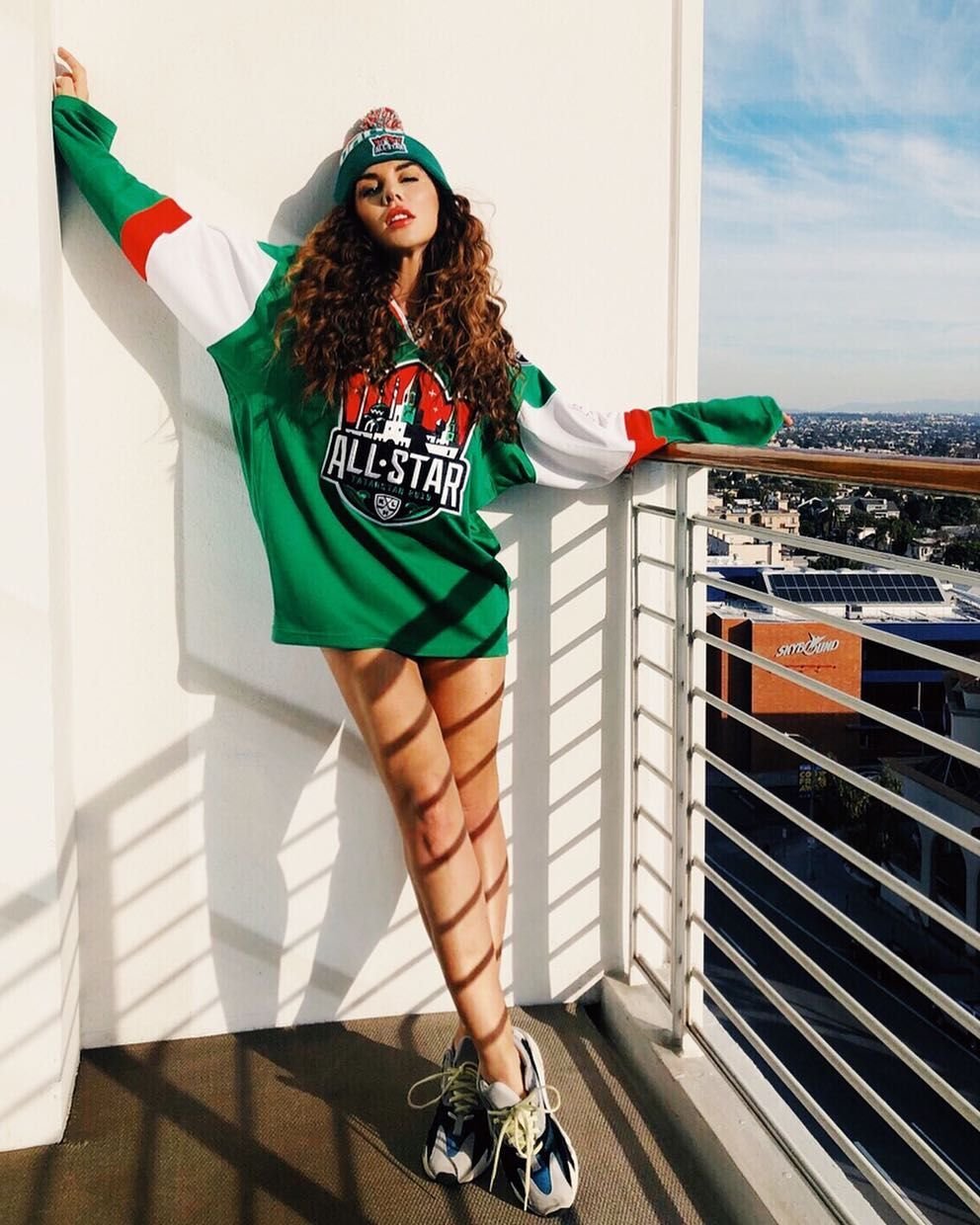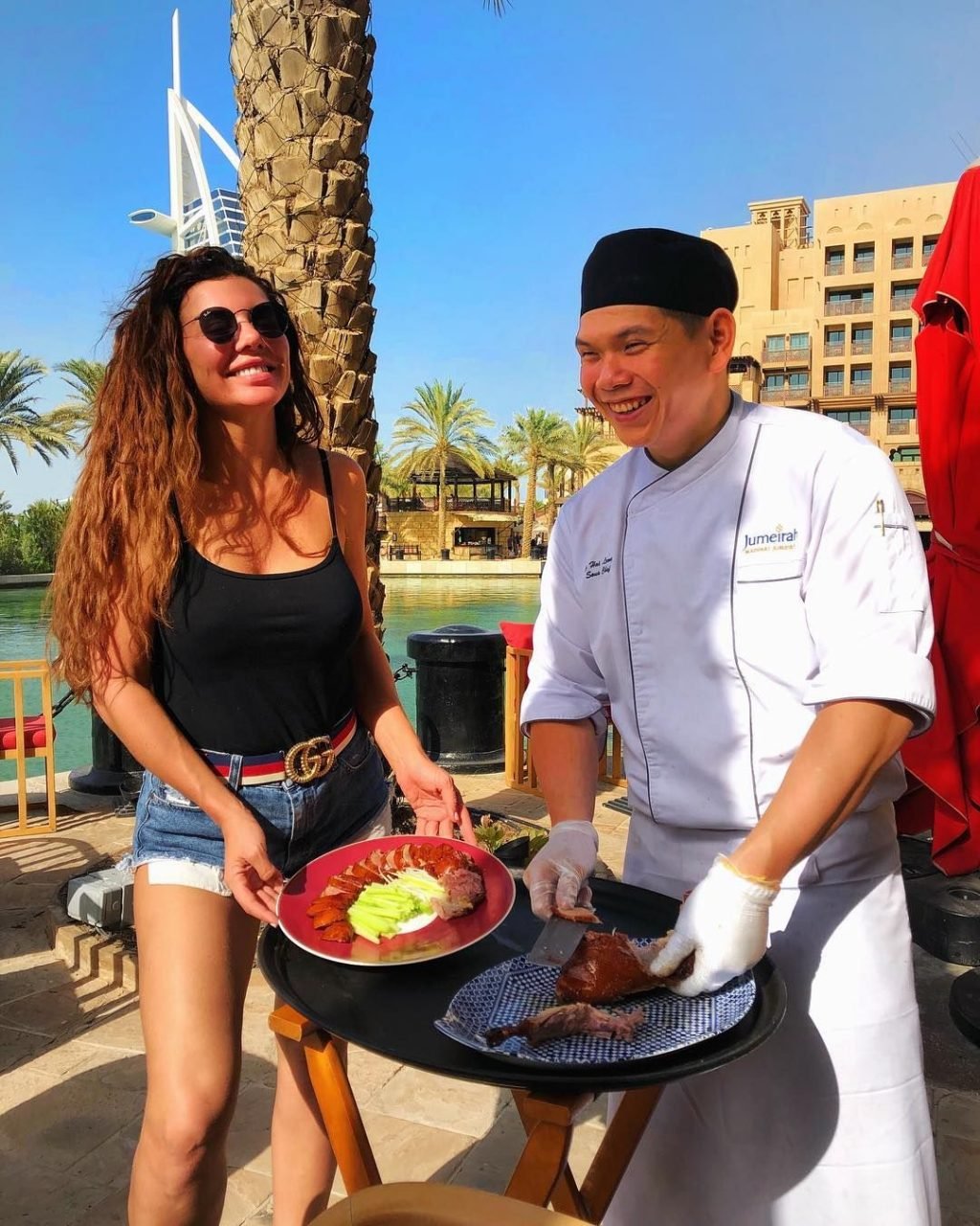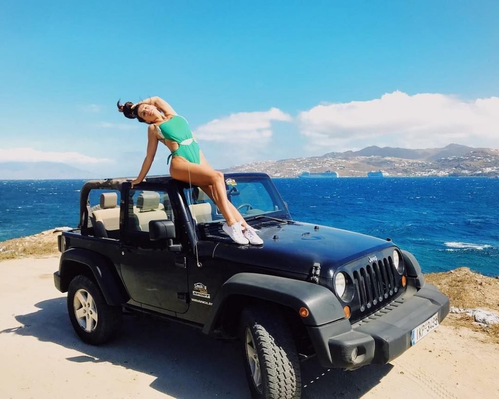 Nell’immagine, condivisa con i suoi follower su Instagram, aveva avvolto intorno a sé un foglio di plastica rosso. Un’altra foto scattata nello stesso momento la mostra indossare un top in stile basco abbinato al foglio di plastica.