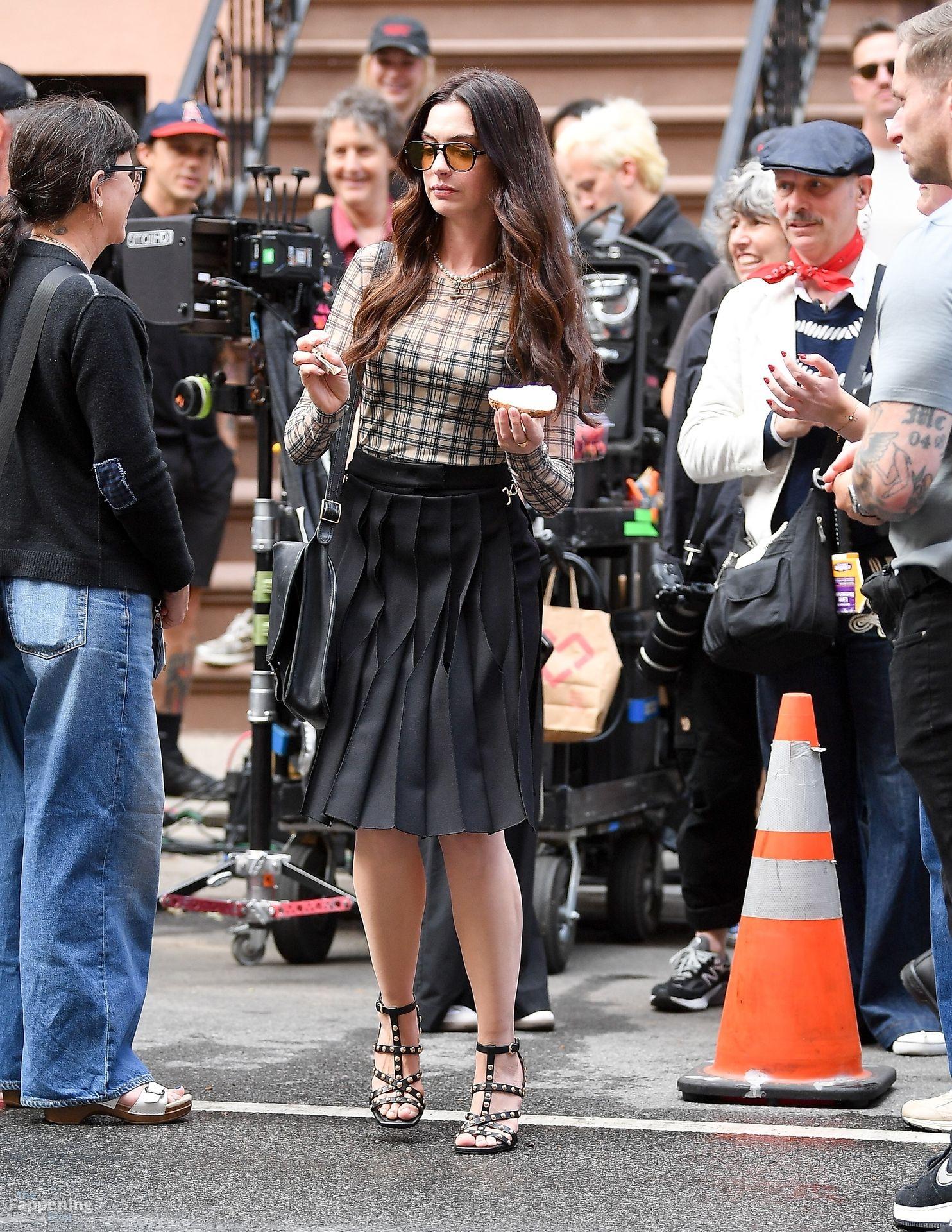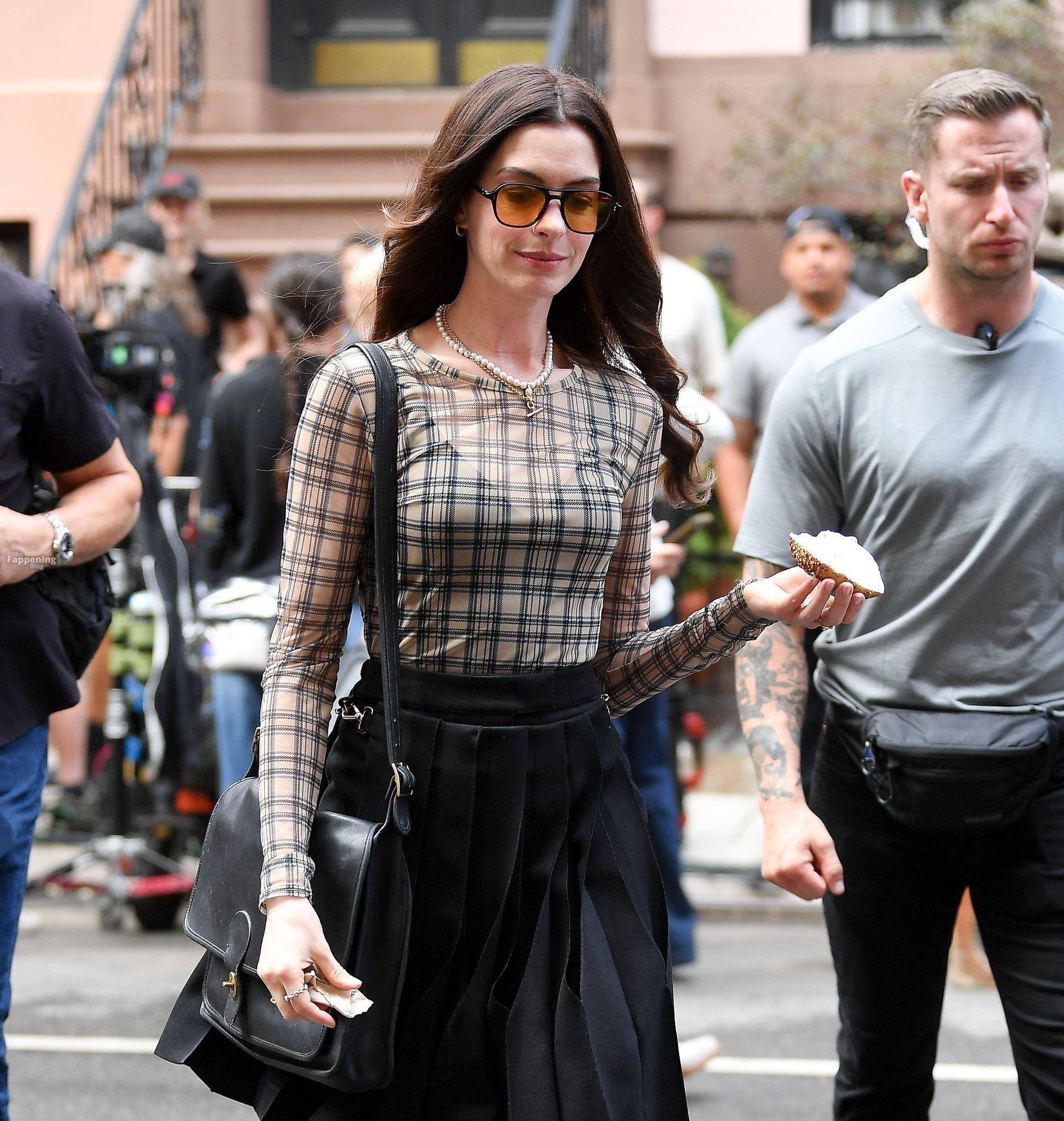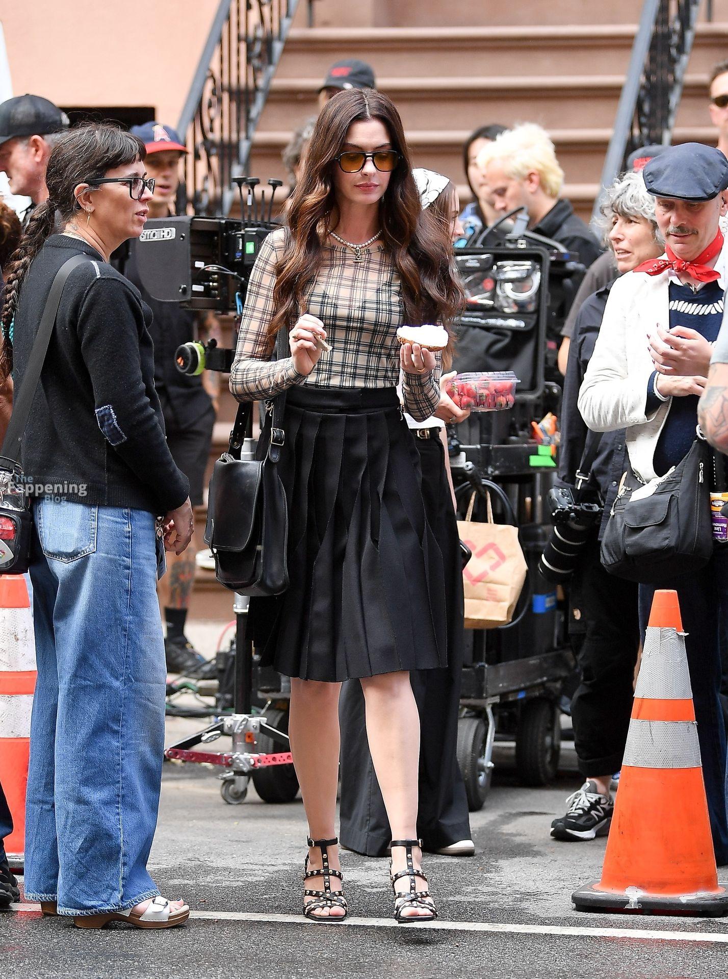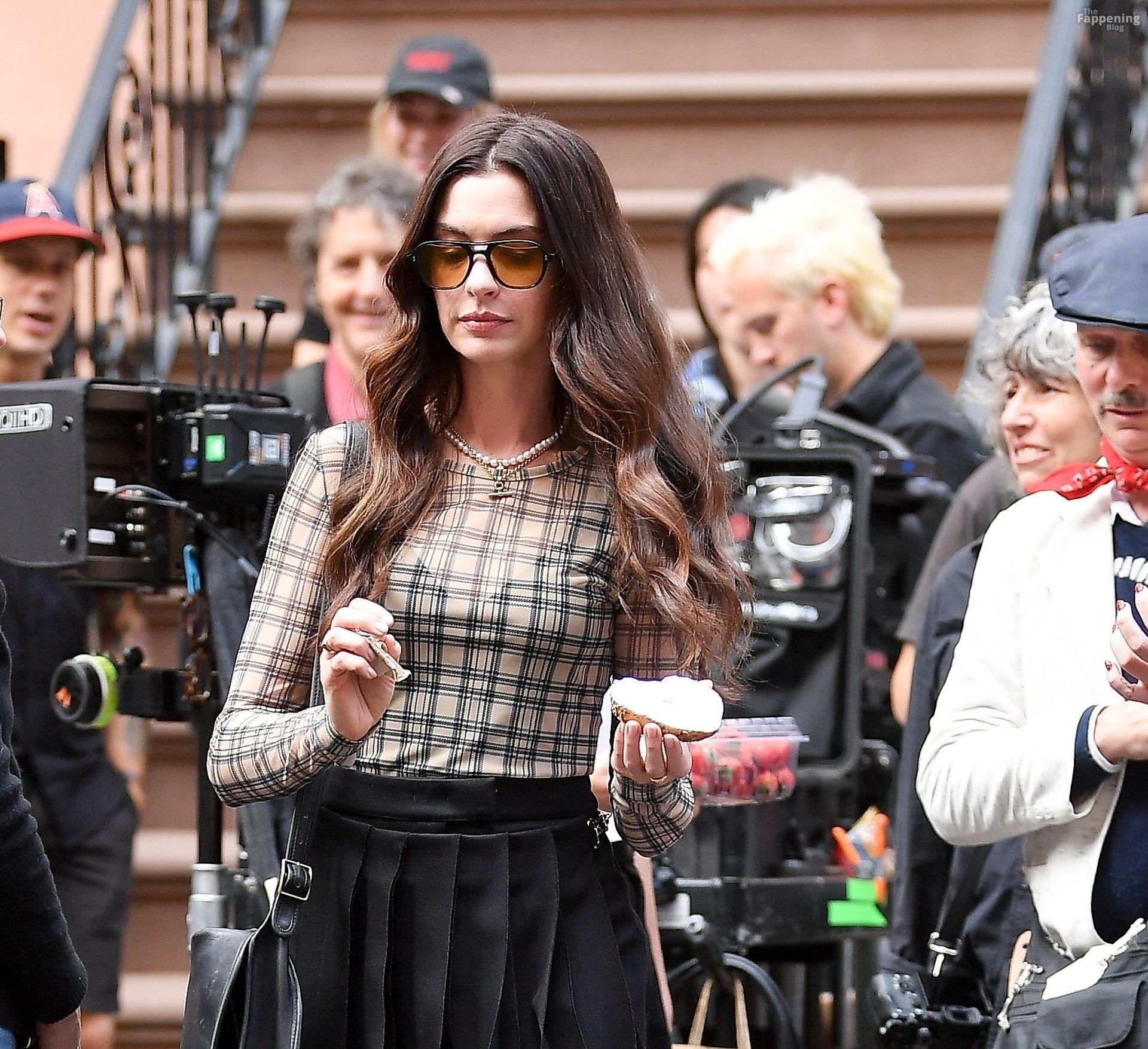 “STO BENE!” ha detto Anne Hathaway con un sorriso, dopo essere caduta dalle scale durante le riprese di “Il Diavolo Veste Prada 2” a New York.