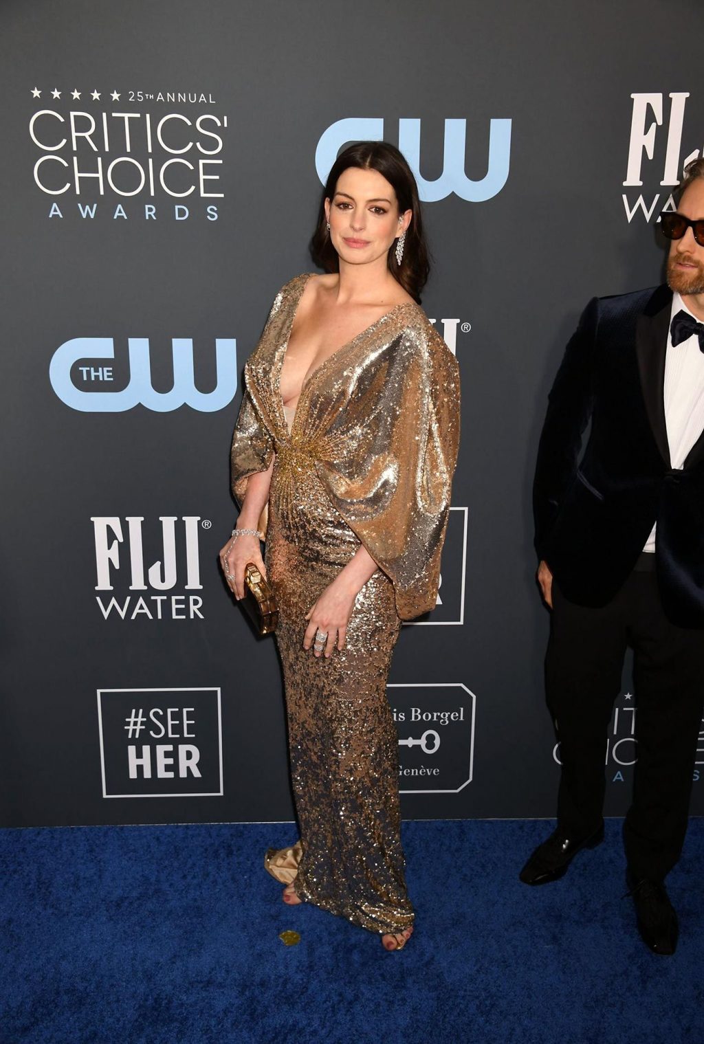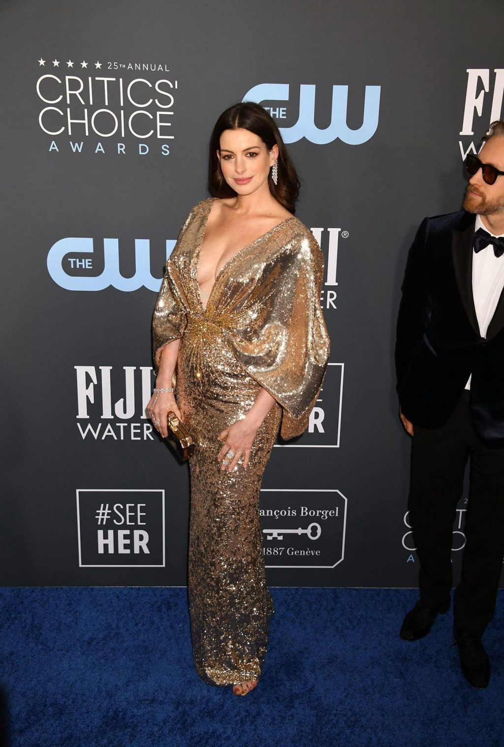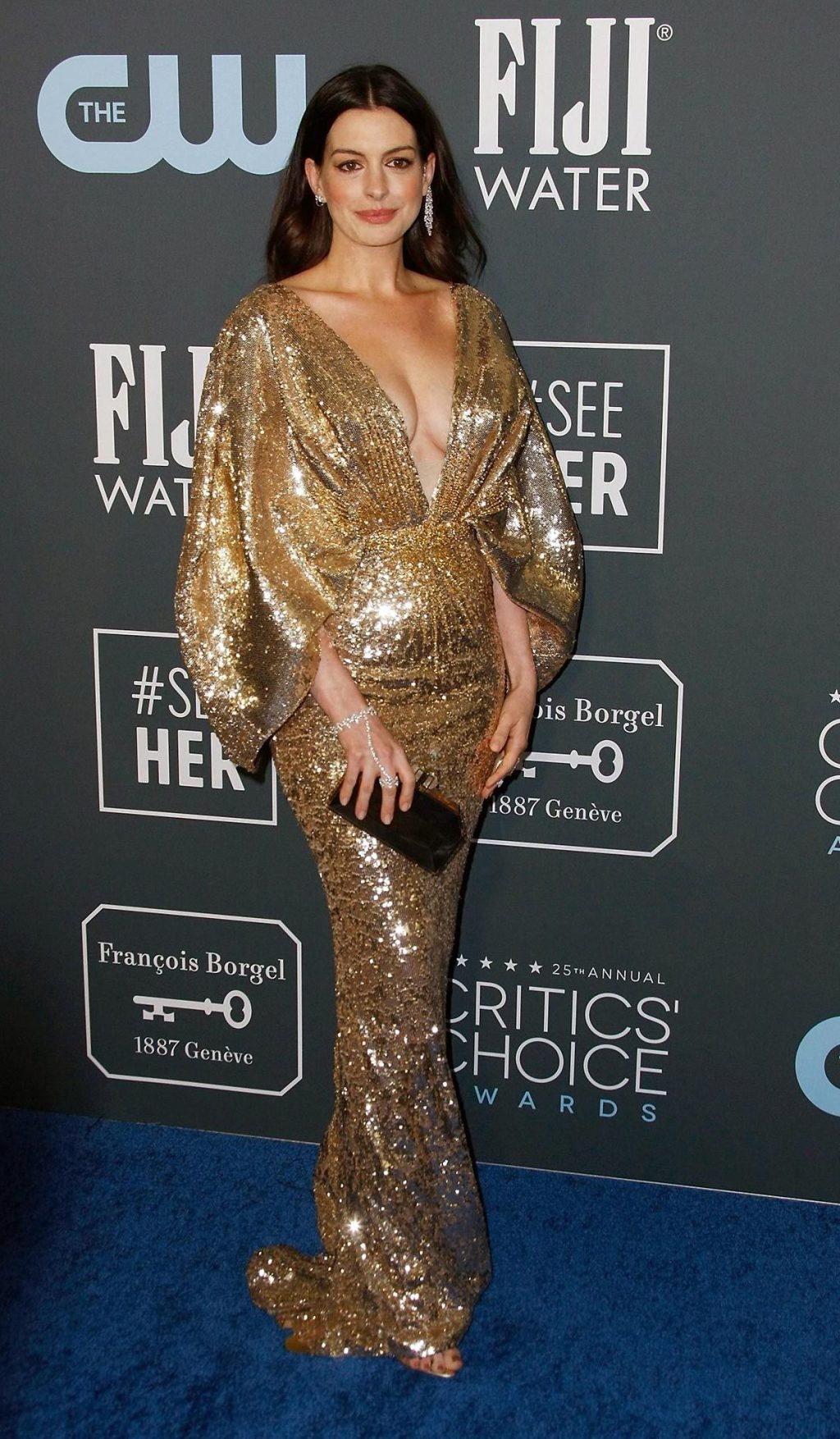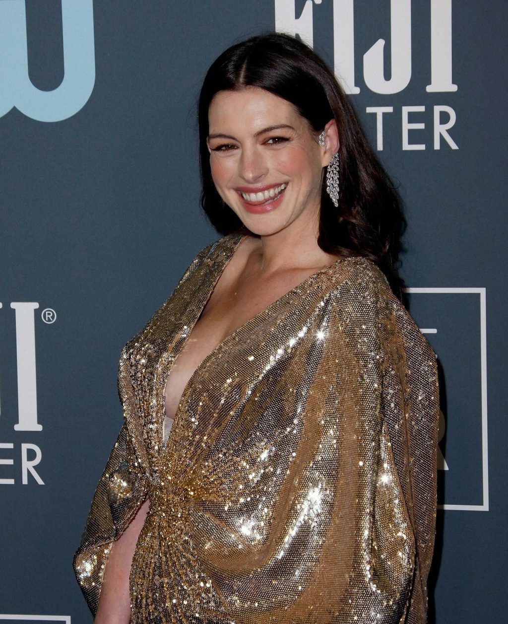 Folks, you have to see this! Miss Anne Hathaway showed off her ample cleavage at the Critics’ Choice Awards in Santa Monica! Her tits almost fell out of her dress! And I just now realized why! She is still breastfeeding! After having her second baby just a few weeks ago, our favorite leaked nude celebrity Anne Hathaway is back on the red carpet!