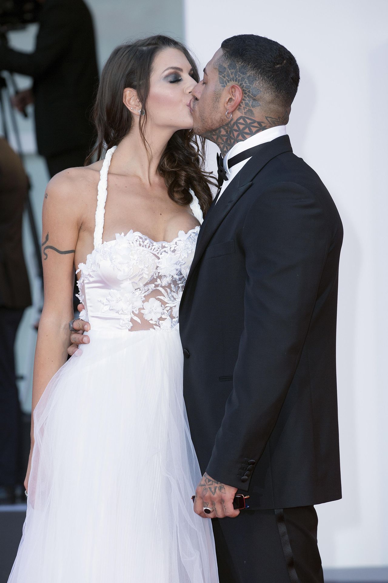 Sexy modella italiana Antonella Fiordelisi mostra il suo décolleté posando con un abito bianco sul red carpet prima del film “Le Sorelle Macaluso” al 77° Festival del Cinema di Venezia a Venezia, 09/09/2020.
