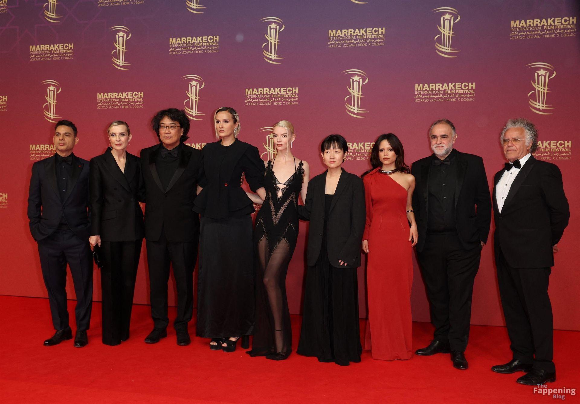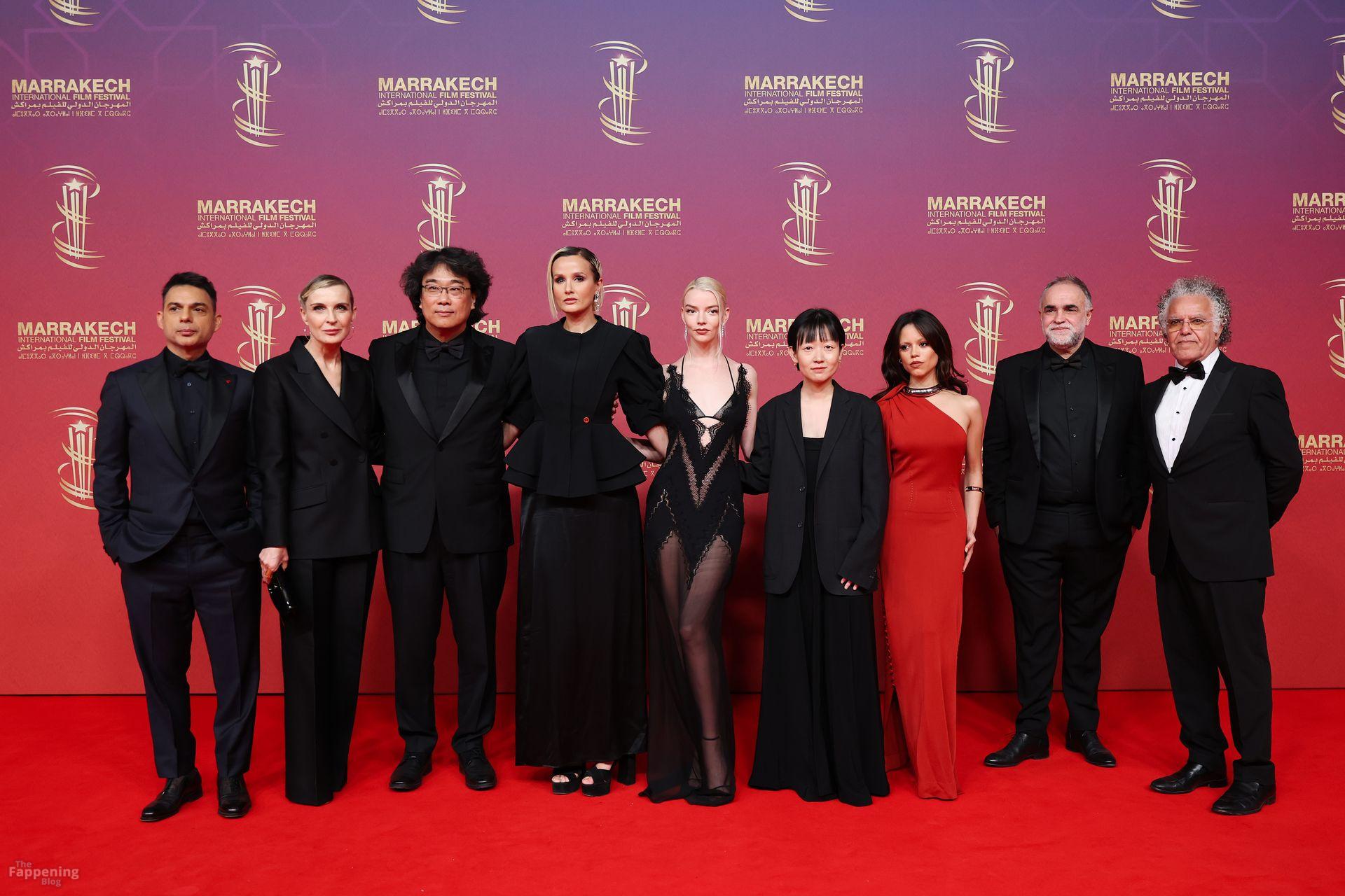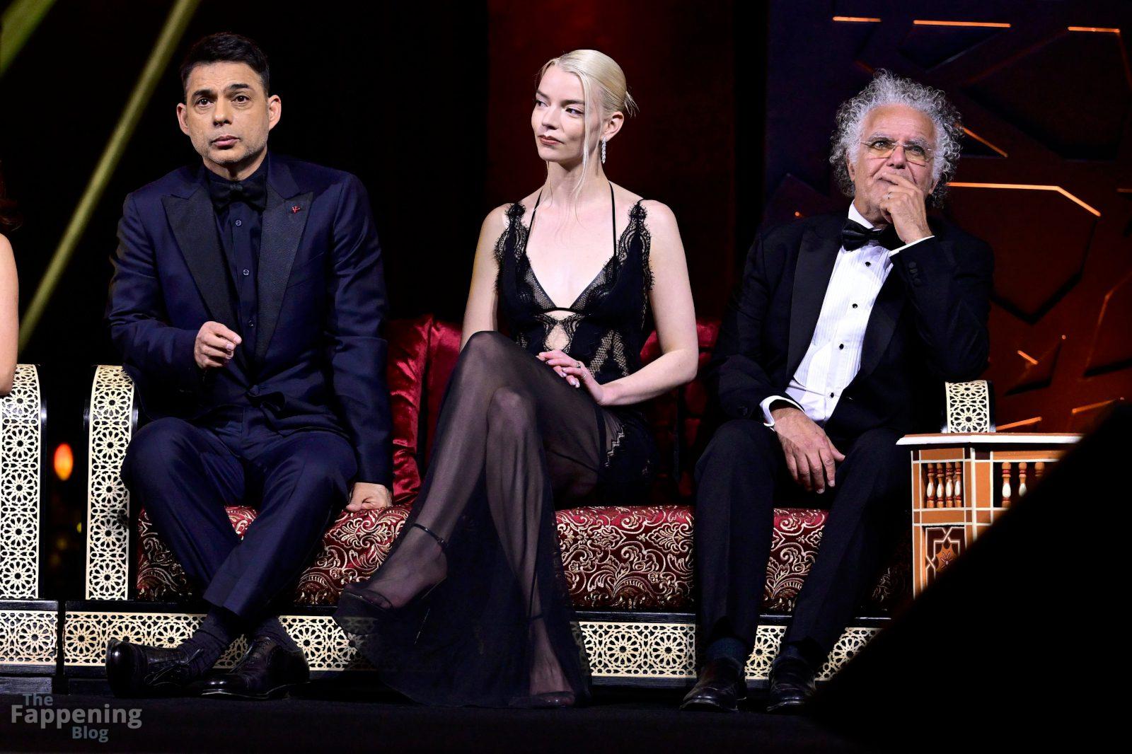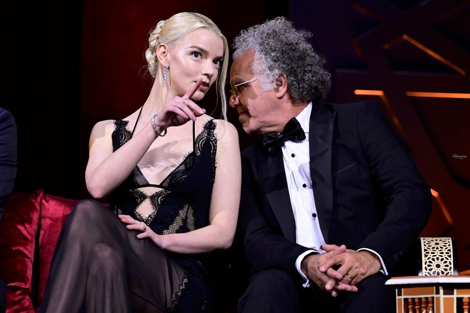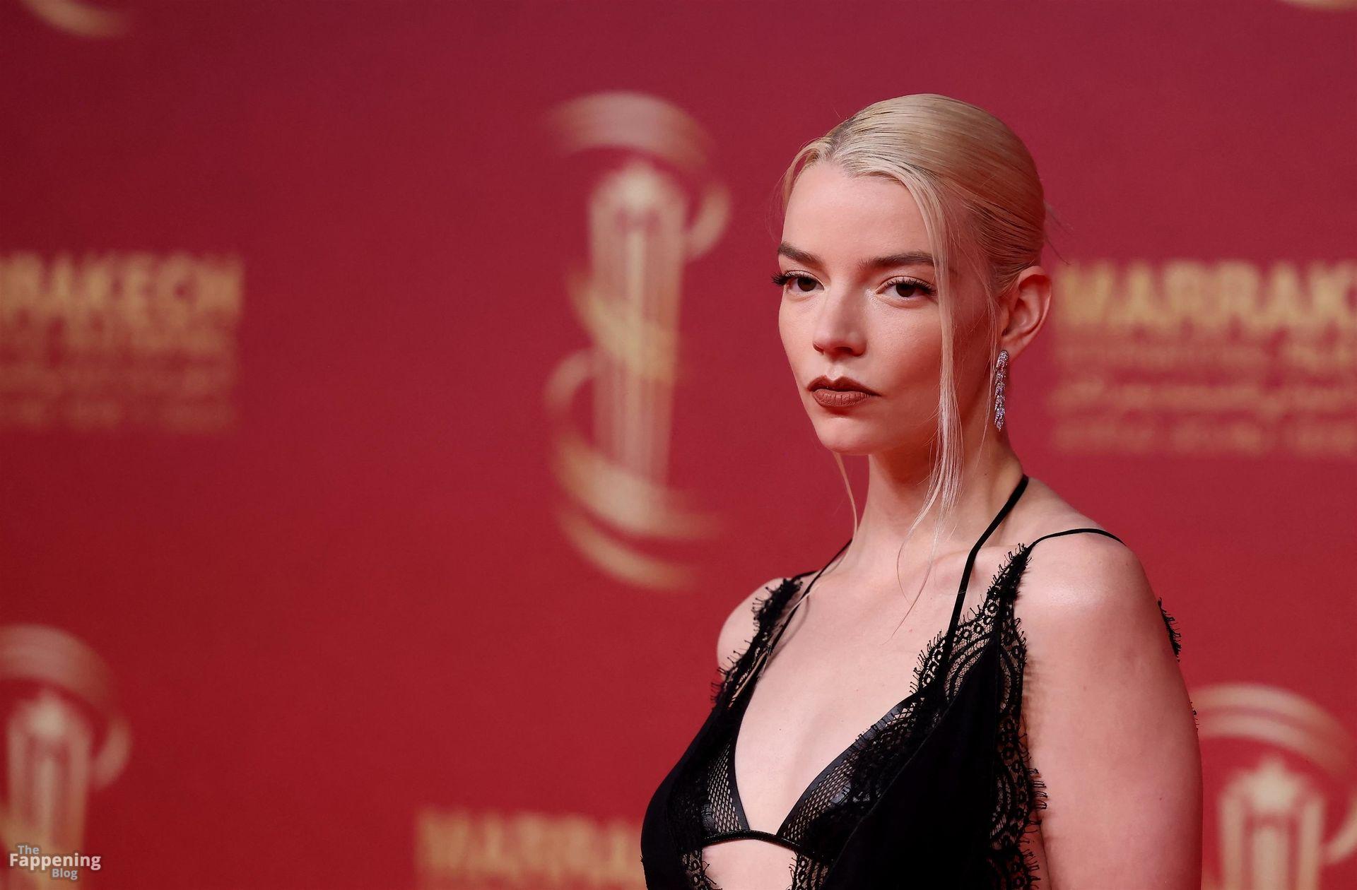 L’attrice statunitense Anya Taylor-Joy posa con un abito di pizzo trasparente che mostra le gambe sul tappeto rosso mentre arriva alla cerimonia di chiusura del 22º Festival del Cinema di Marrakech (FIFM) a Marrakech.