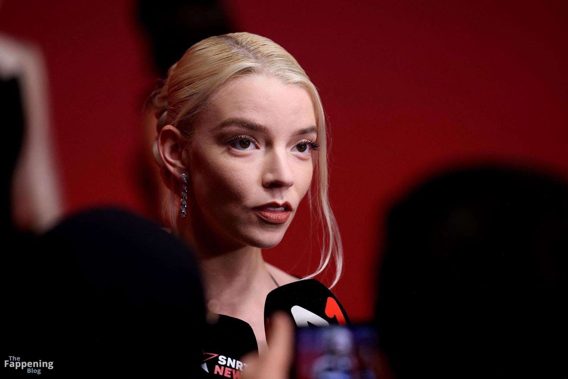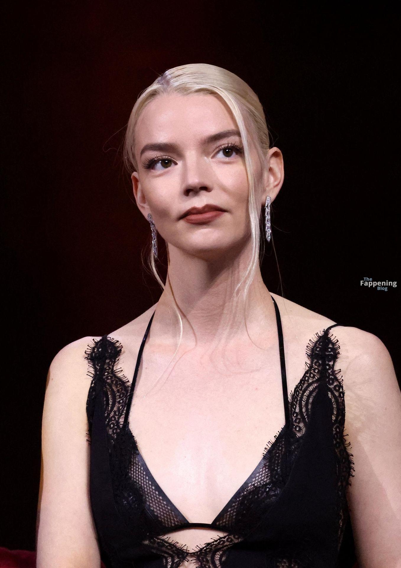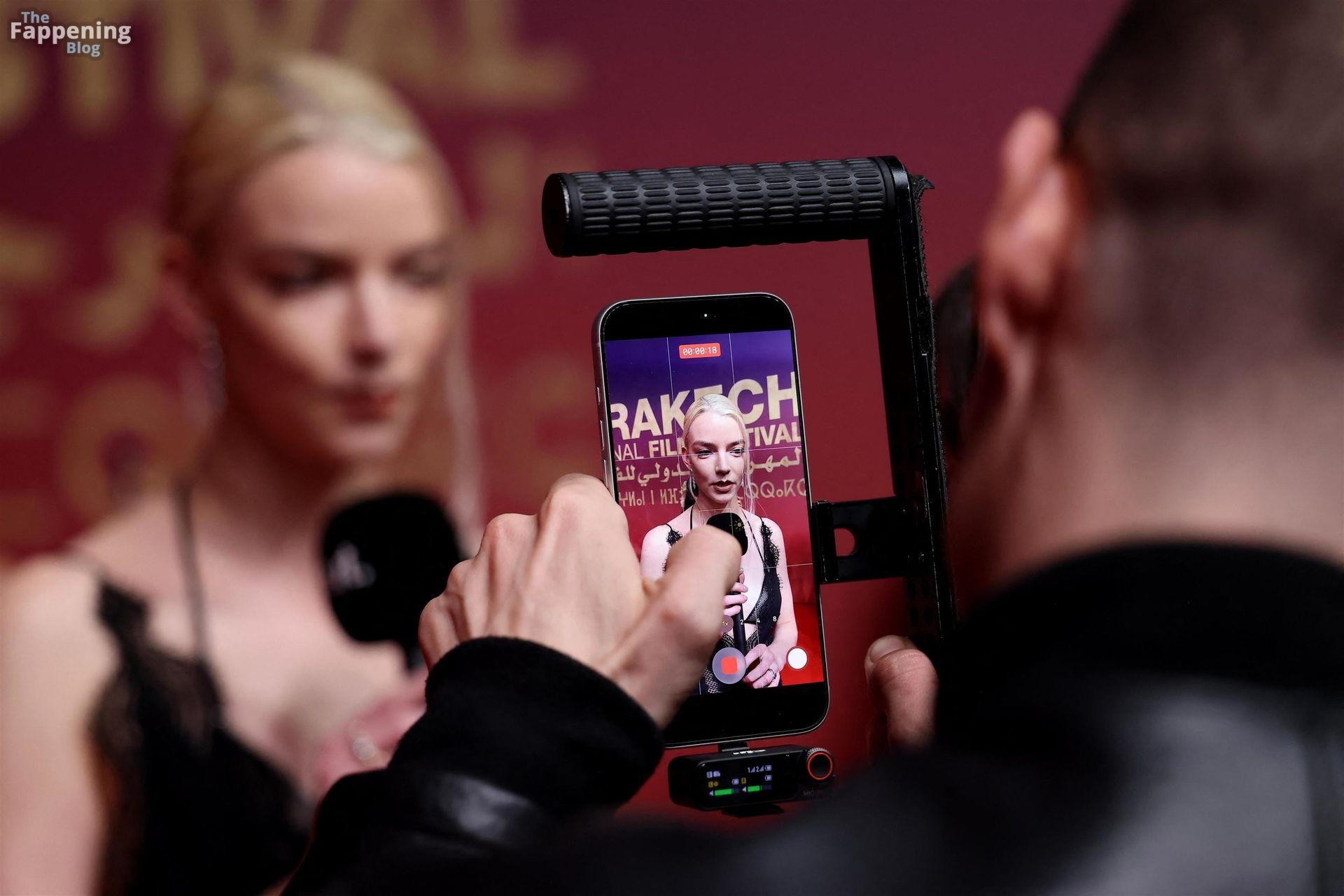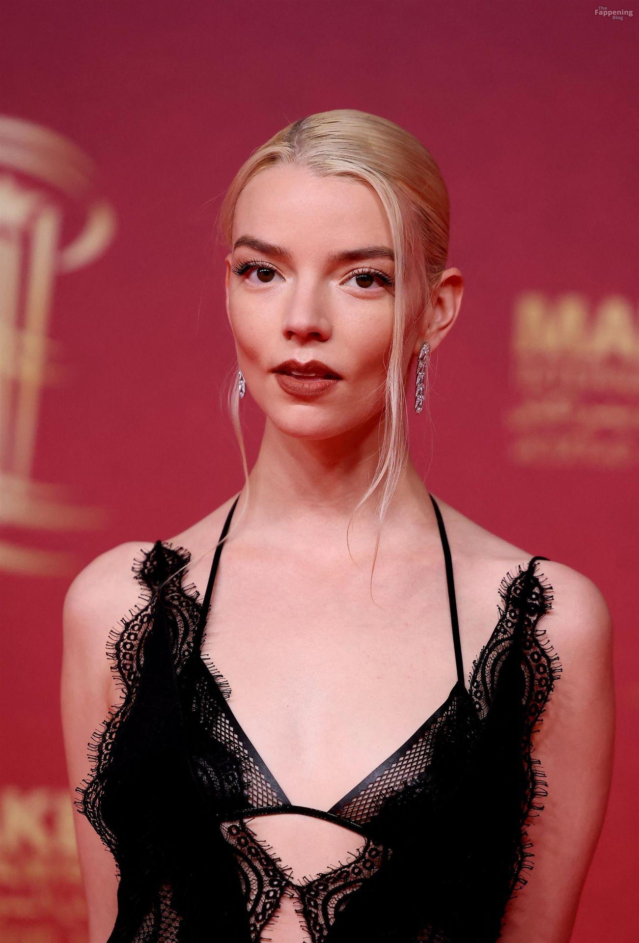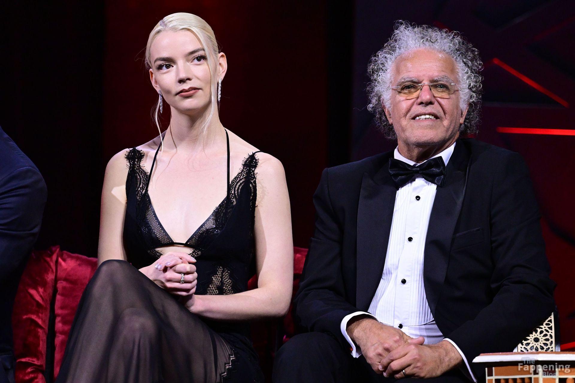 L’attrice statunitense Anya Taylor-Joy posa con un abito di pizzo trasparente che mostra le gambe sul tappeto rosso mentre arriva alla cerimonia di chiusura del 22º Festival del Cinema di Marrakech (FIFM) a Marrakech.