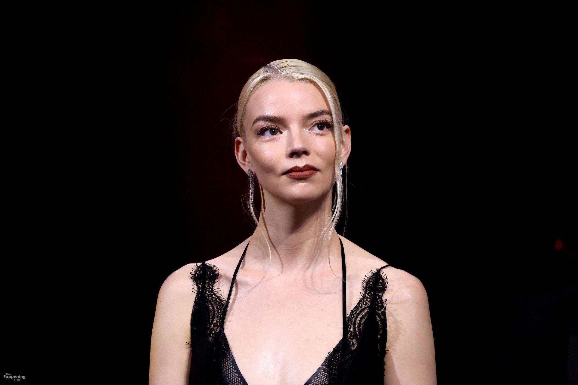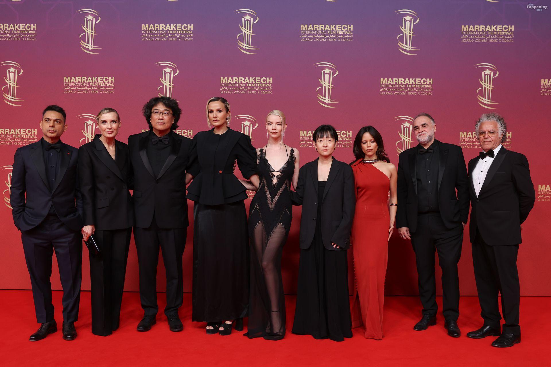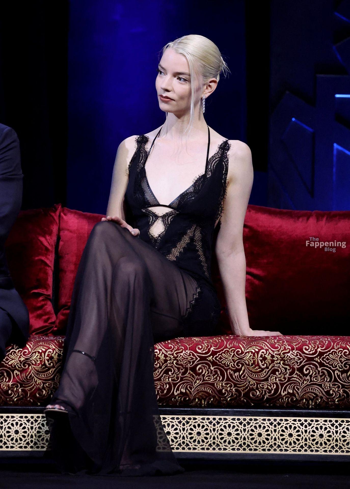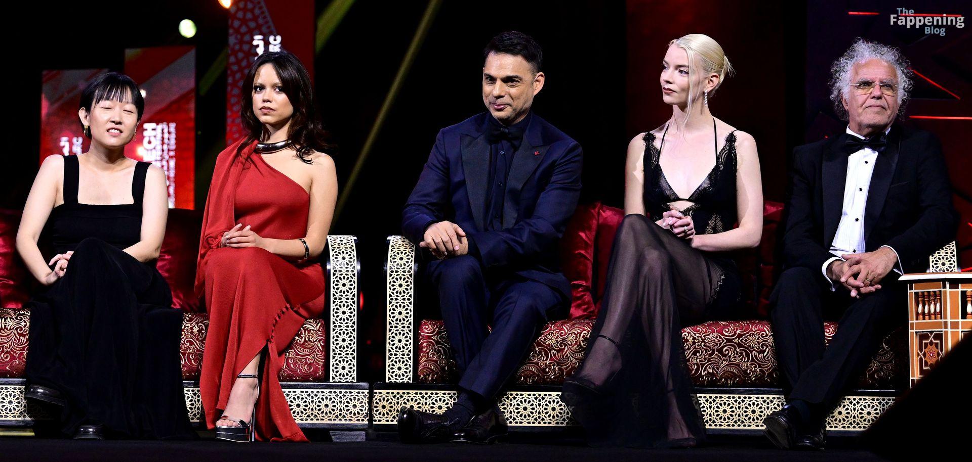 L’attrice statunitense Anya Taylor-Joy posa con un abito di pizzo trasparente che mostra le gambe sul tappeto rosso mentre arriva alla cerimonia di chiusura del 22º Festival del Cinema di Marrakech (FIFM) a Marrakech.
