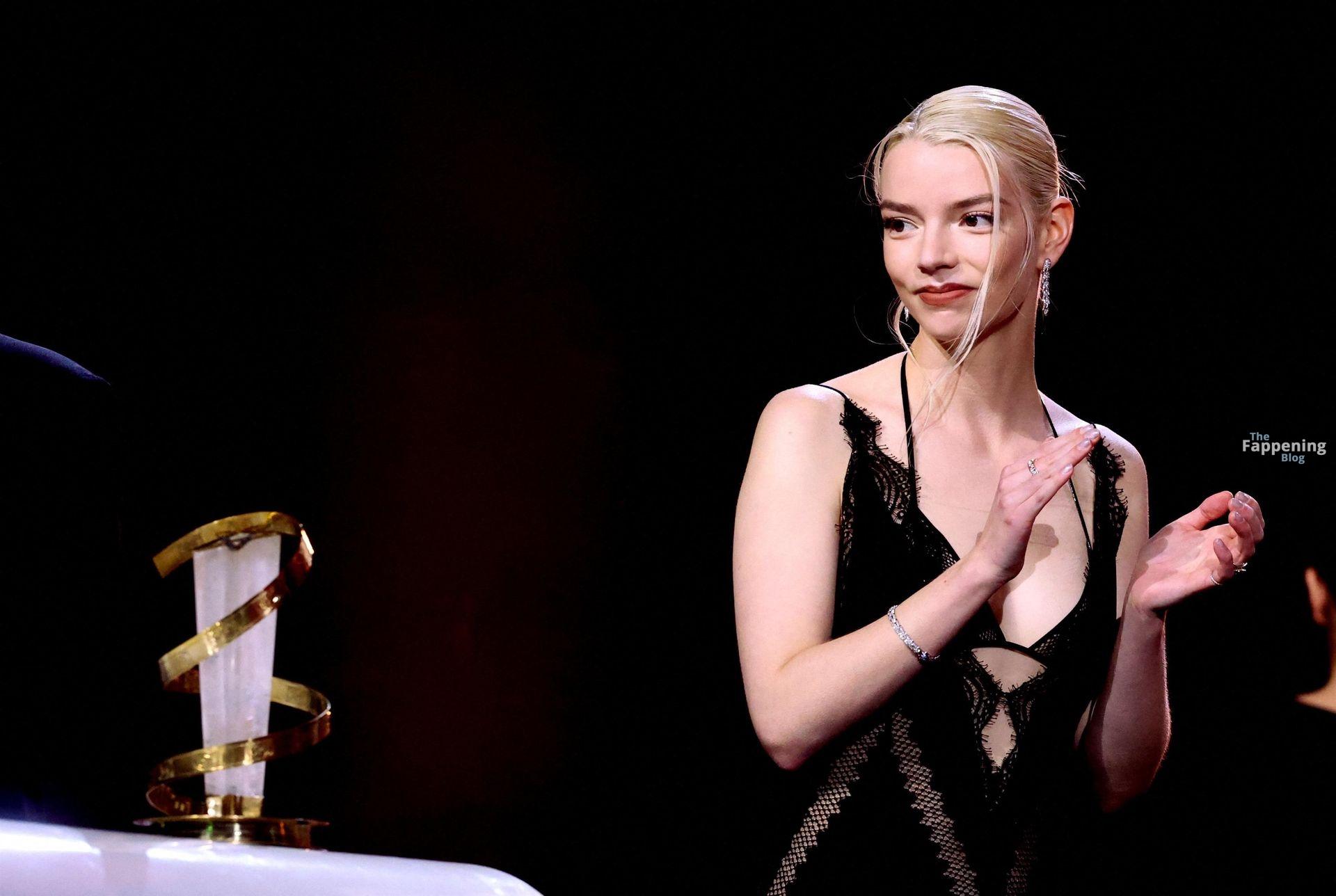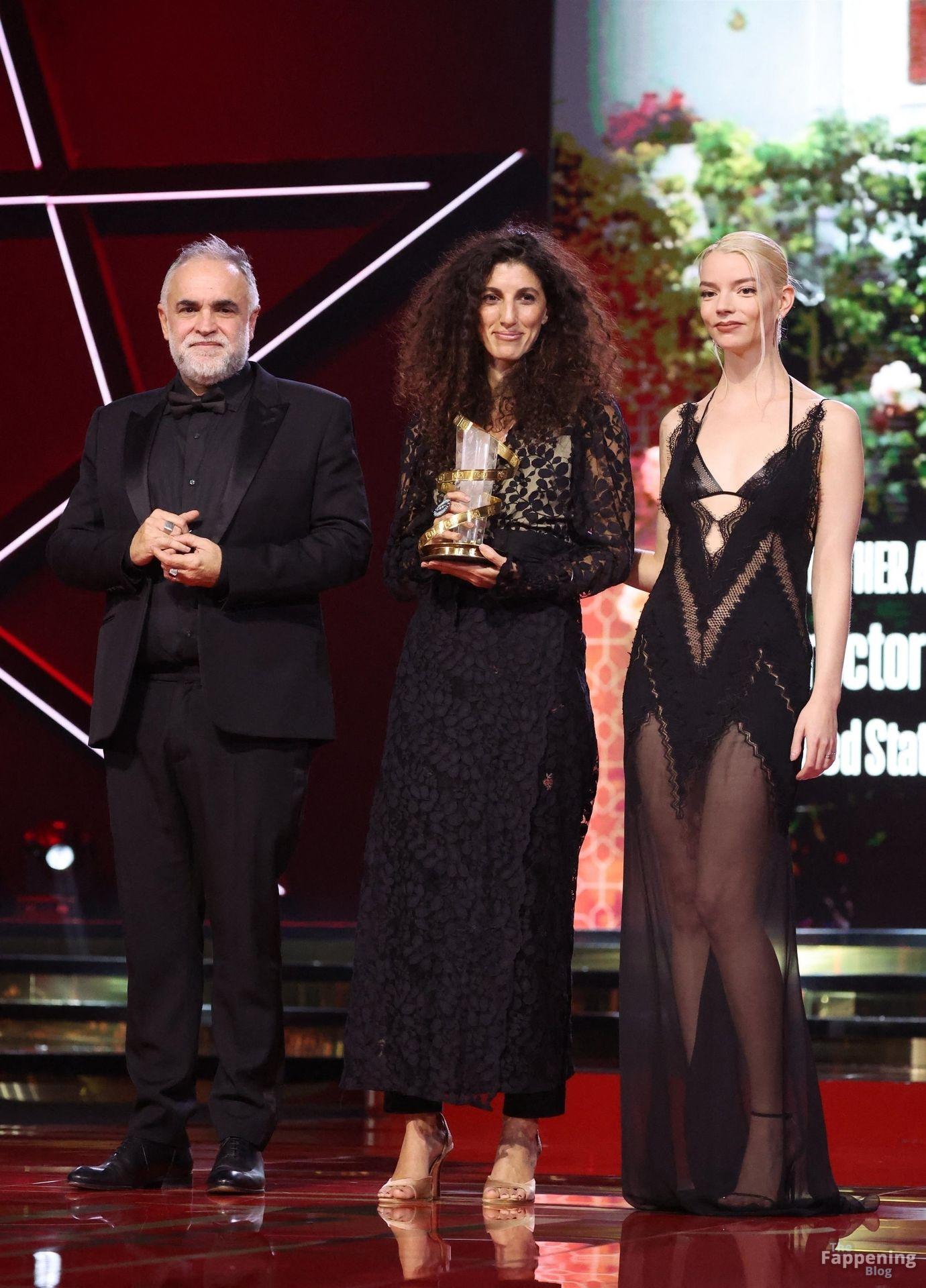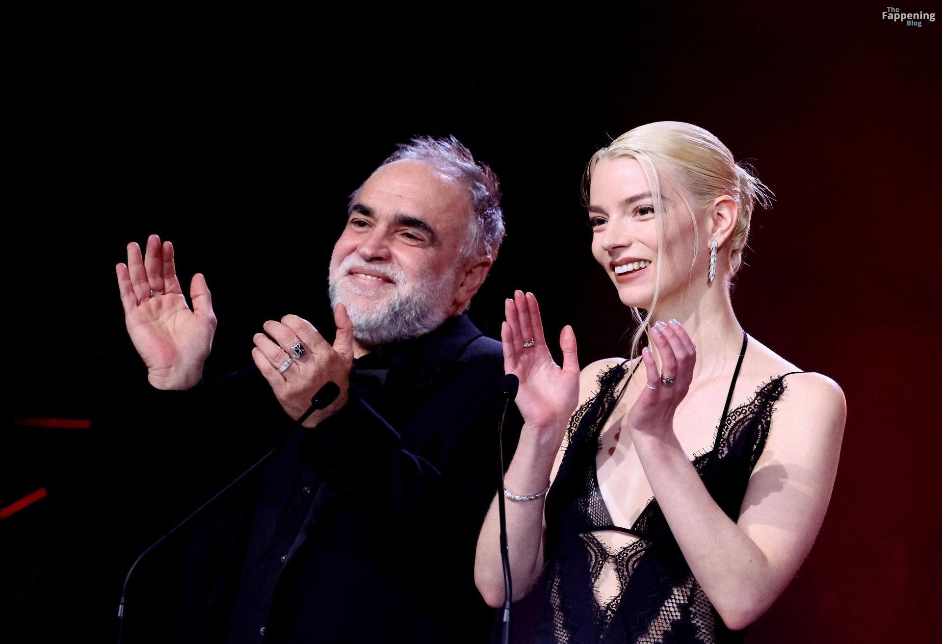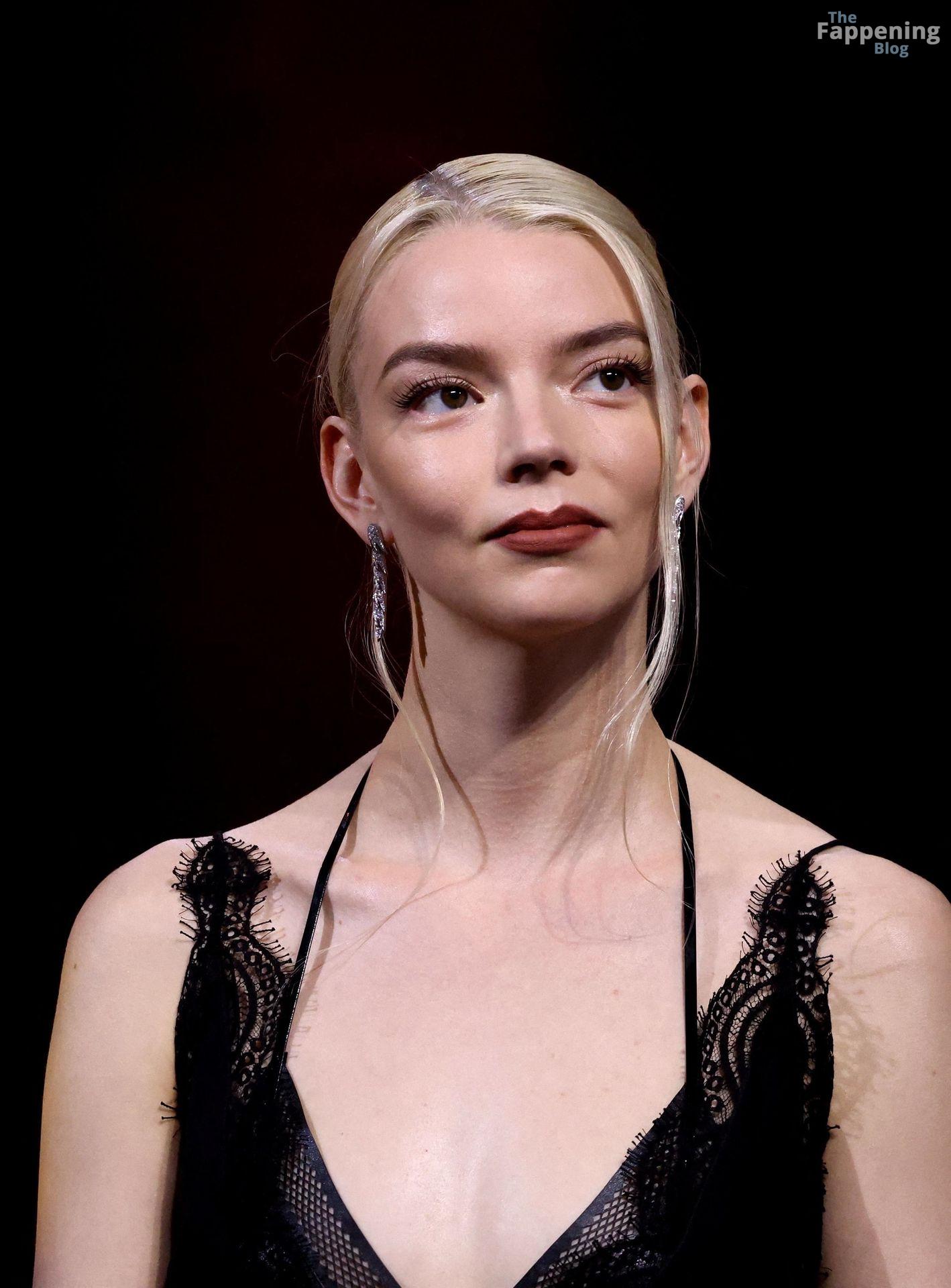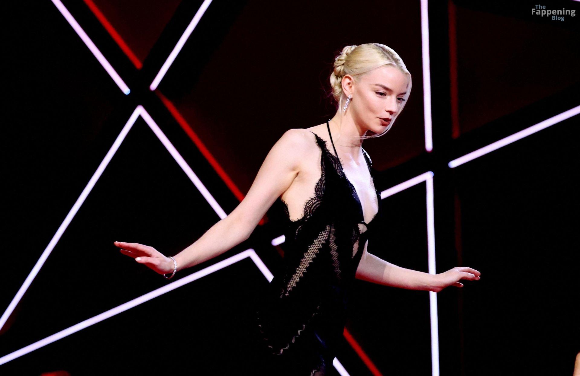 L’attrice statunitense Anya Taylor-Joy posa con un abito di pizzo trasparente che mostra le gambe sul tappeto rosso mentre arriva alla cerimonia di chiusura del 22º Festival del Cinema di Marrakech (FIFM) a Marrakech.