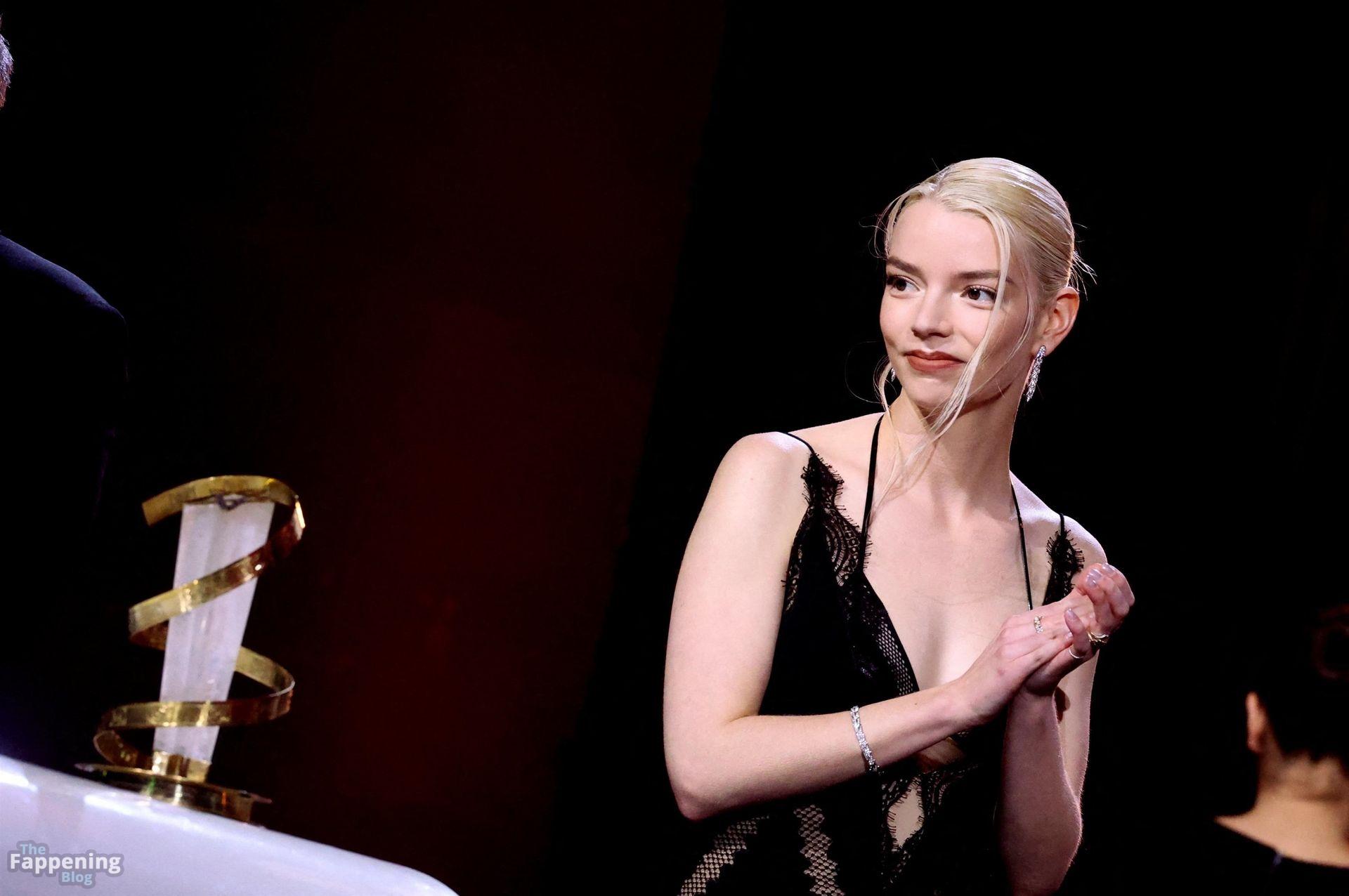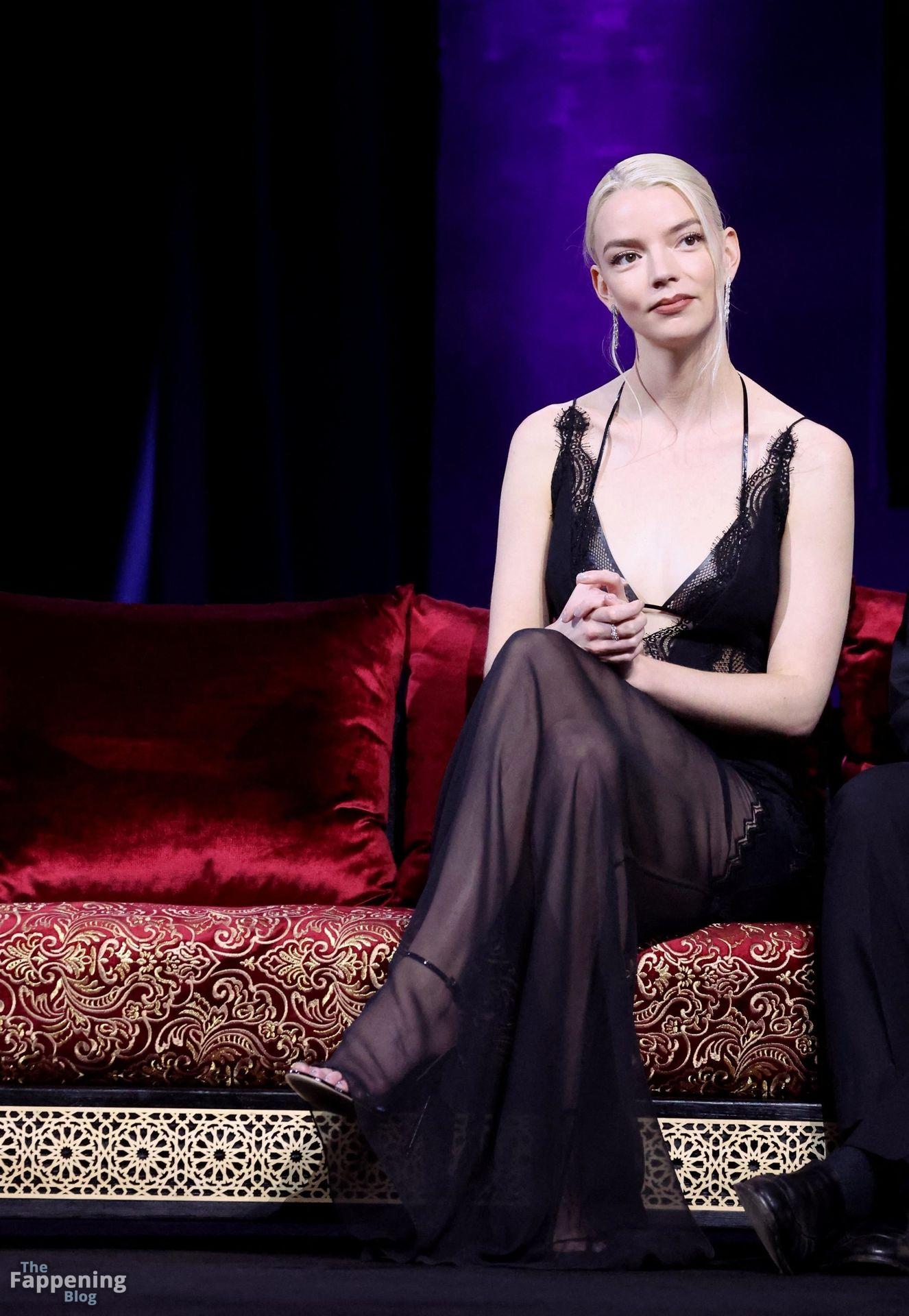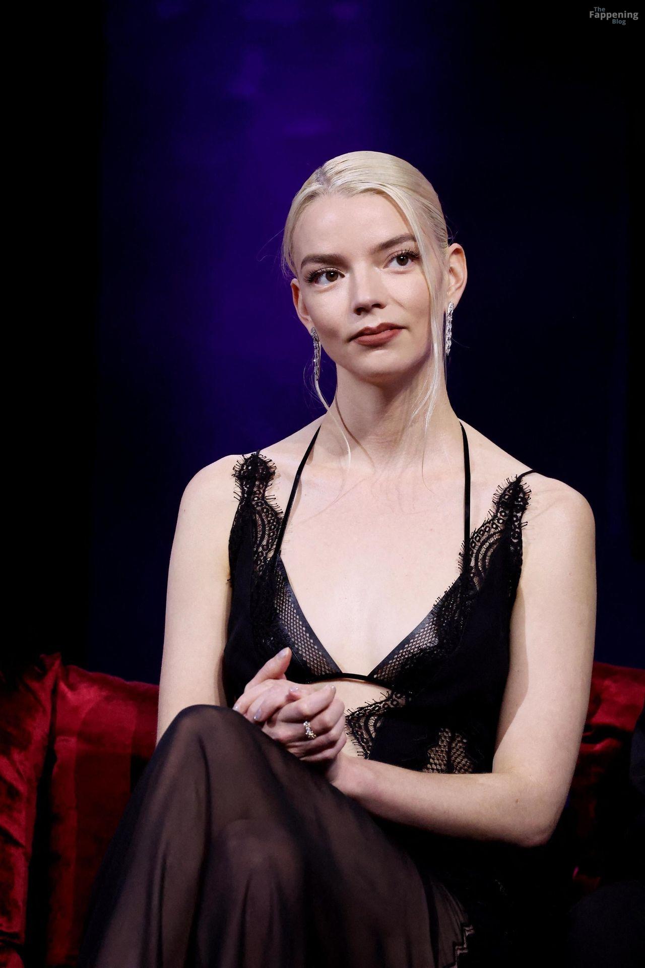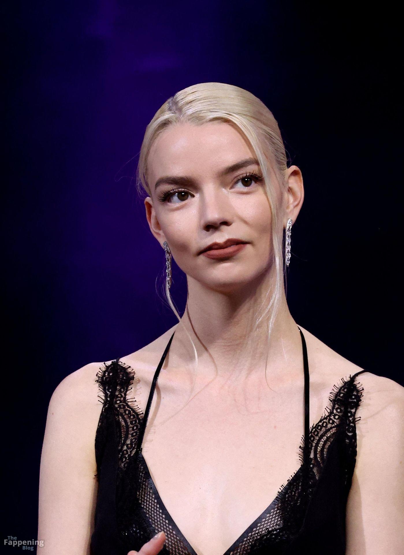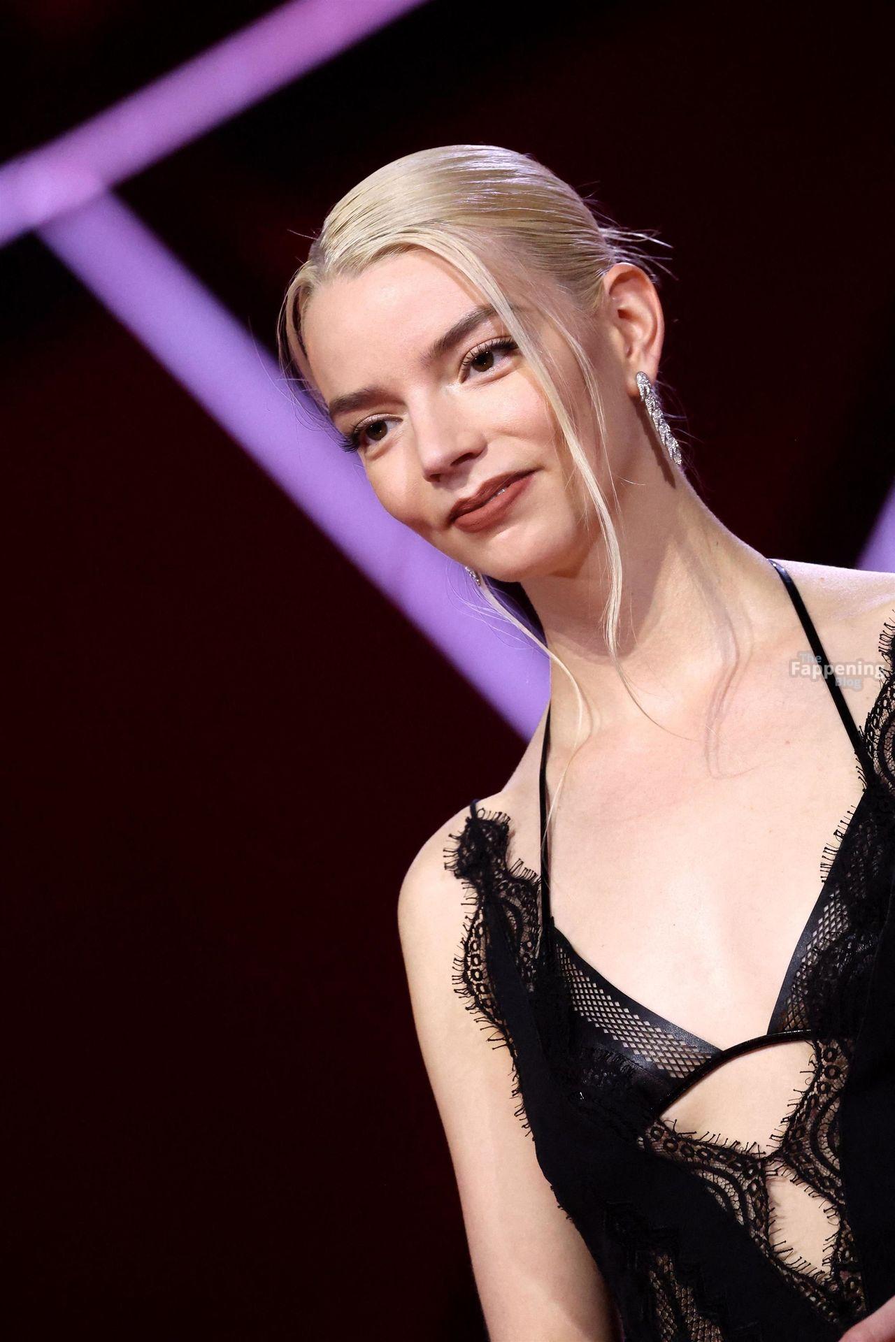 L’attrice statunitense Anya Taylor-Joy posa con un abito di pizzo trasparente che mostra le gambe sul tappeto rosso mentre arriva alla cerimonia di chiusura del 22º Festival del Cinema di Marrakech (FIFM) a Marrakech.