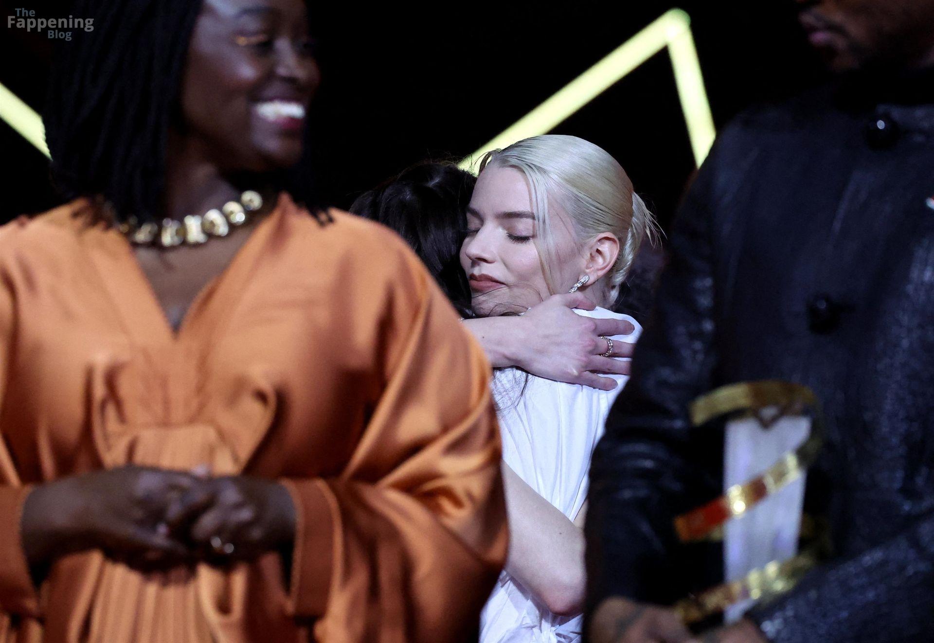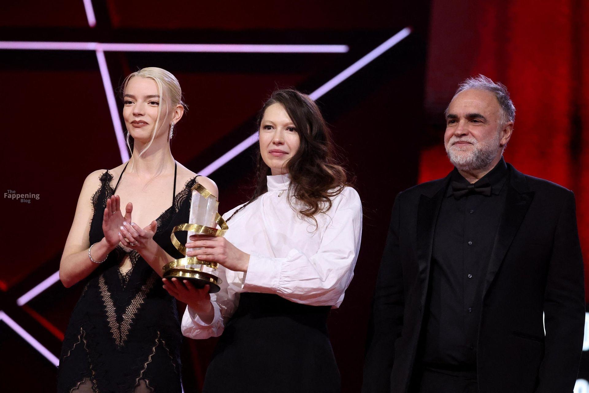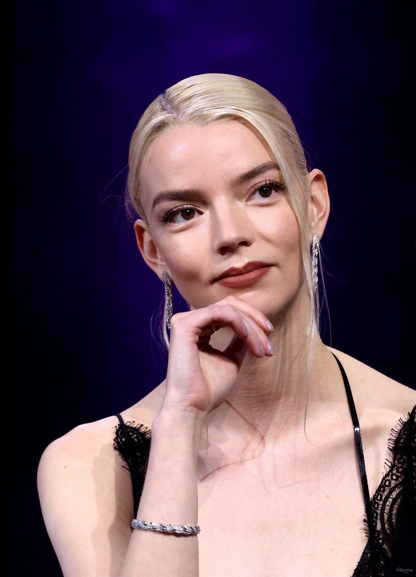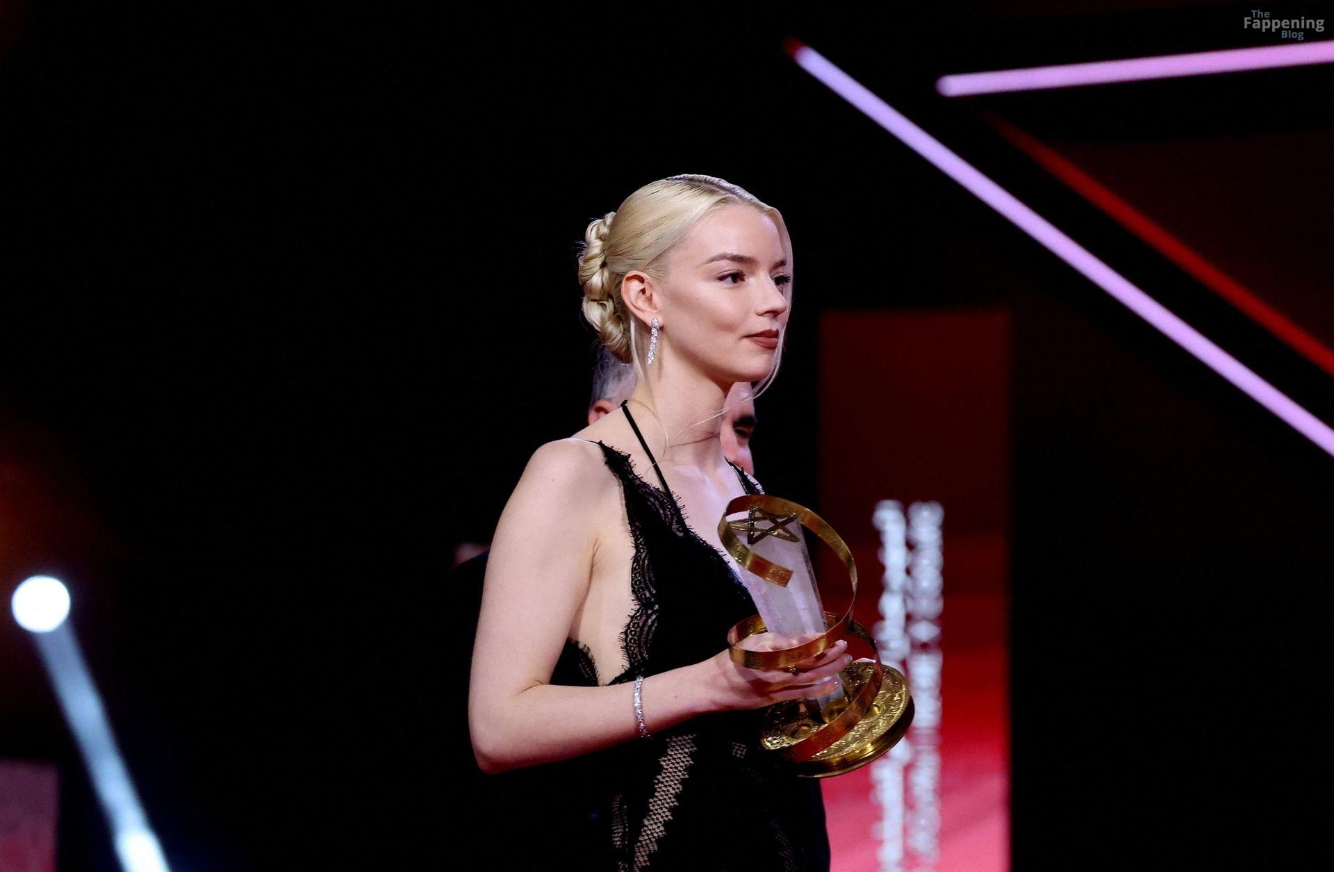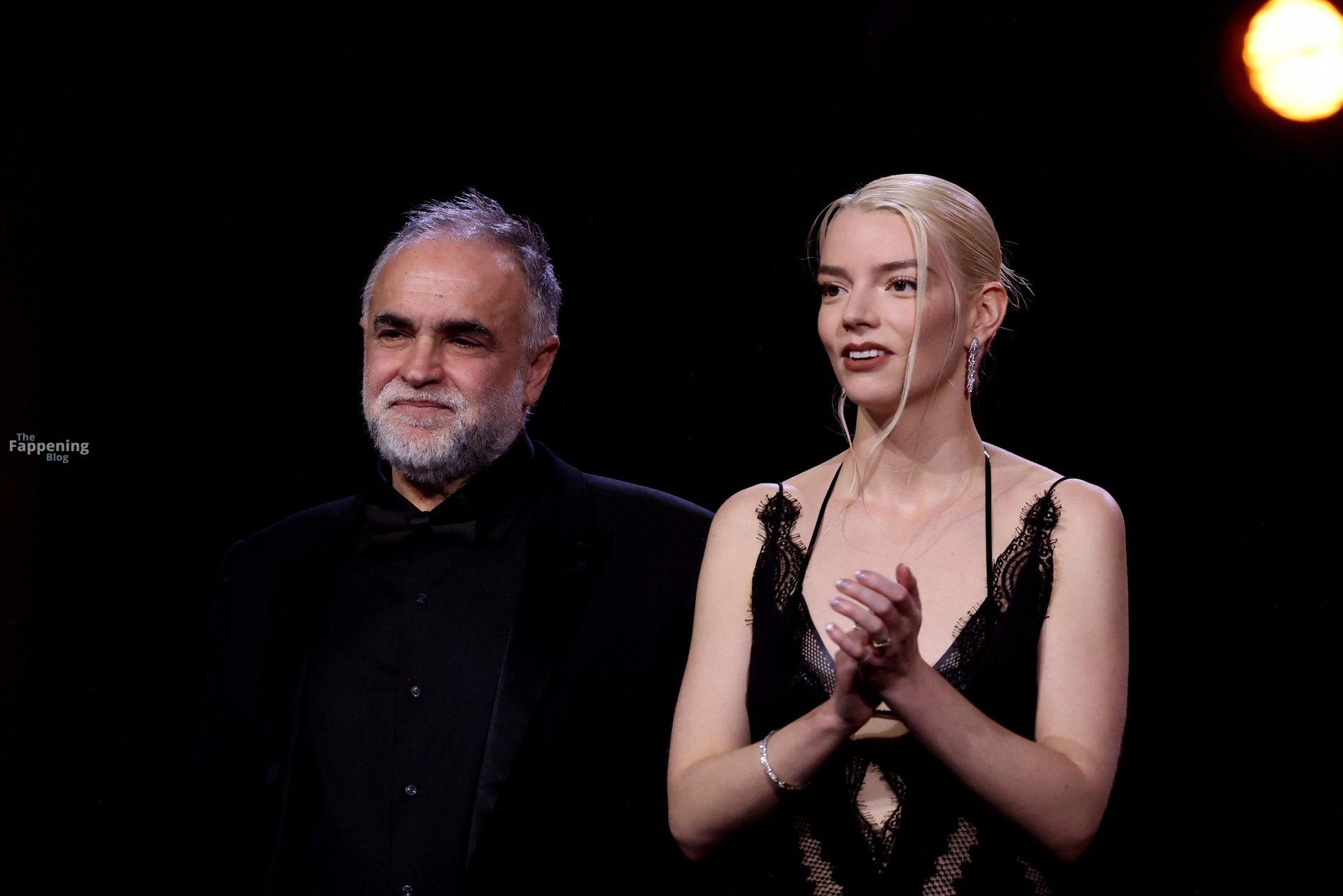L’attrice statunitense Anya Taylor-Joy posa con un abito di pizzo trasparente che mostra le gambe sul tappeto rosso mentre arriva alla cerimonia di chiusura del 22º Festival del Cinema di Marrakech (FIFM) a Marrakech.