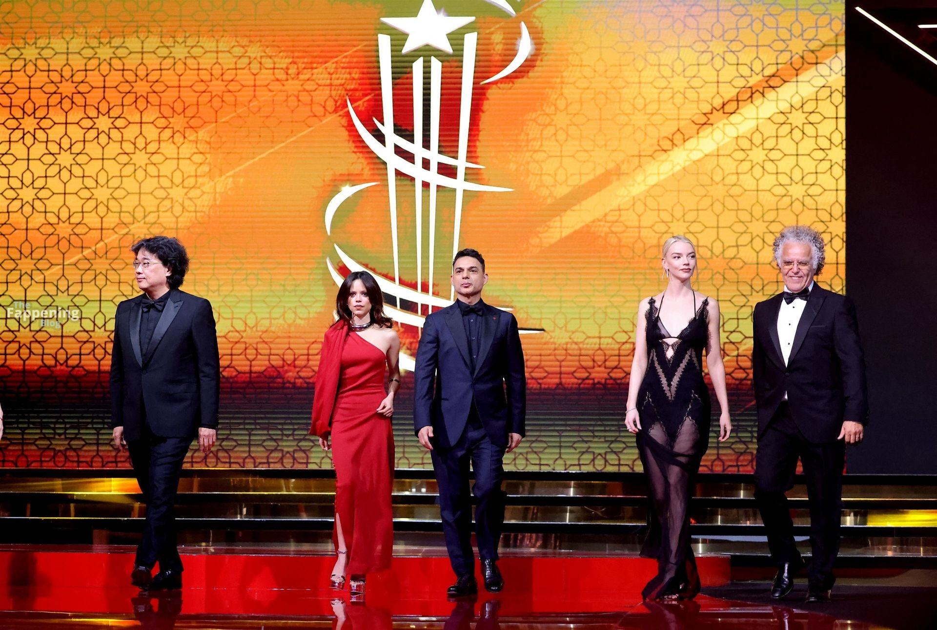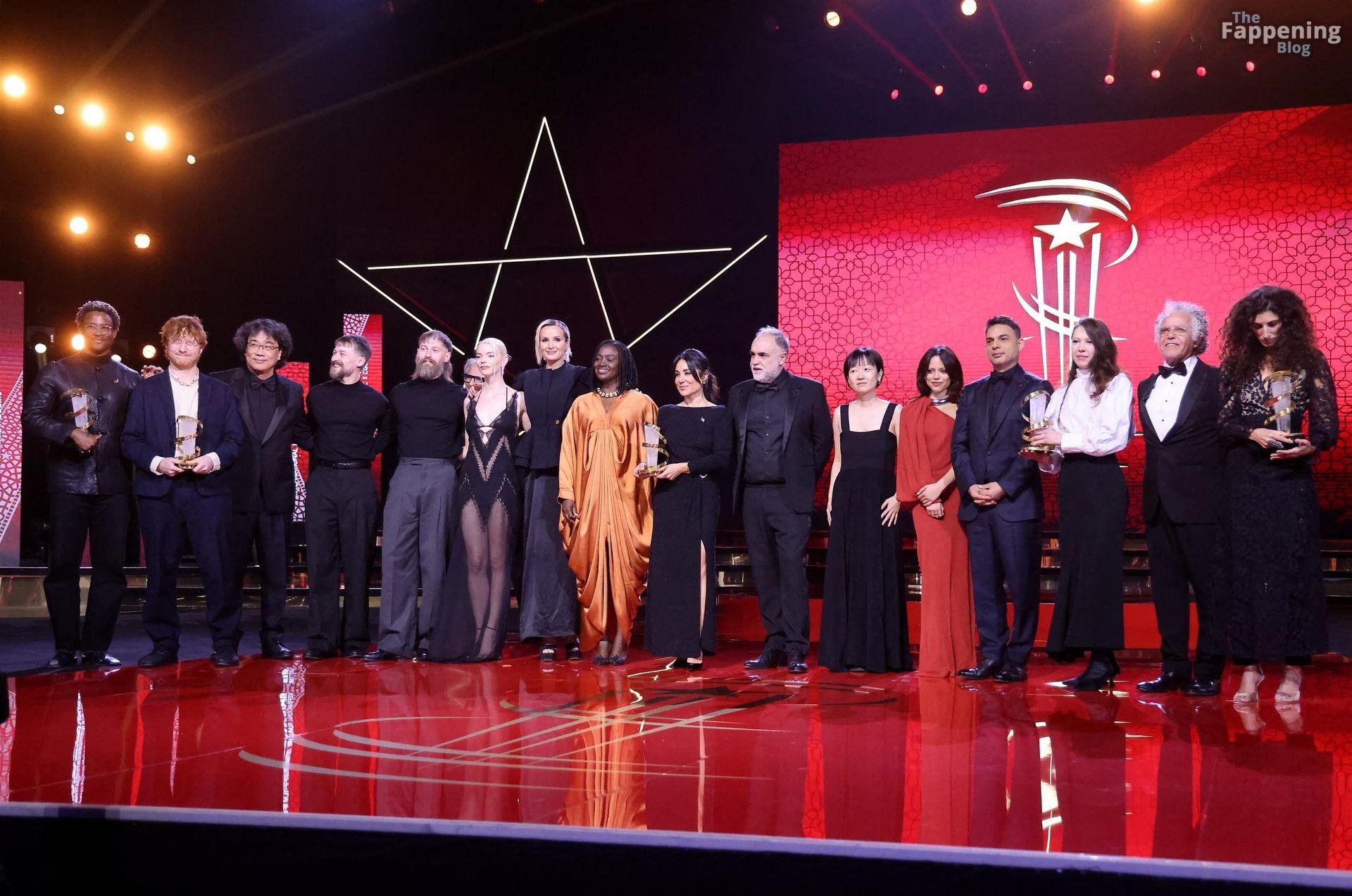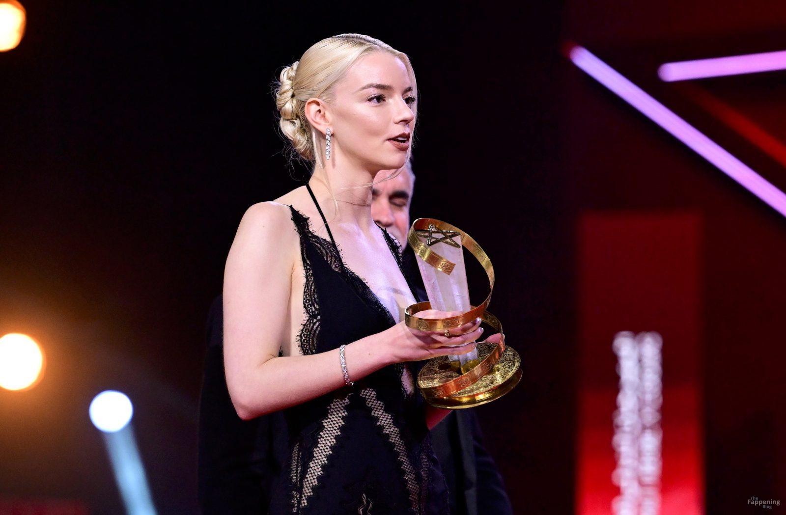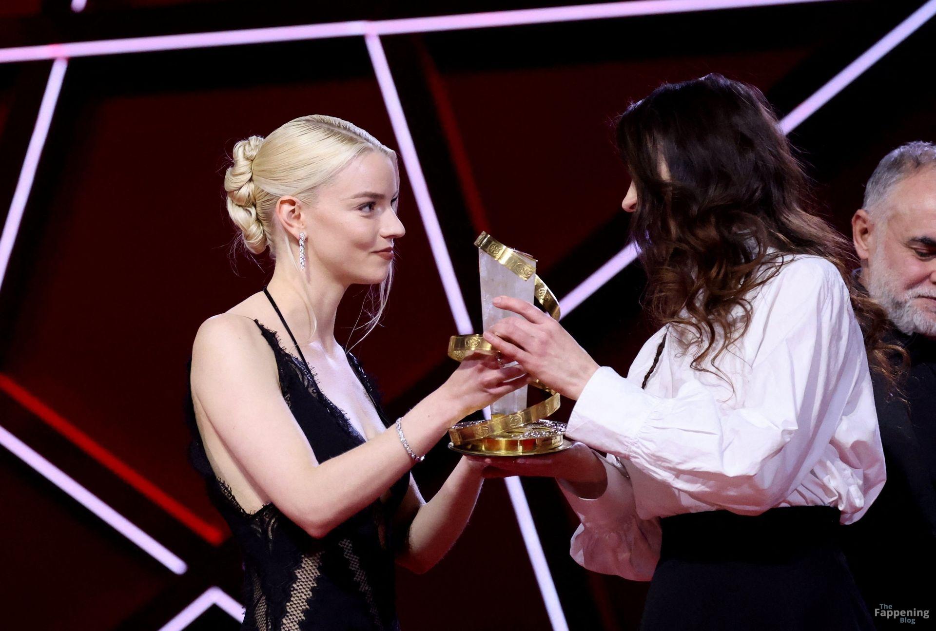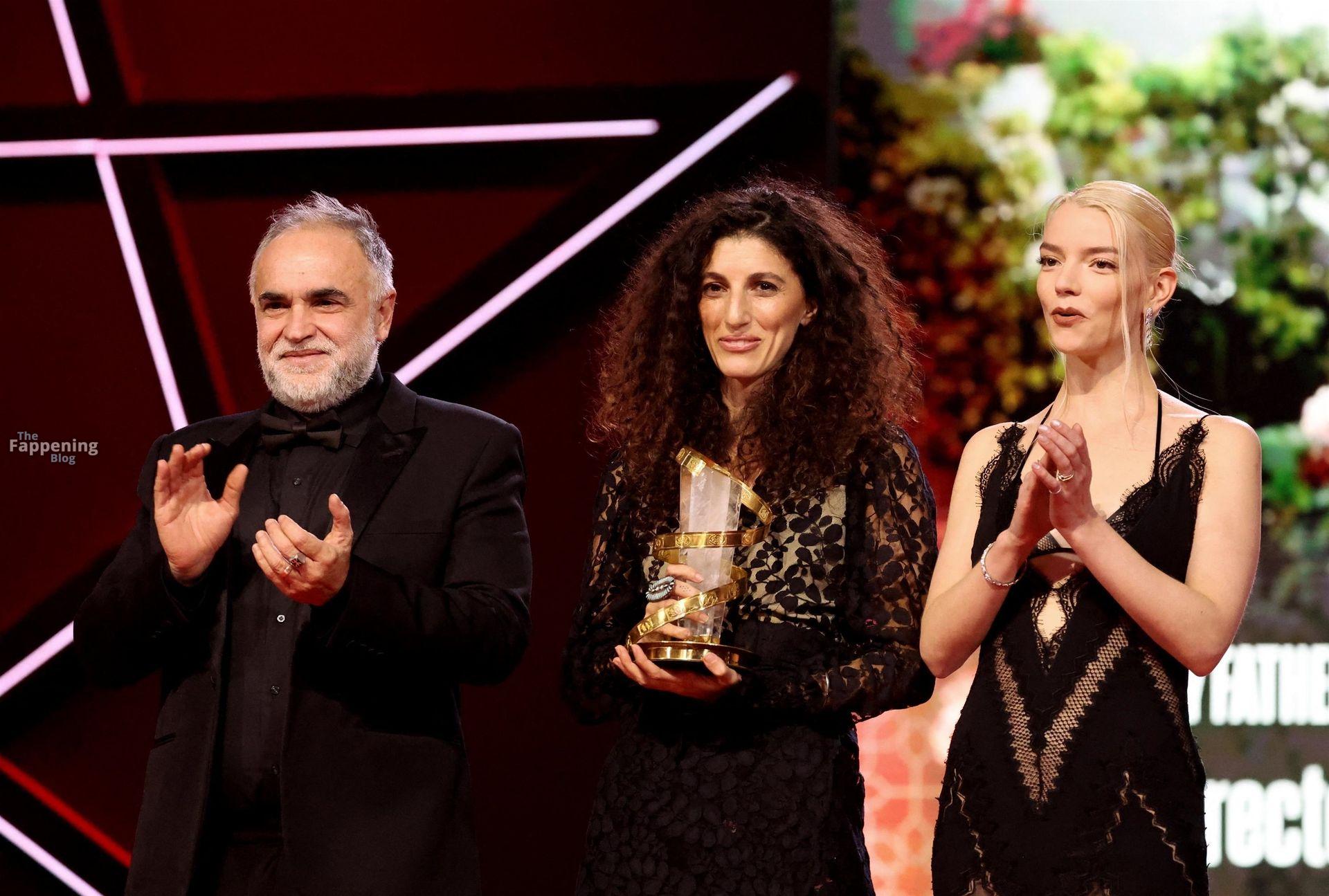 L’attrice statunitense Anya Taylor-Joy posa con un abito di pizzo trasparente che mostra le gambe sul tappeto rosso mentre arriva alla cerimonia di chiusura del 22º Festival del Cinema di Marrakech (FIFM) a Marrakech.