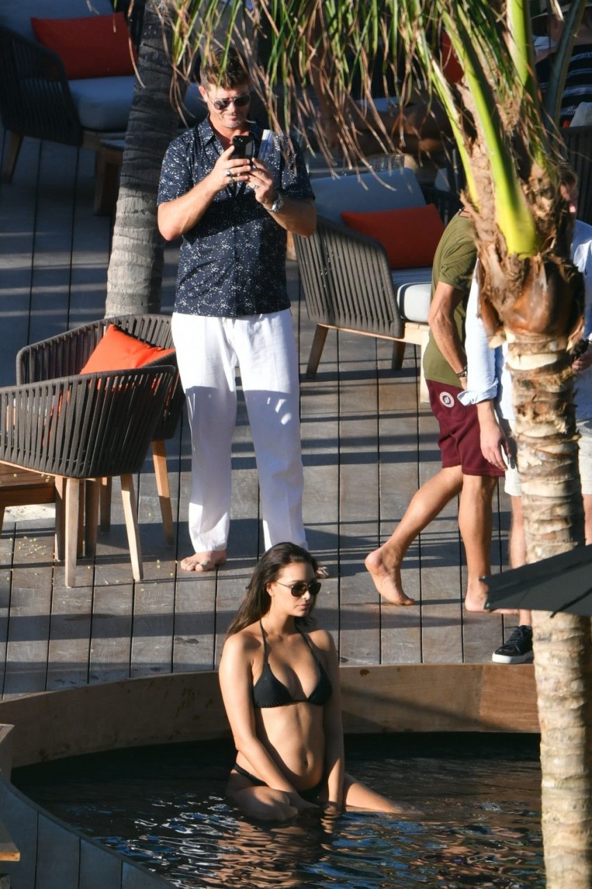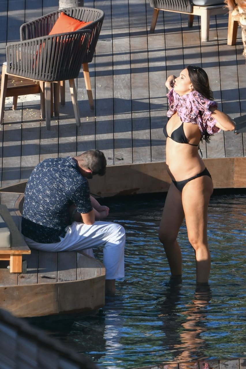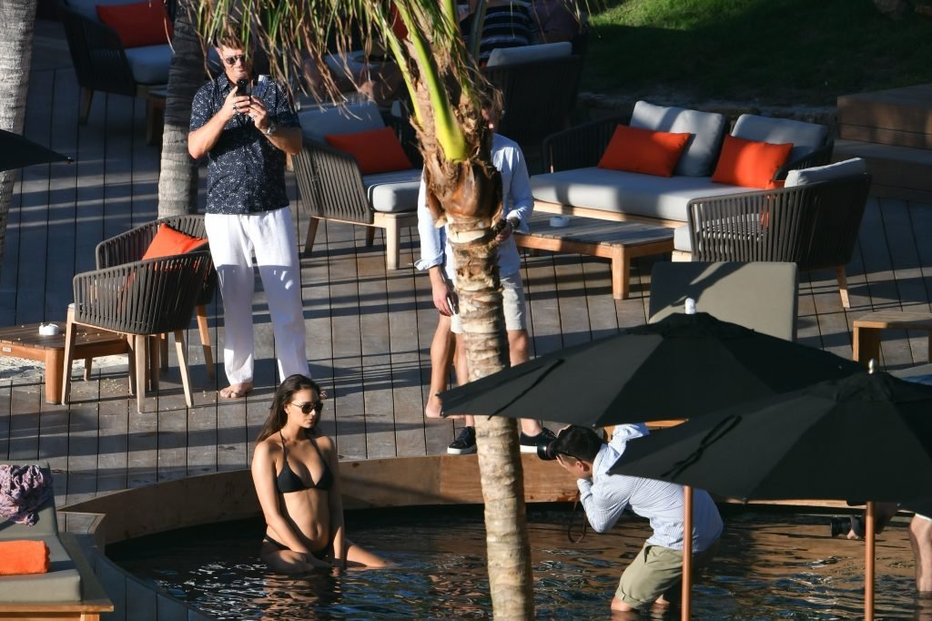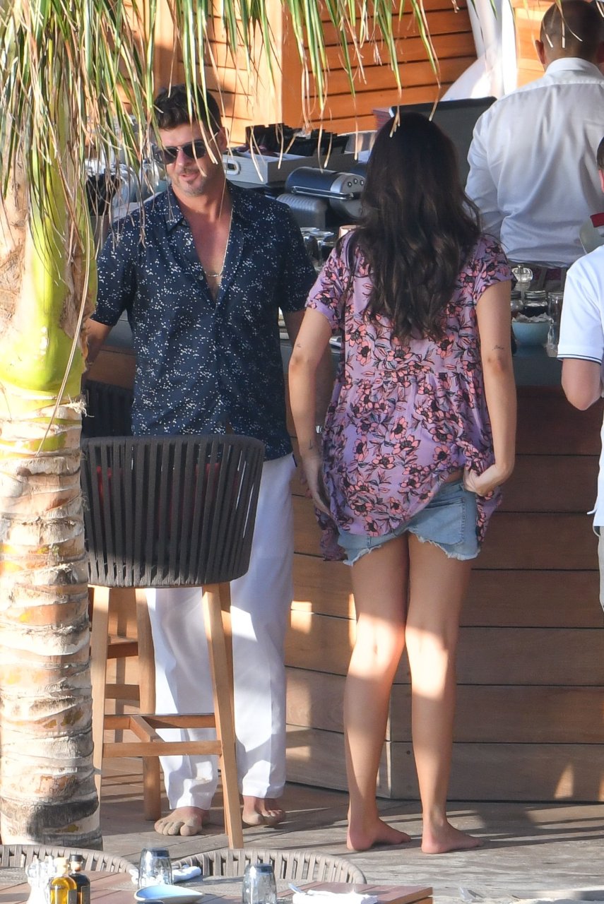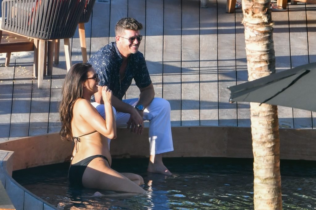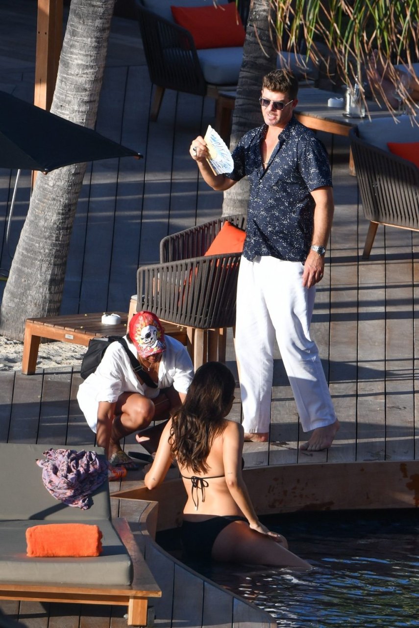 Robin Thicke posa con la sua partner incinta April Love Geary (23) per un servizio fotografico tropicale a St. Barts, 26/10/2018. Thicke è stato visto coccolare April in una piscina gonfiabile.