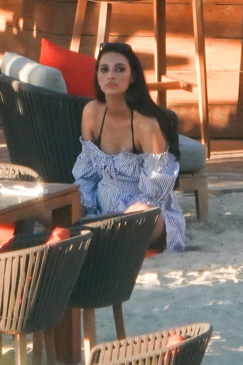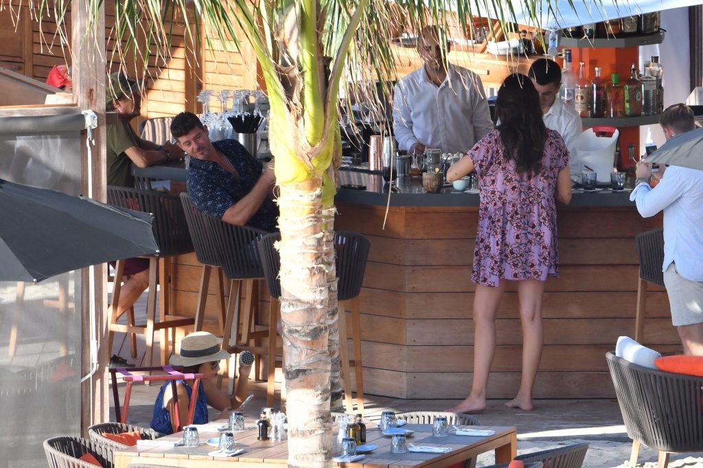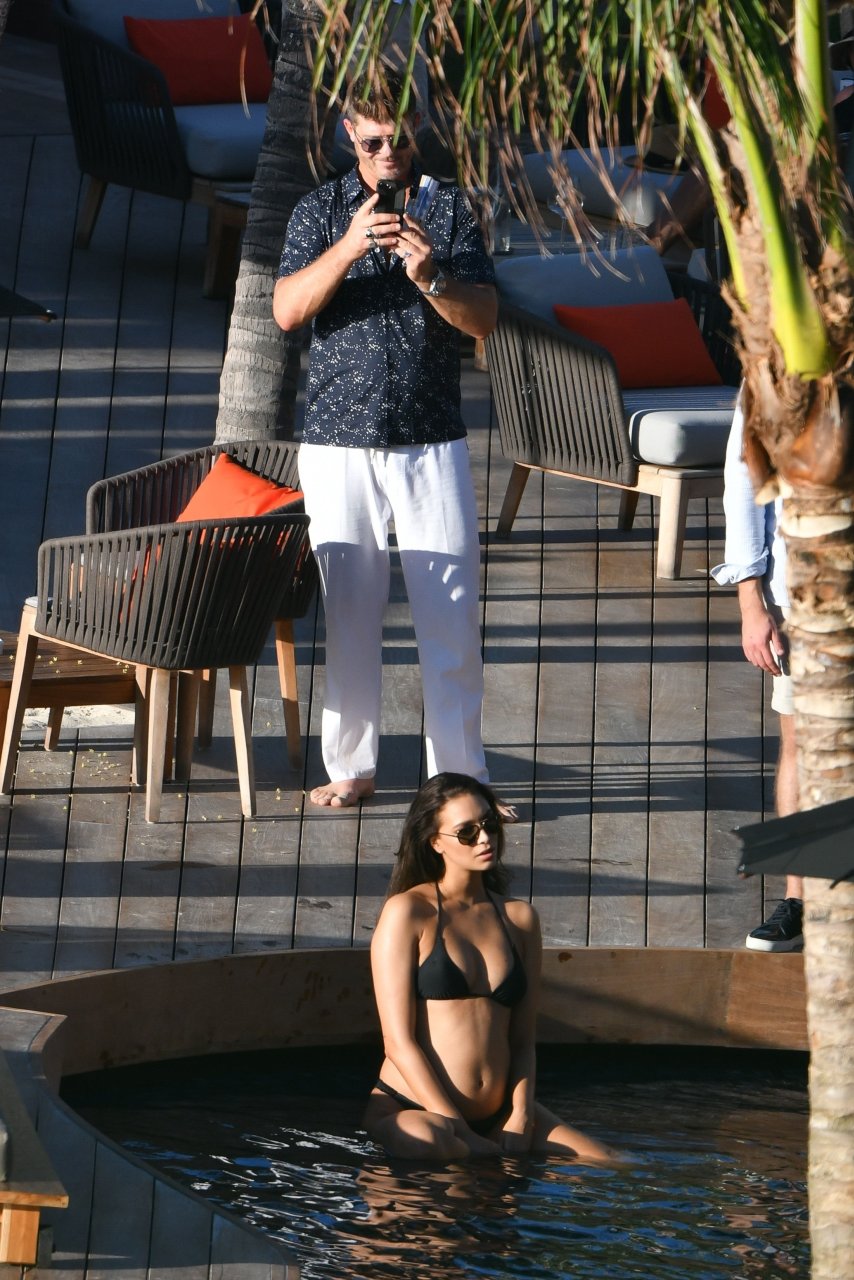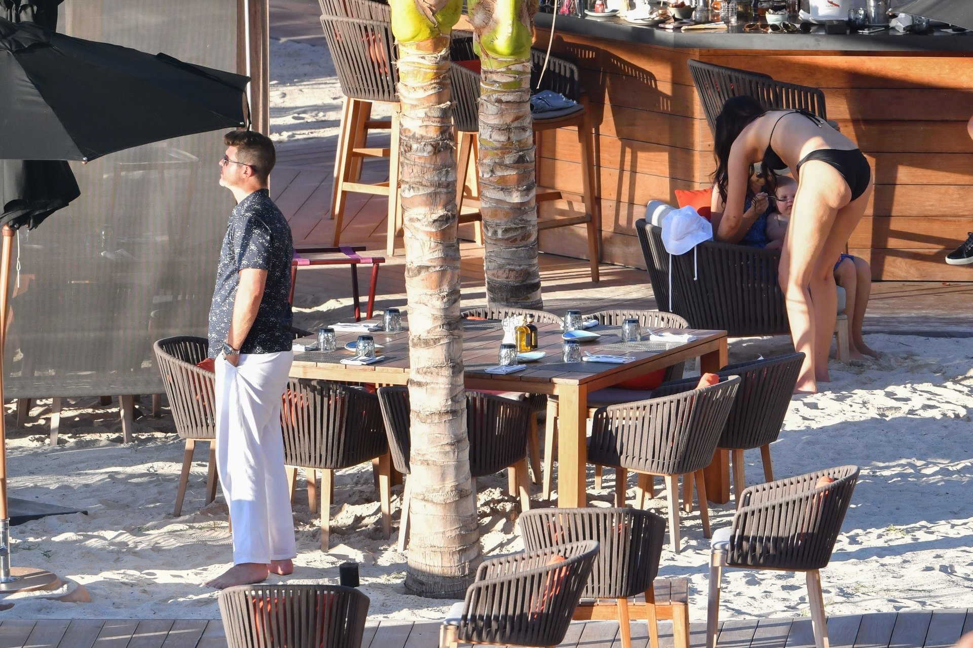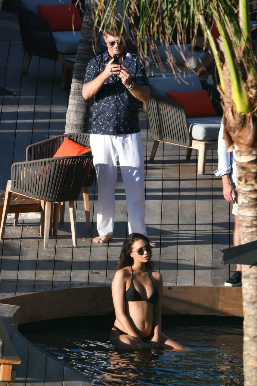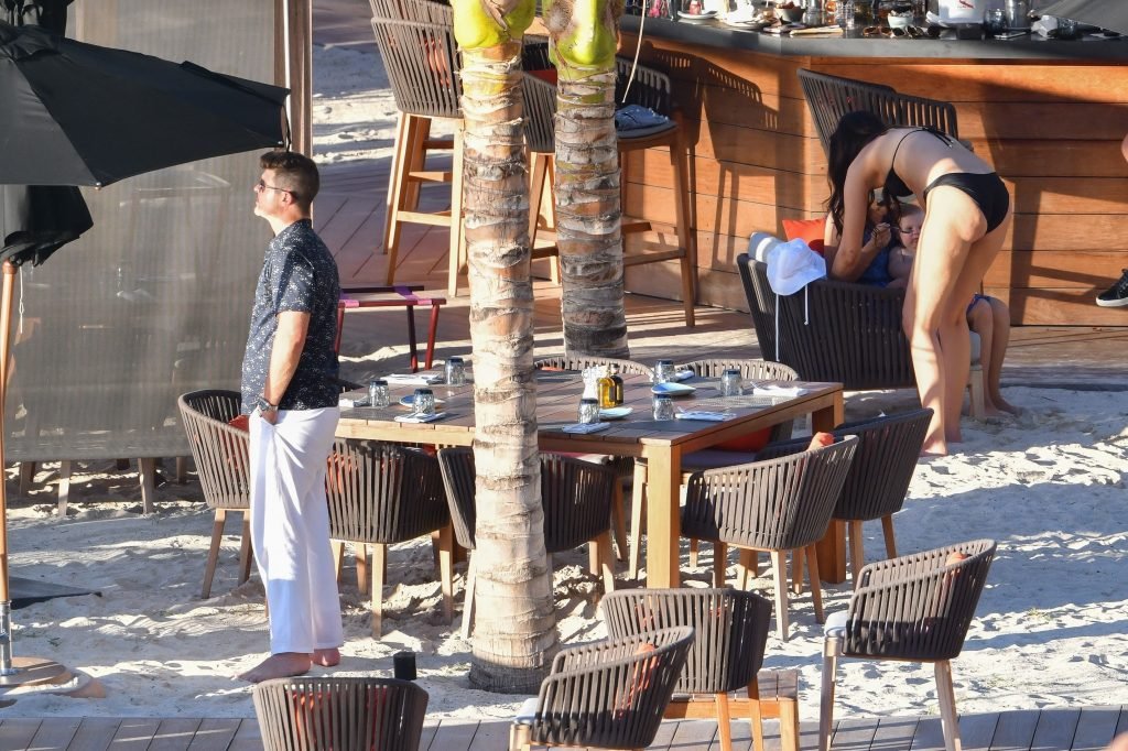 Robin Thicke posa con la sua partner incinta April Love Geary (23) per un servizio fotografico tropicale a St. Barts, 26/10/2018. Thicke è stato visto coccolare April in una piscina gonfiabile.