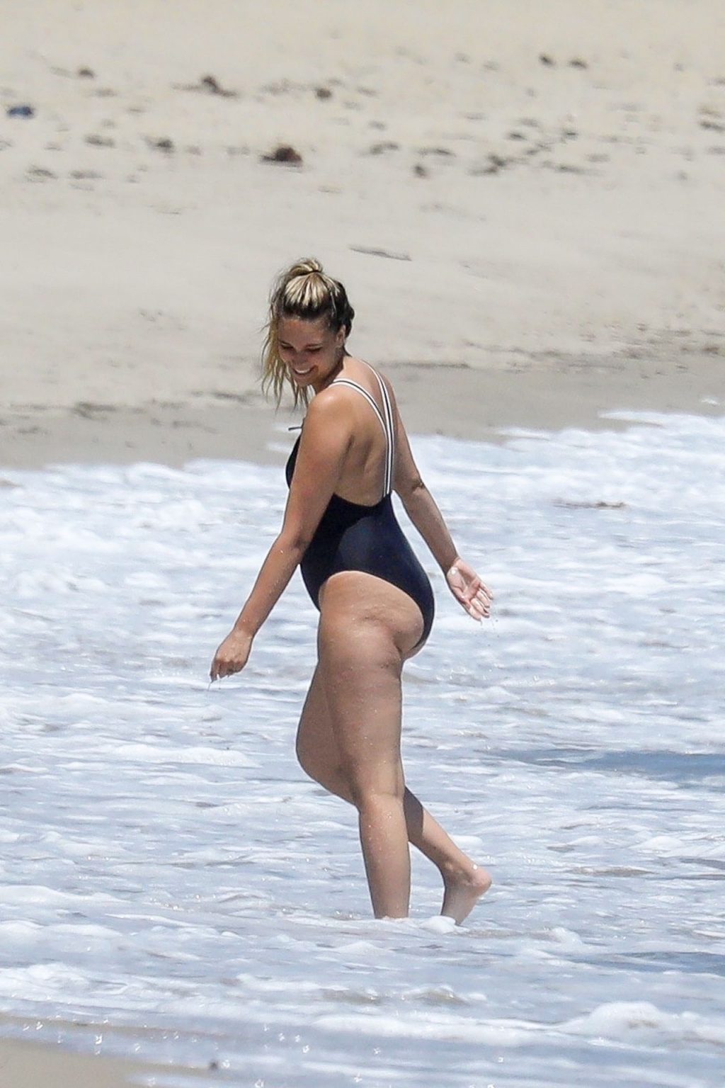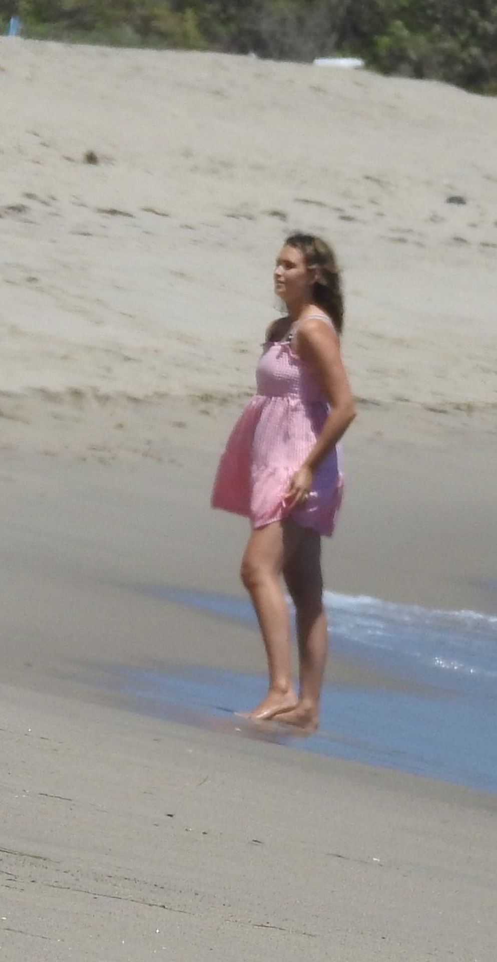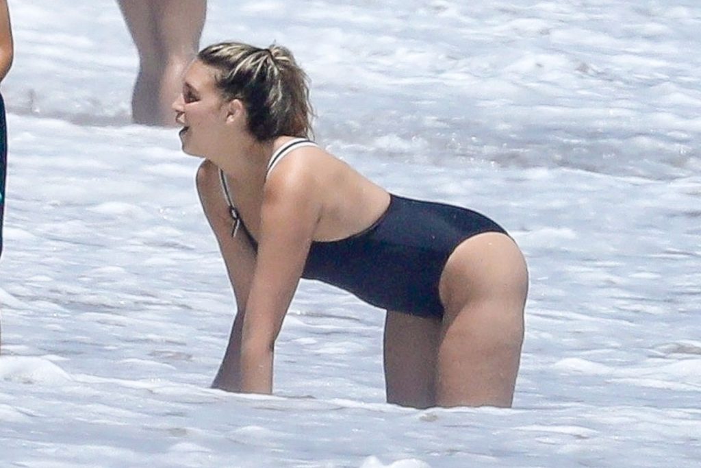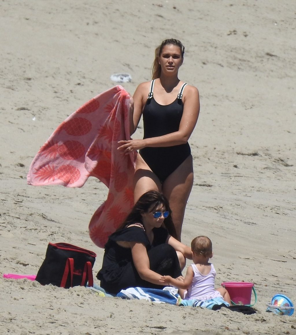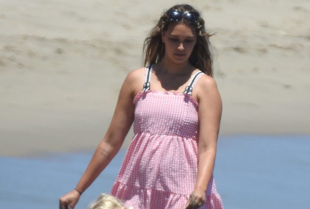 April cerca i granchi con sua figlia mentre i ragazzi giocano in acqua e su un kayak. April, che ha dato alla luce la figlia Lola Alain Thicke a febbraio 2019 e Mia Love a febbraio 2018, mette in mostra le sue curve con un semplice costume intero nero.
