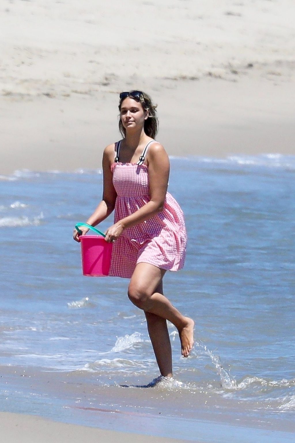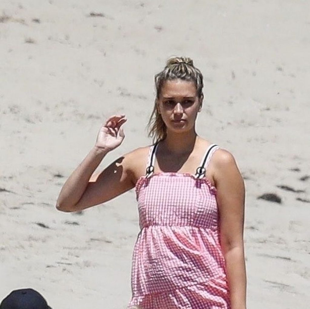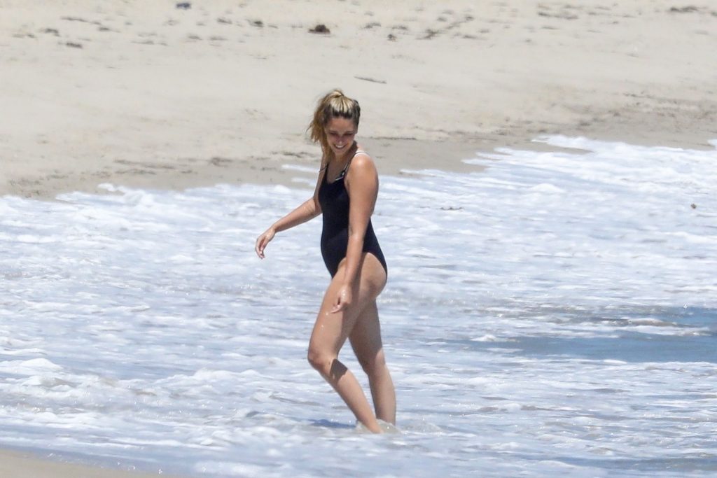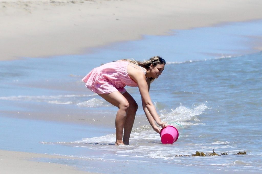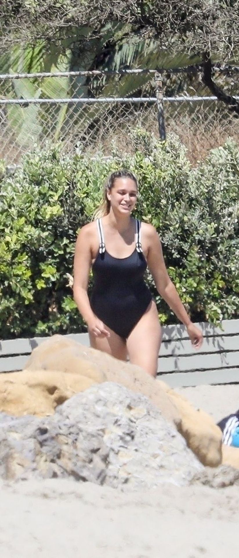 April cerca i granchi con sua figlia mentre i ragazzi giocano in acqua e su un kayak. April, che ha dato alla luce la figlia Lola Alain Thicke a febbraio 2019 e Mia Love a febbraio 2018, mette in mostra le sue curve con un semplice costume intero nero.