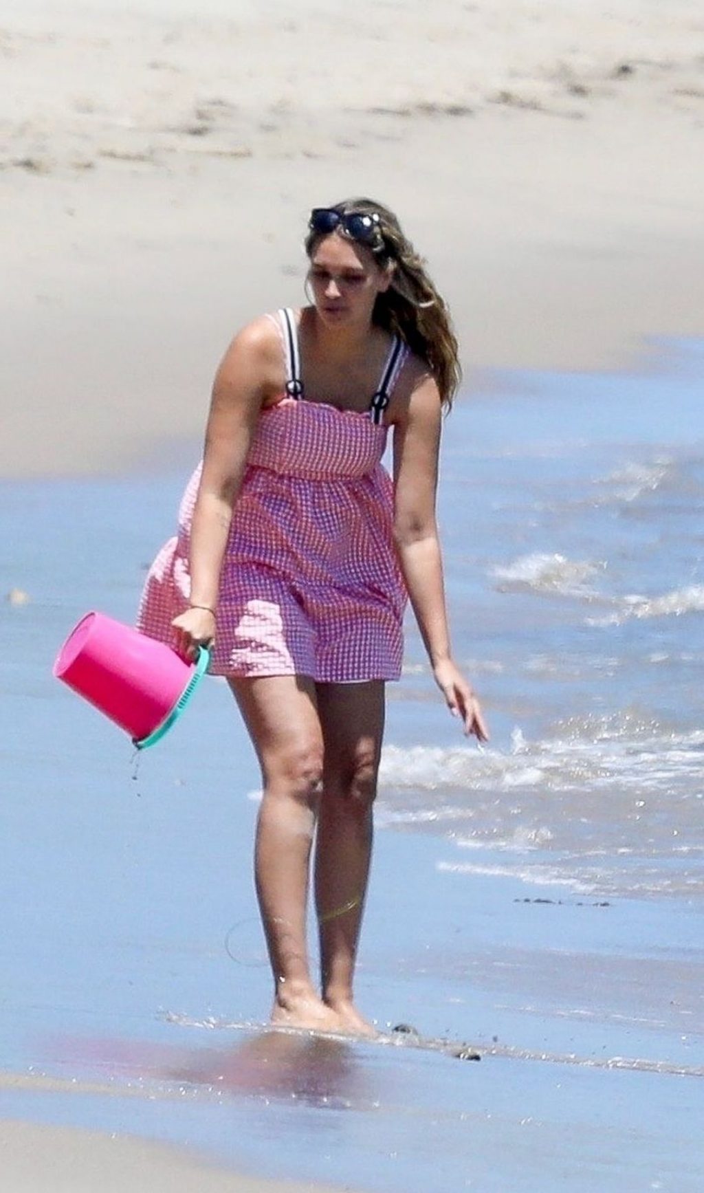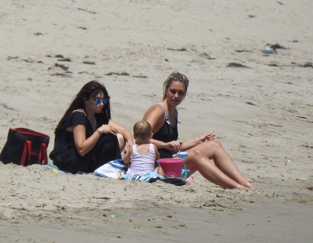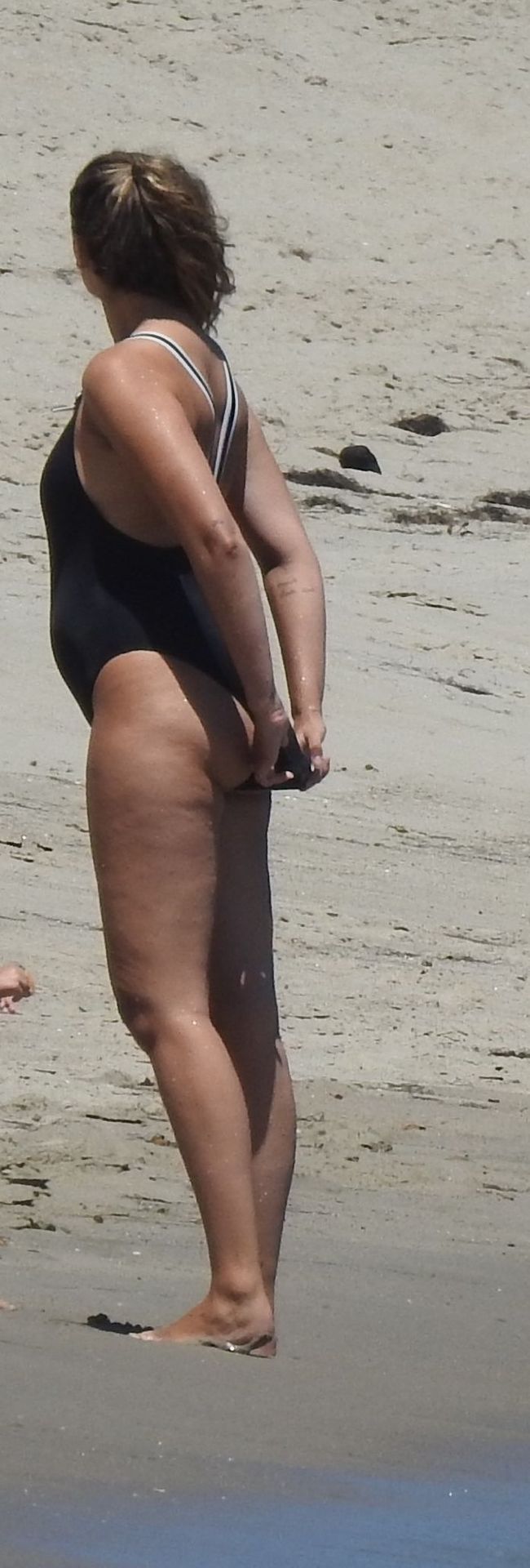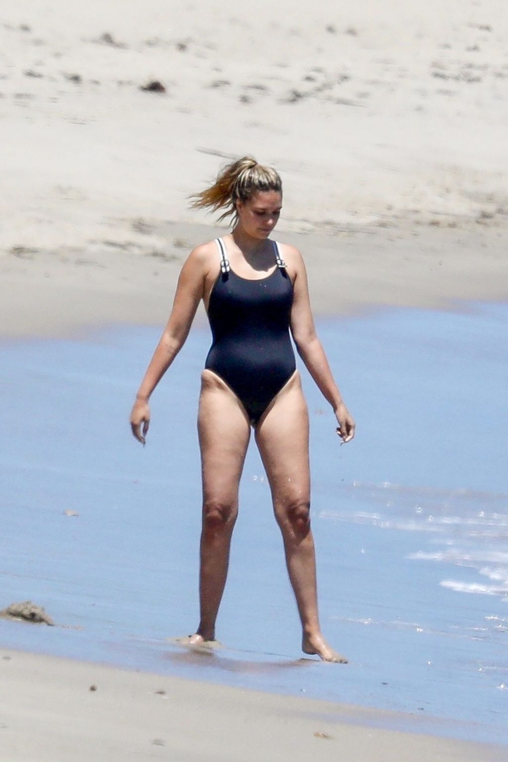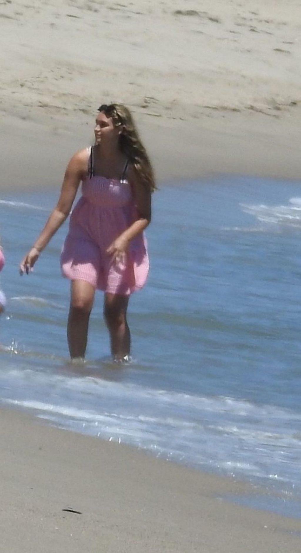 April cerca i granchi con sua figlia mentre i ragazzi giocano in acqua e su un kayak. April, che ha dato alla luce la figlia Lola Alain Thicke a febbraio 2019 e Mia Love a febbraio 2018, mette in mostra le sue curve con un semplice costume intero nero.