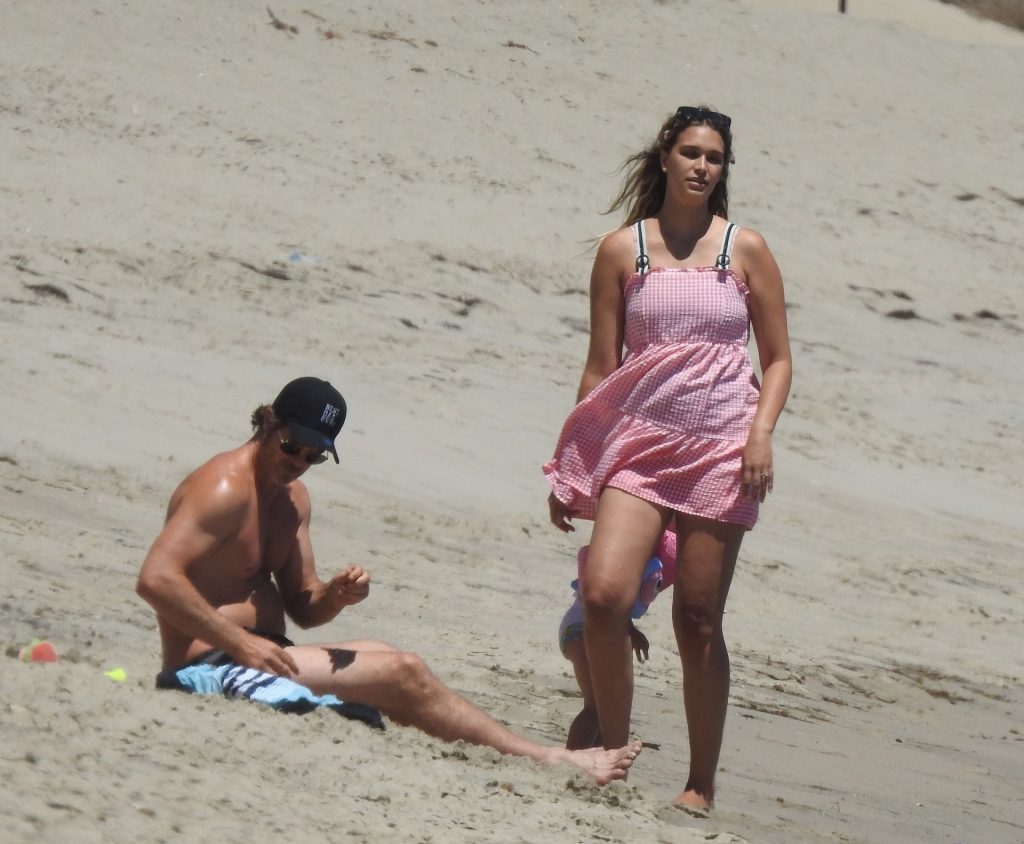 Robin Thicke e sua moglie April Love Geary trascorrono la giornata con i loro figli sulla spiaggia di Malibu, 16/07/2020.