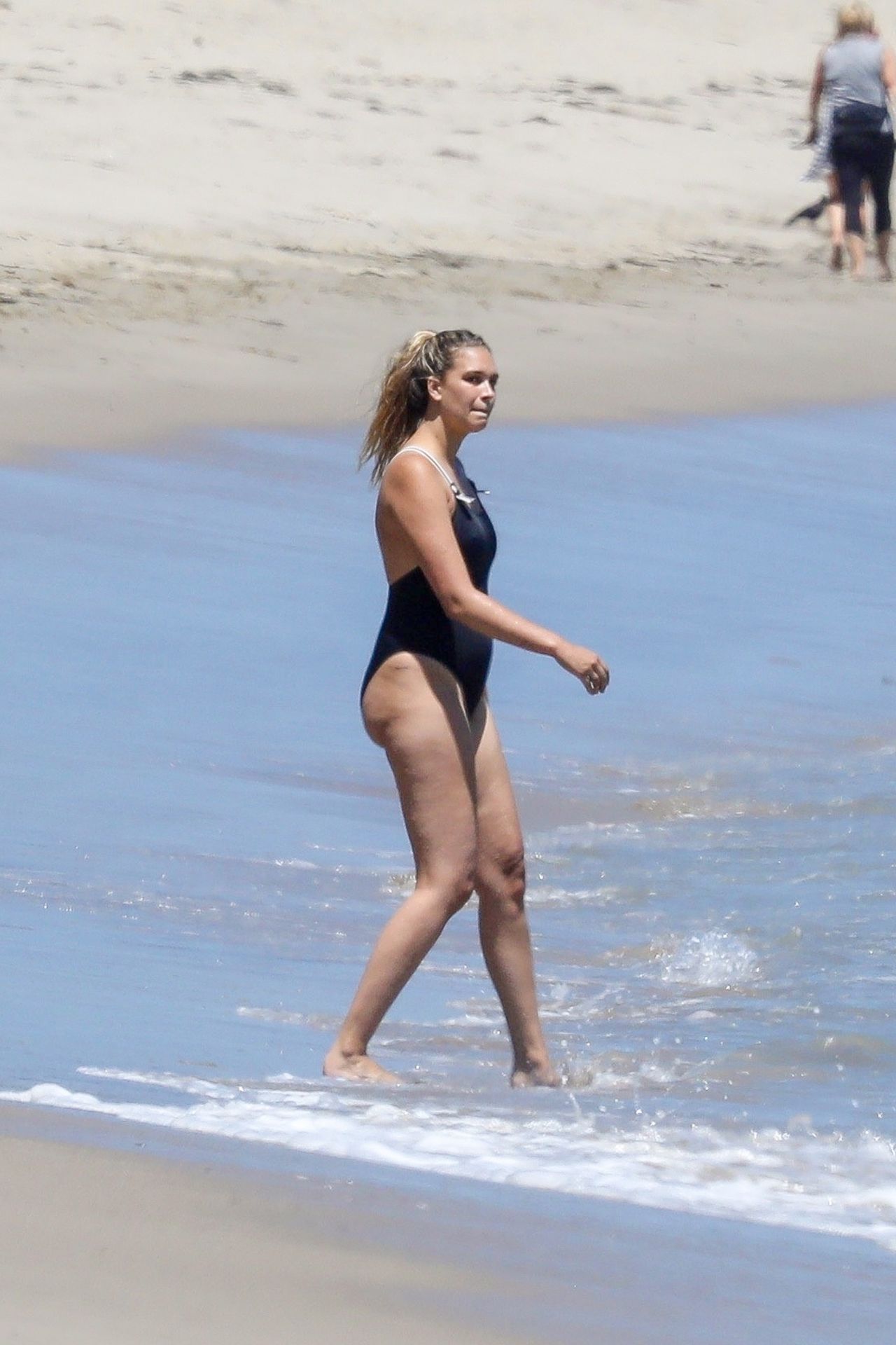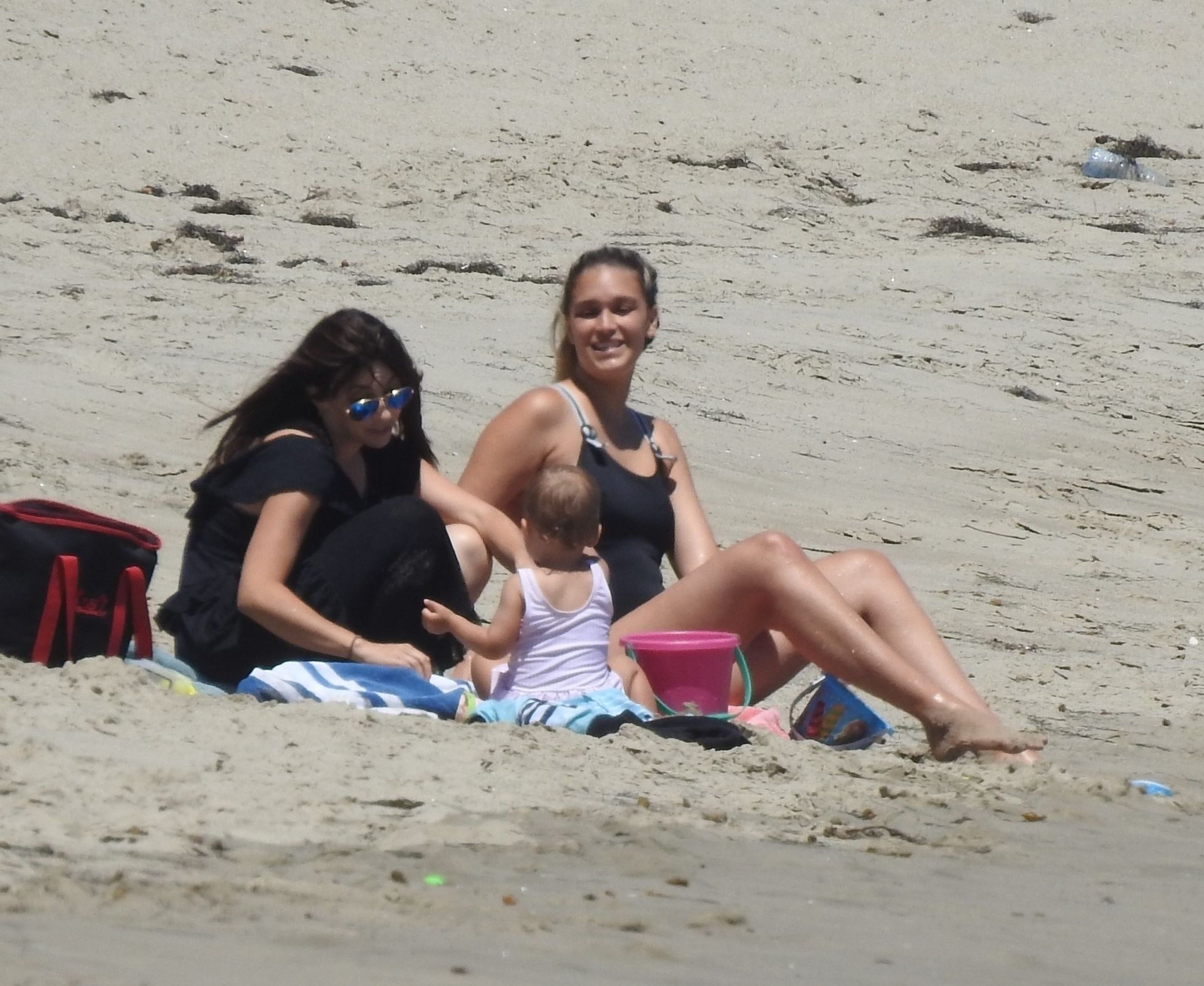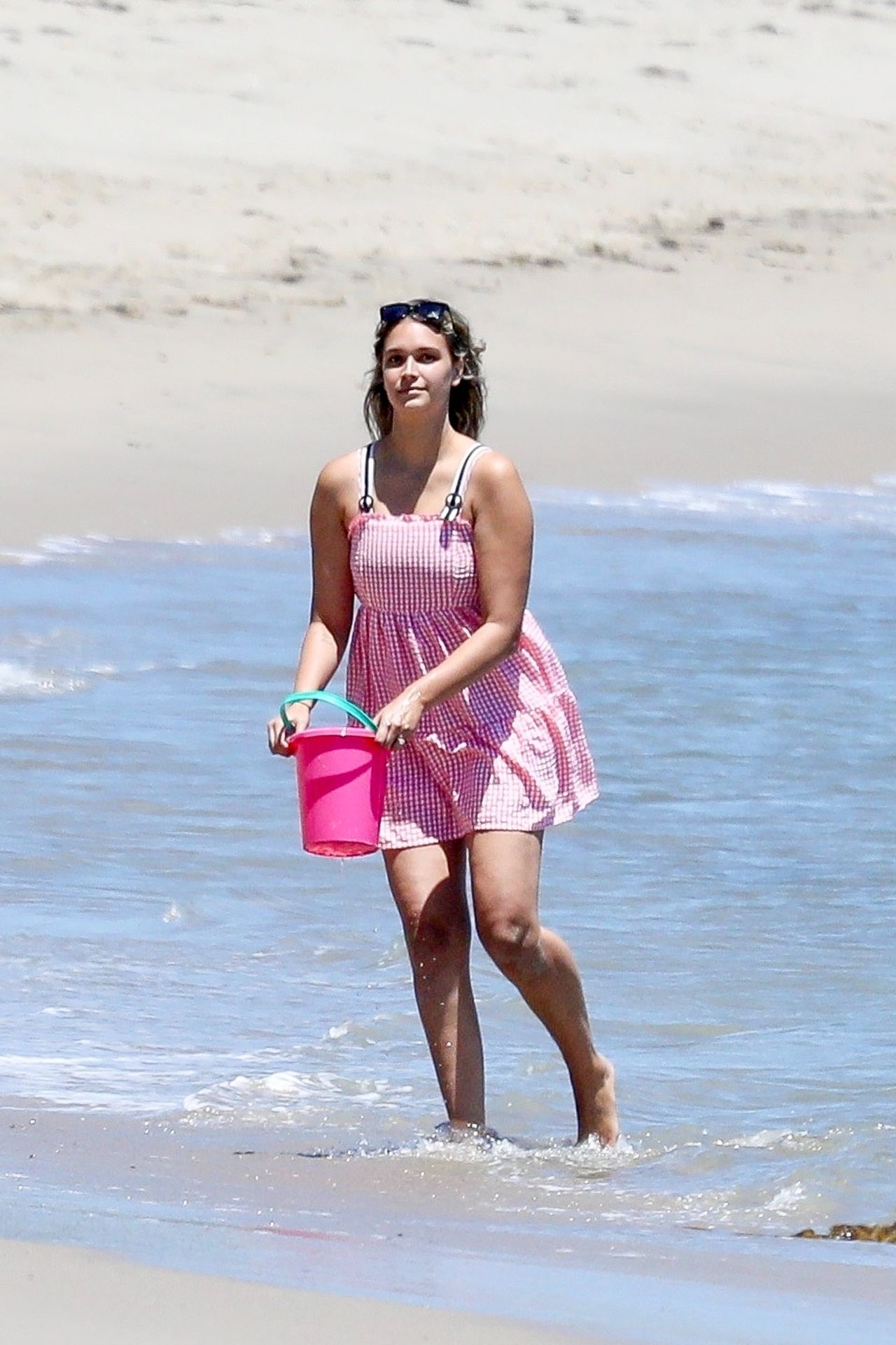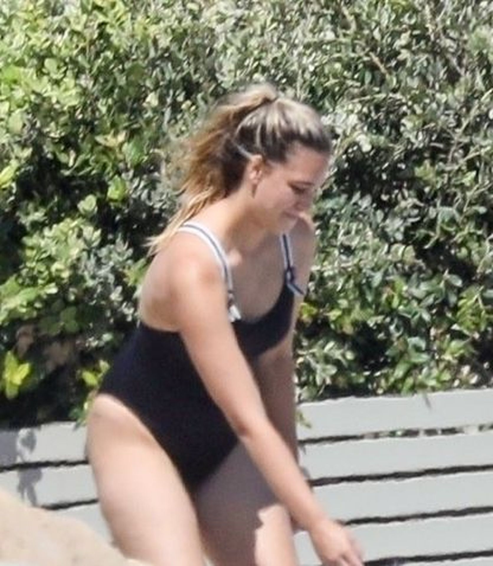 April cerca i granchi con sua figlia mentre i ragazzi giocano in acqua e su un kayak. April, che ha dato alla luce la figlia Lola Alain Thicke a febbraio 2019 e Mia Love a febbraio 2018, mette in mostra le sue curve con un semplice costume intero nero.