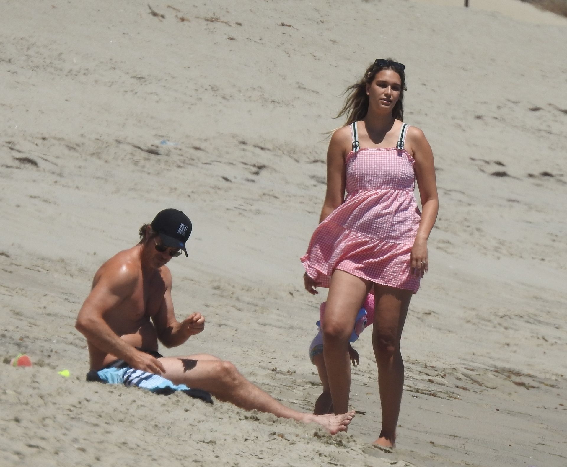Robin Thicke e sua moglie April Love Geary trascorrono la giornata con i loro figli sulla spiaggia di Malibu, 16/07/2020.