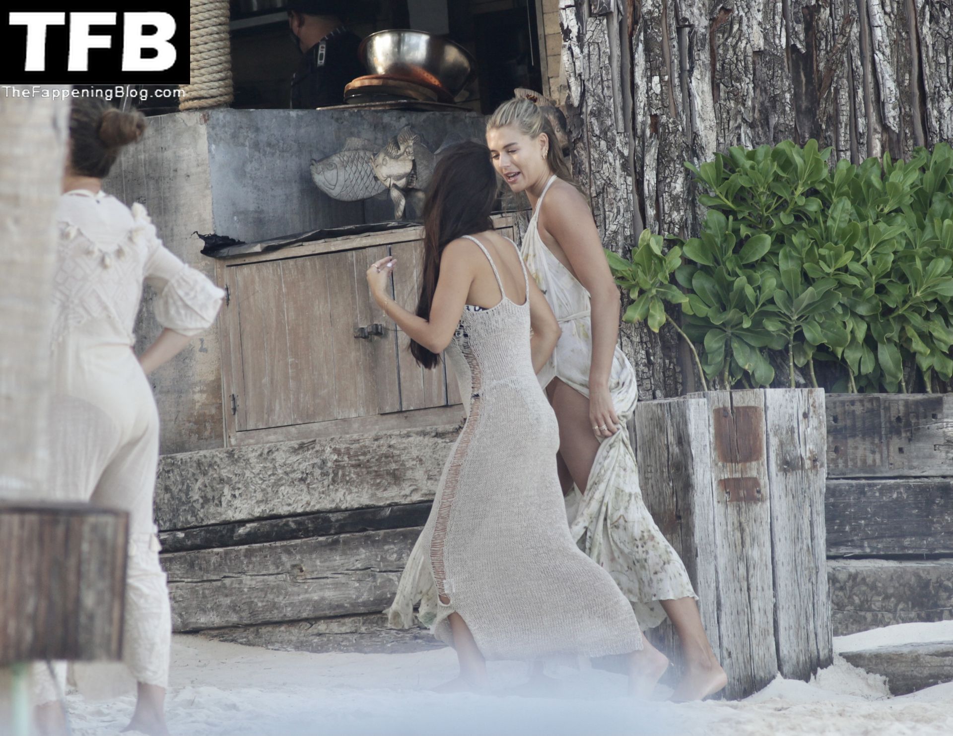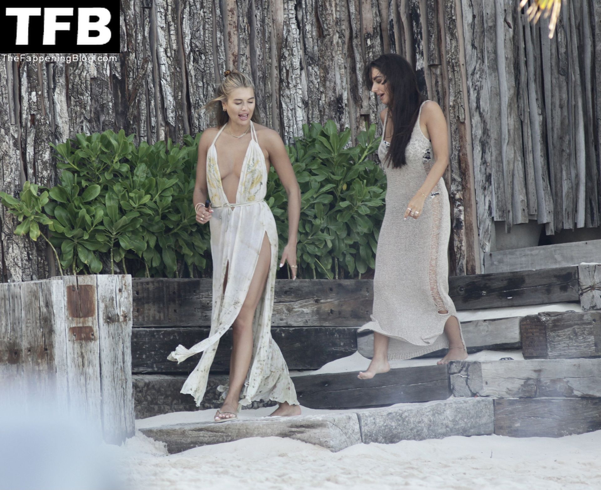 La star della TV reality Arabella Chi è stata vista con la sua amica sulla spiaggia di Tulum, Messico, 17/02/2022.