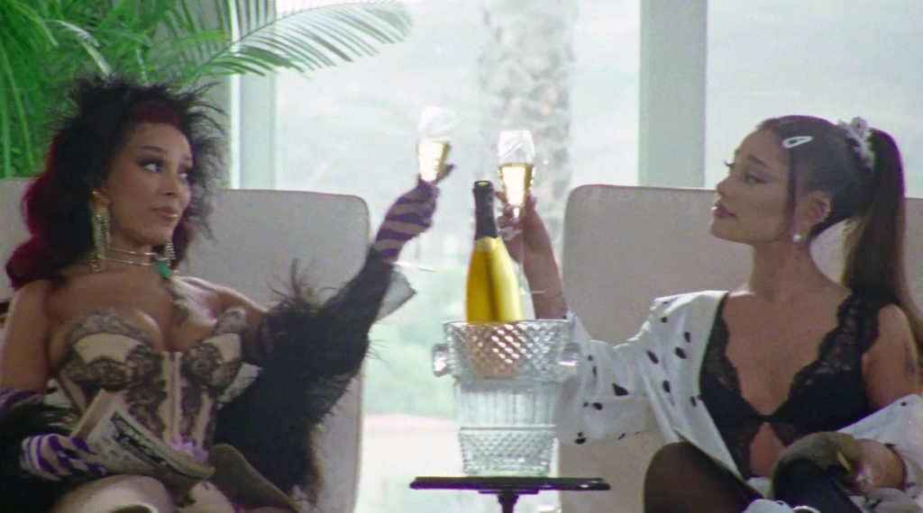 Check this out, guys! Here are a few screenshots from the new music video! Ariana Grande looked hot in her latest video with Doja Cat, and Megan Thee Stallion present their new 34+35 Remix! Ariana Grande showed her tight body in some sexy lace underwear!