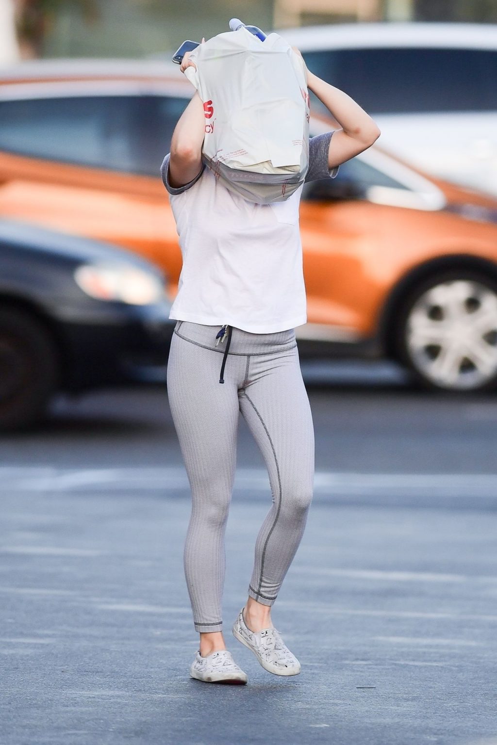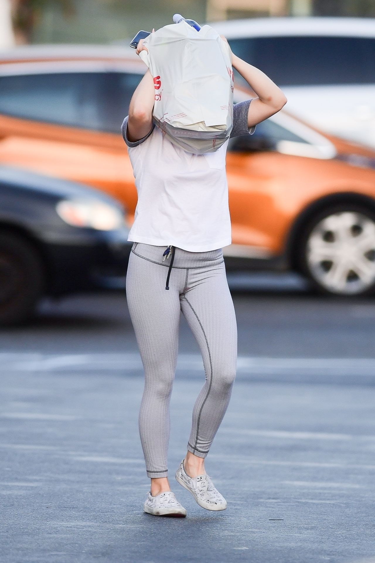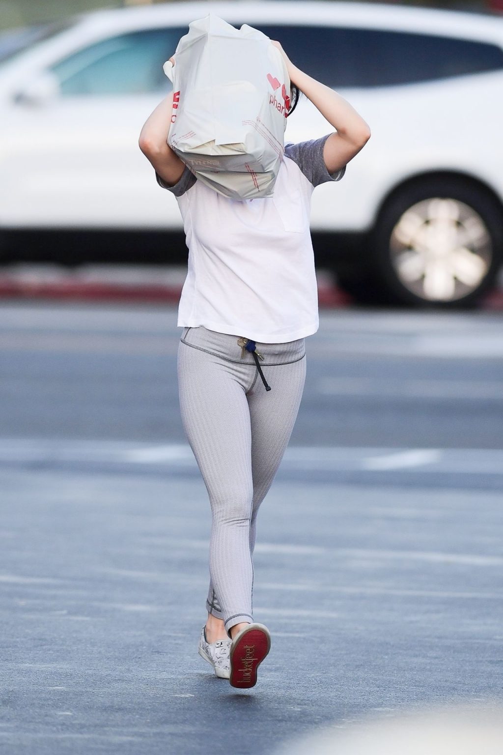 “Modern Family” l’attrice Ariel Winter si copre il volto con la sua borsa della spesa mentre esce da CVS dopo aver fatto shopping a Los Angeles, 10/11/2019.