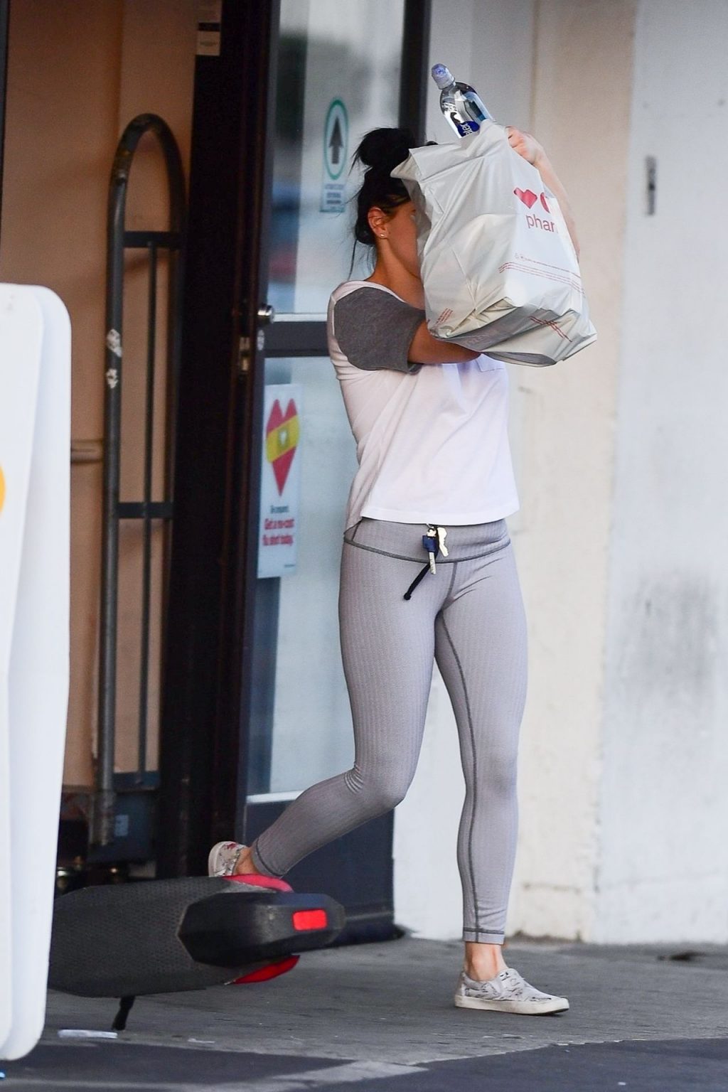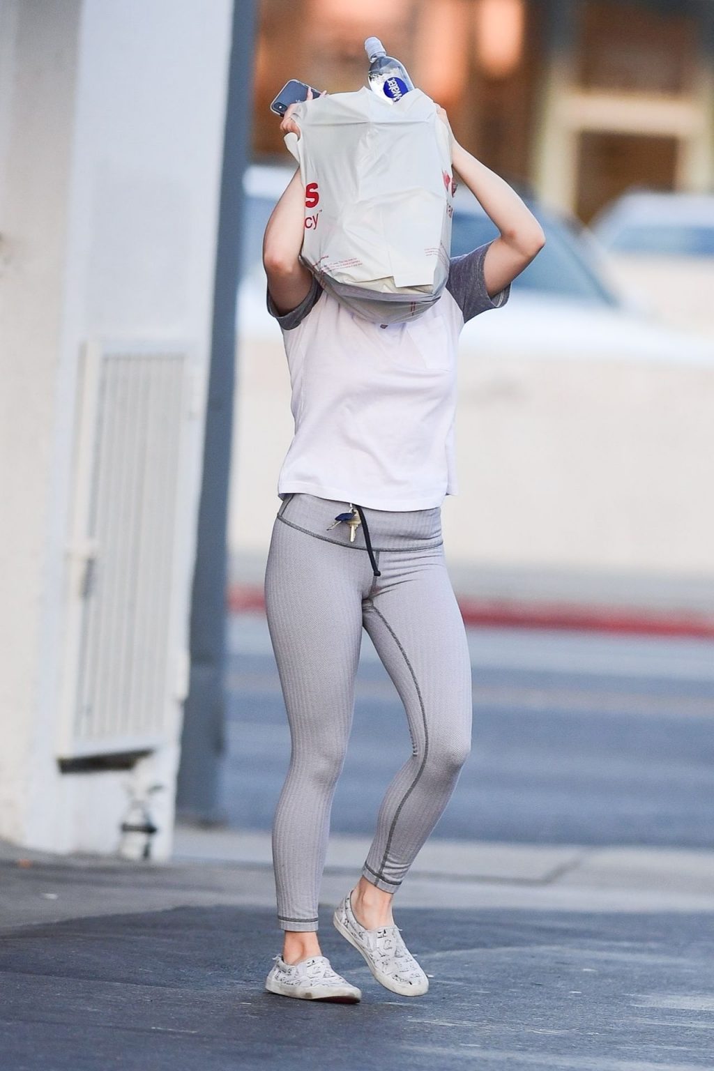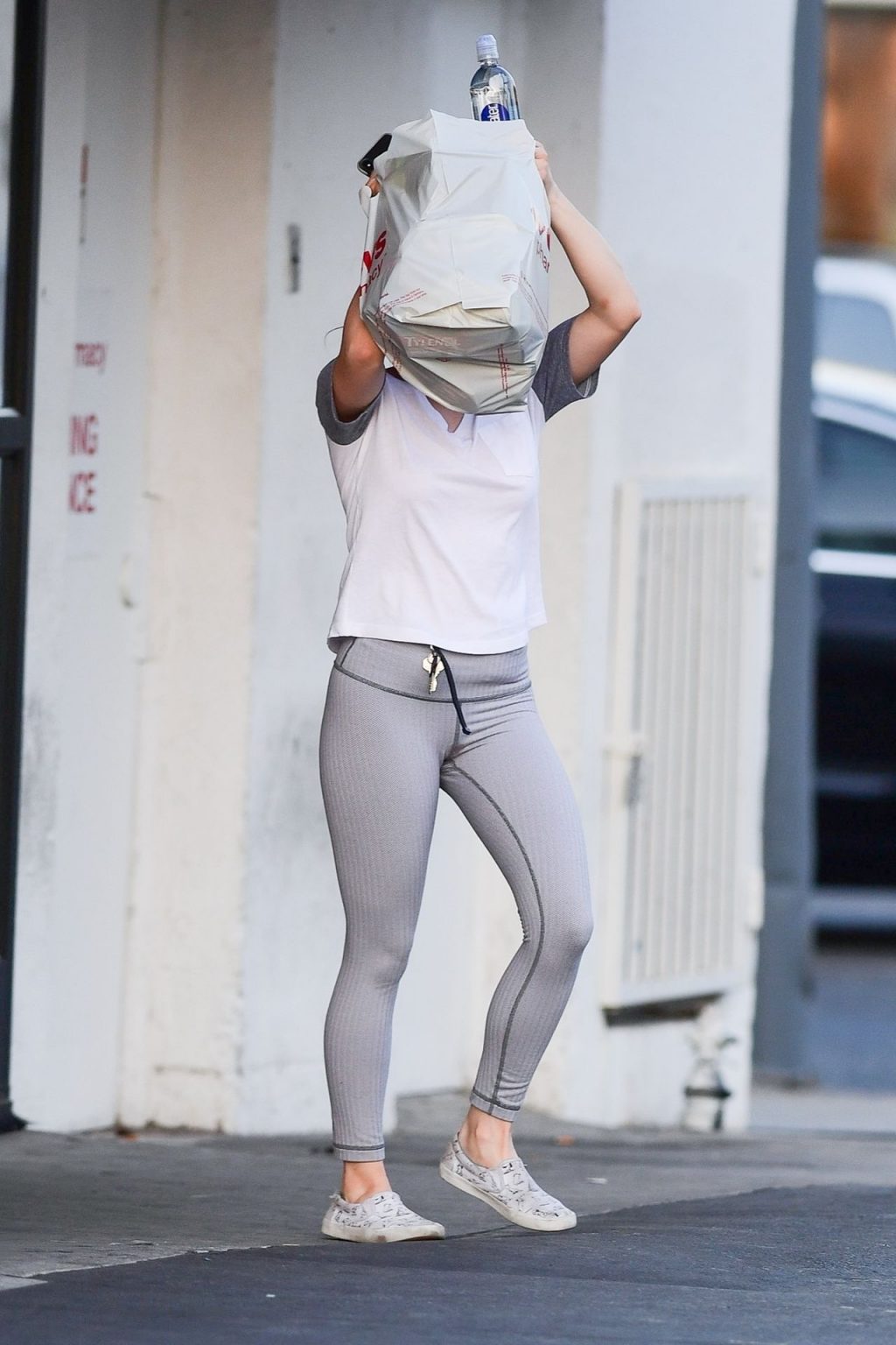 “Modern Family” l’attrice Ariel Winter si copre il volto con la sua borsa della spesa mentre esce da CVS dopo aver fatto shopping a Los Angeles, 10/11/2019.
