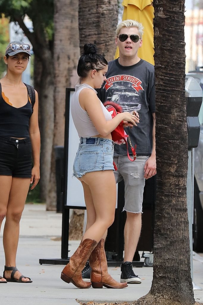 Ariel Winter (19) è stata vista fare la spesa a Los Angeles indossando pantaloncini di jeans tagliati, crop-top beige e stivali da cowboy, 09/04/2017. Ariel Winter è un’attrice (Sofia the First, TV), cantante, modella di Los Angeles.