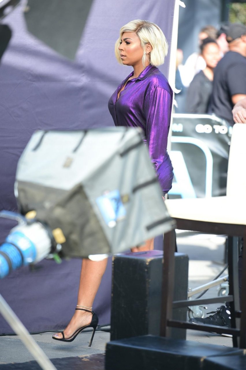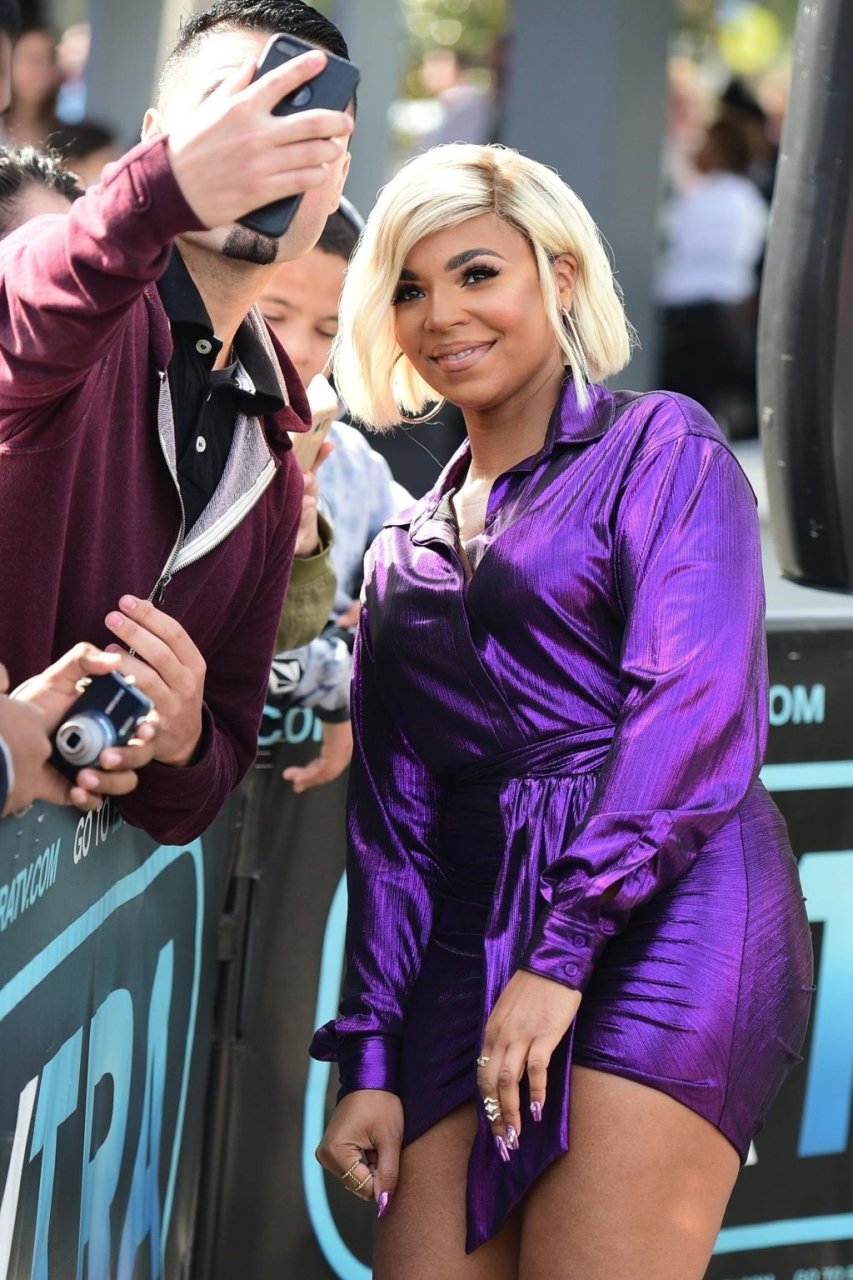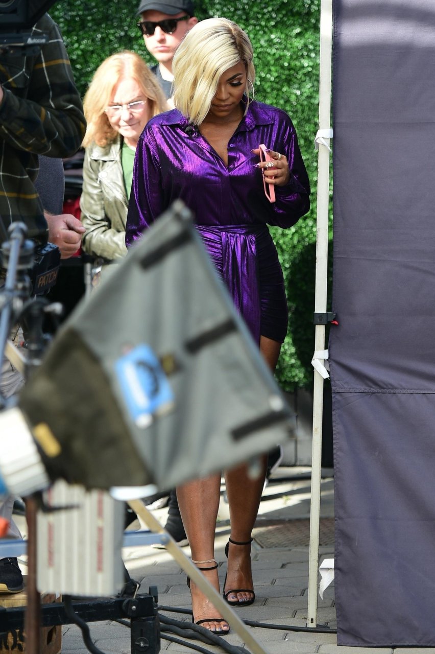 Cantante/attrice/ballerina Ashanti è stata vista a EXTRA in Universal CityWalk indossando un vestito viola che mostrava le sue gambe e i suoi piedi – Los Angeles, 15/04/2019. La 38enne sexy ha facilmente sistemato il suo vestito, che nascondeva leggermente le sue mutandine.