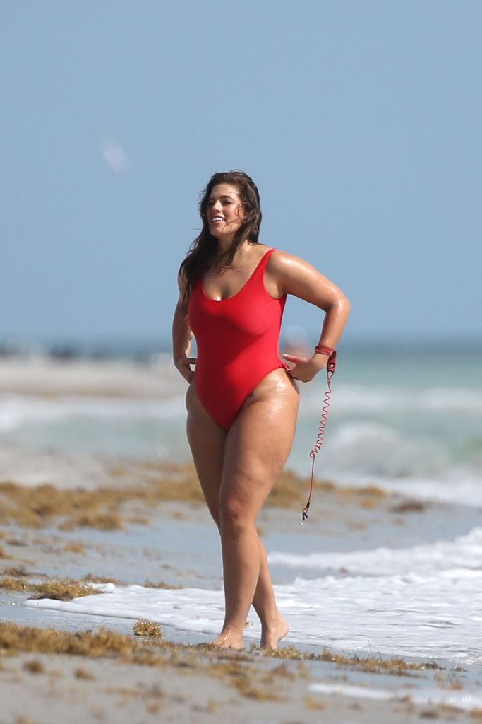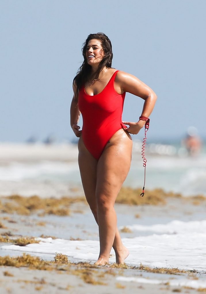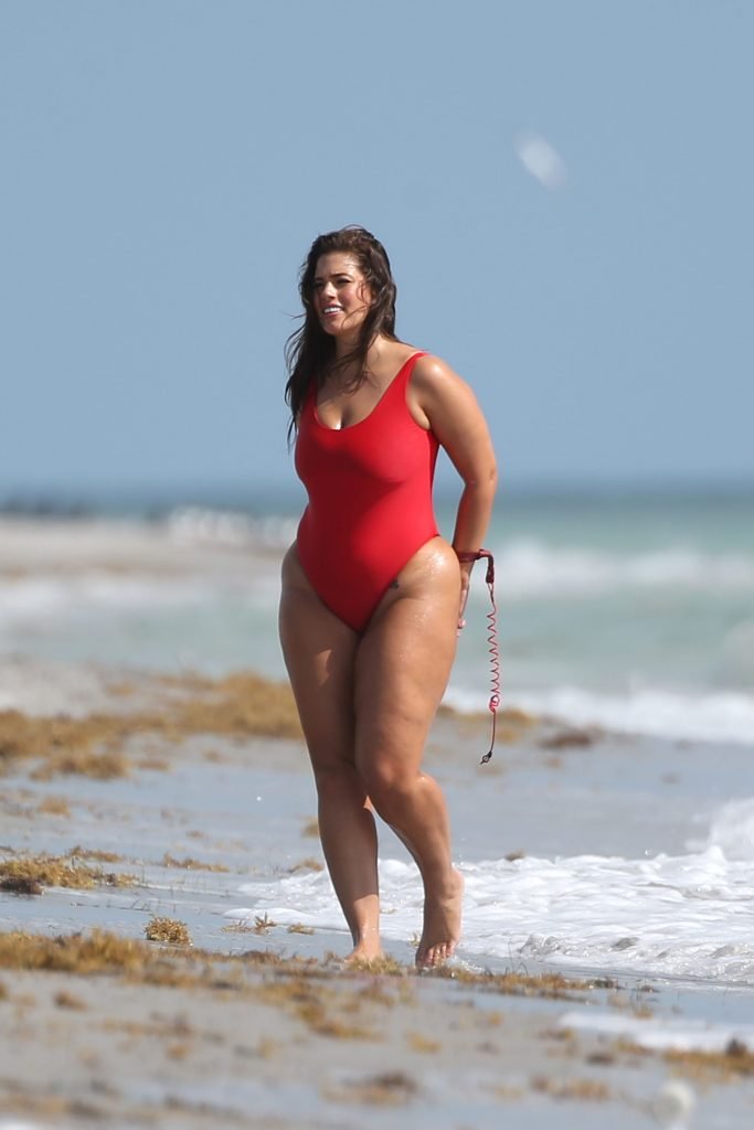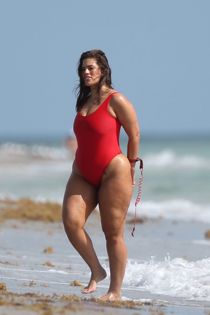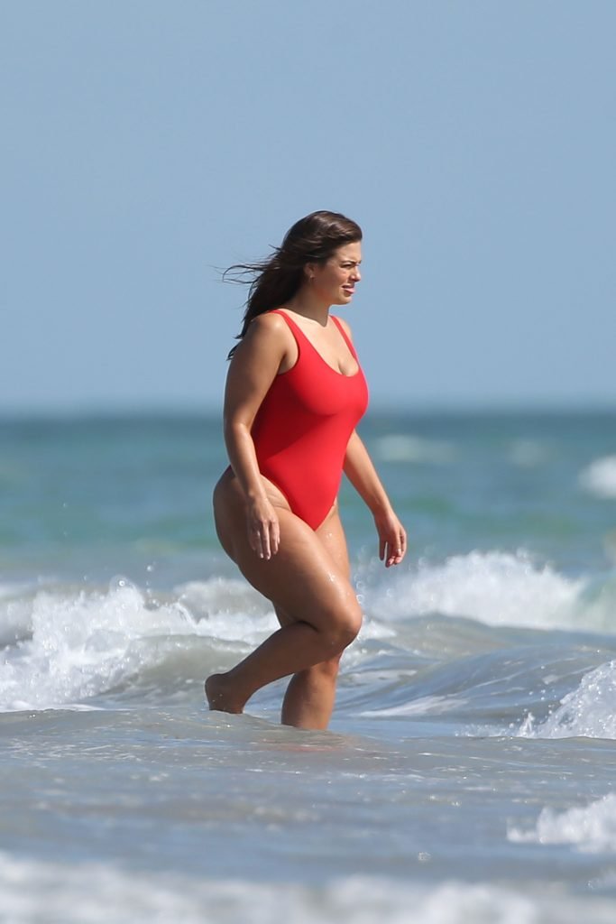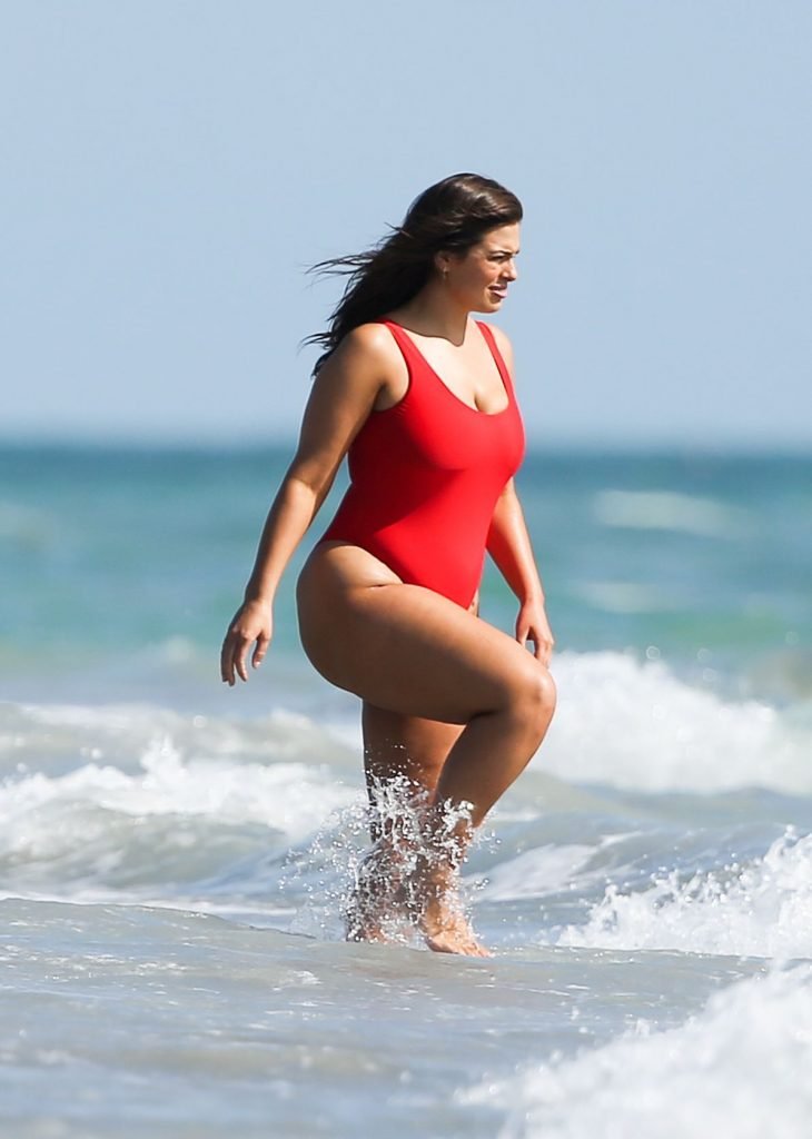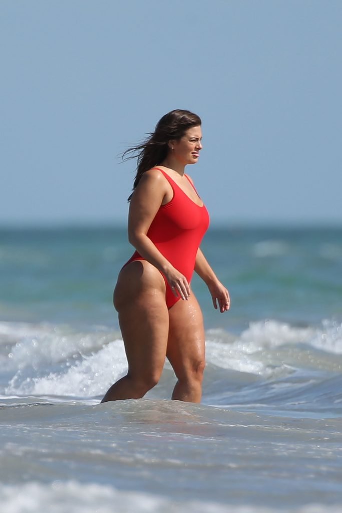 Ashley Graham mostra il suo enorme sedere in un costume da bagno rosso sulla spiaggia di Miami, 01/03/2017. Ashley Graham è una modella taglia forte (Glamour, Vogue, Harper’s Bazaar) di Lincoln (Nebraska (USA)). Età – 29 anni, 30 ottobre 1987.