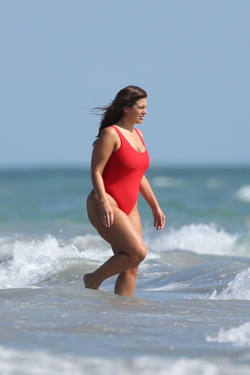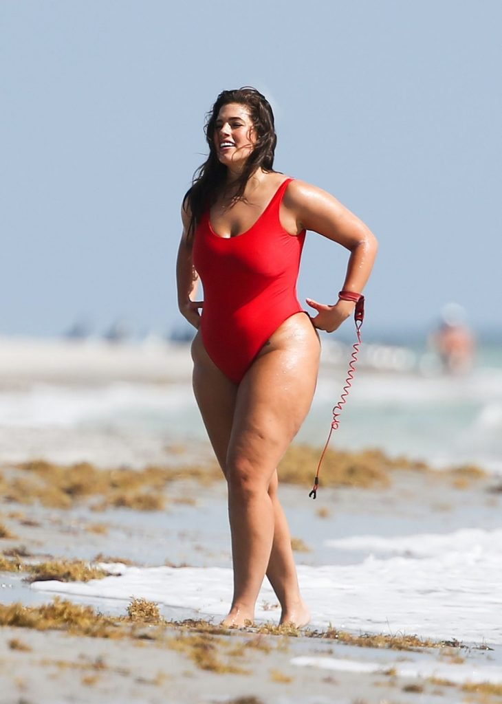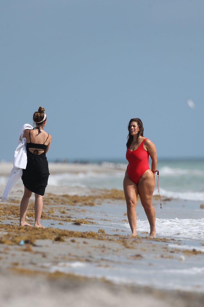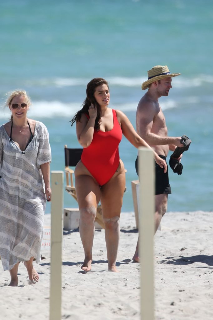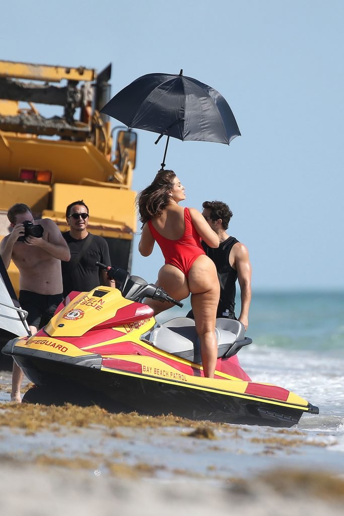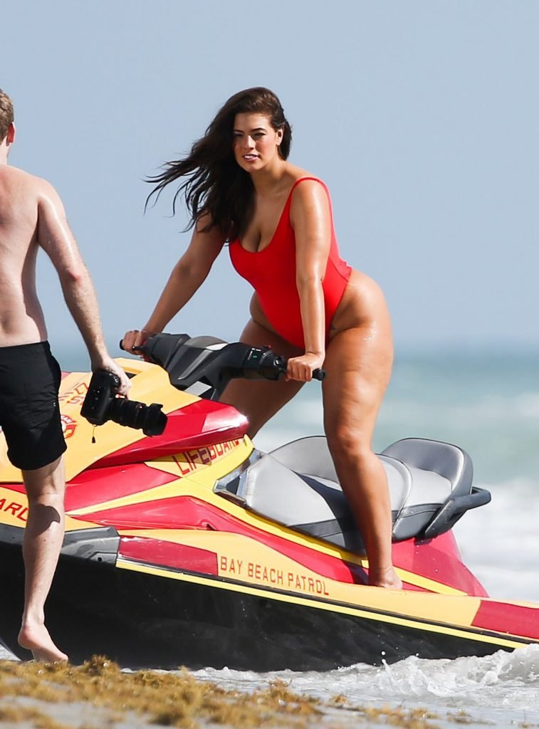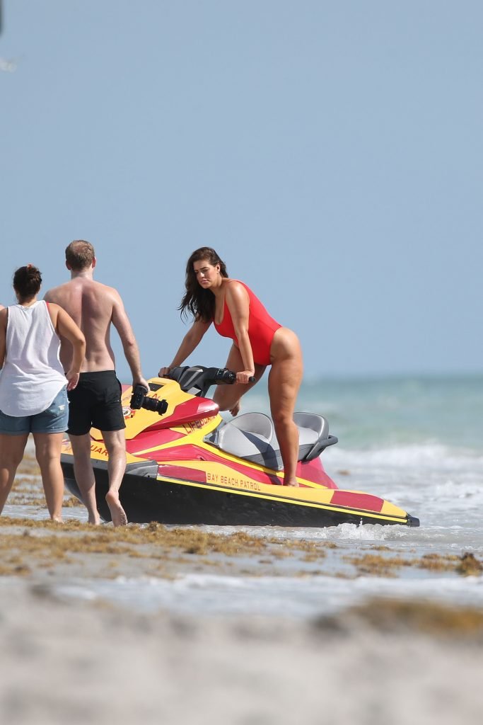 Ashley Graham mostra il suo enorme sedere in un costume da bagno rosso sulla spiaggia di Miami, 01/03/2017. Ashley Graham è una modella taglia forte (Glamour, Vogue, Harper’s Bazaar) di Lincoln (Nebraska (USA)). Età – 29 anni, 30 ottobre 1987.