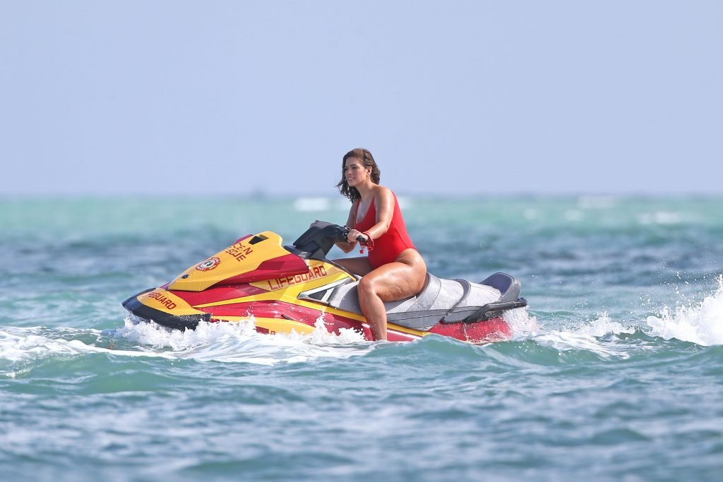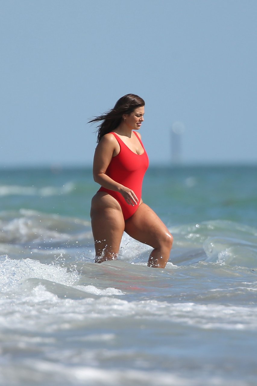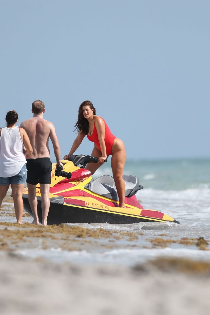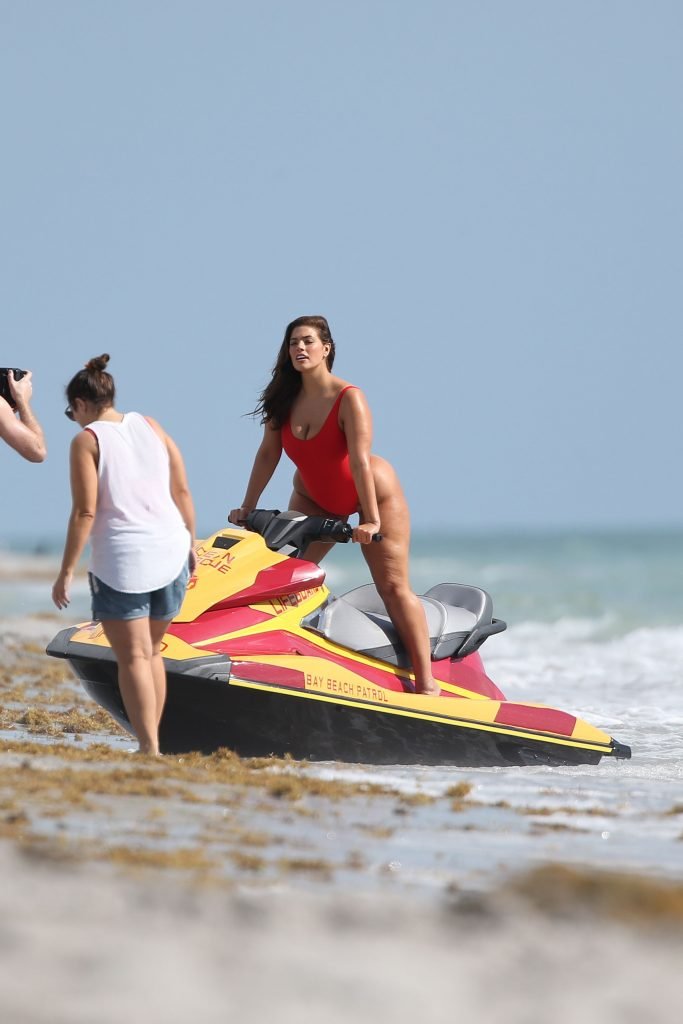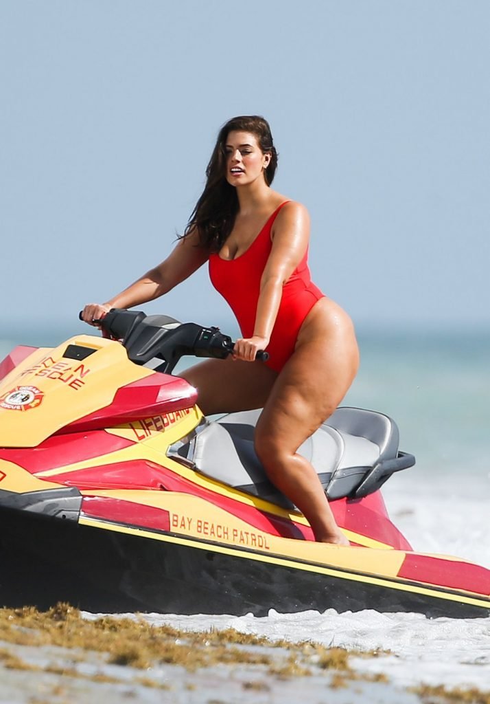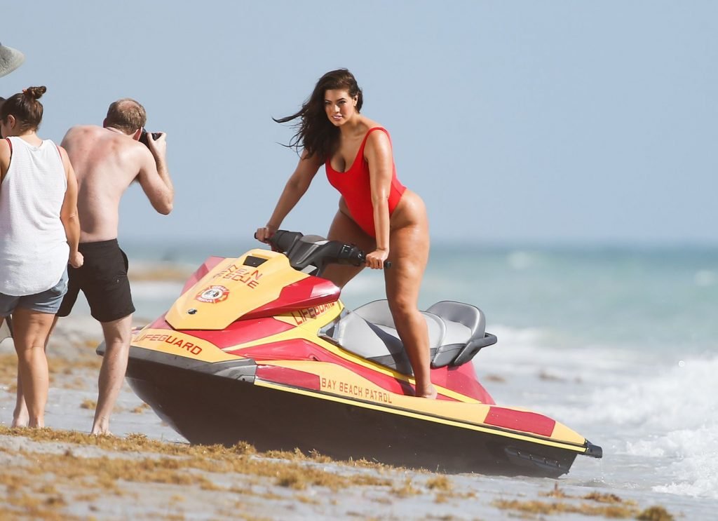 Ashley Graham mostra il suo enorme sedere in un costume da bagno rosso sulla spiaggia di Miami, 01/03/2017. Ashley Graham è una modella taglia forte (Glamour, Vogue, Harper’s Bazaar) di Lincoln (Nebraska (USA)). Età – 29 anni, 30 ottobre 1987.
