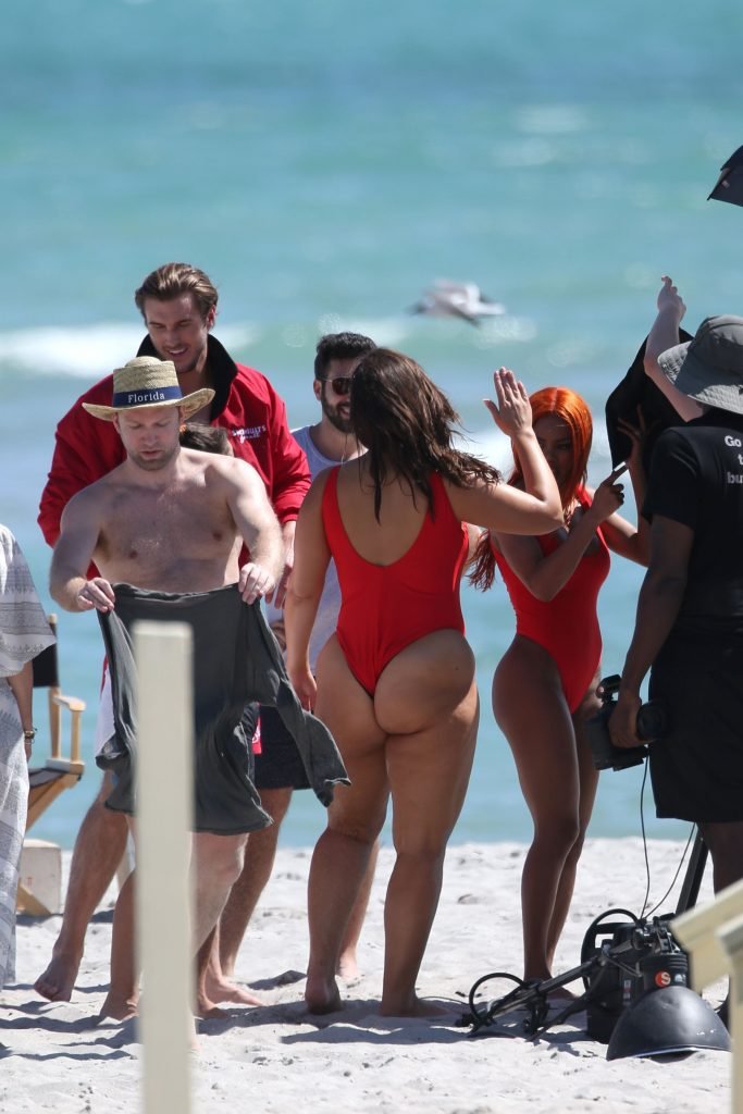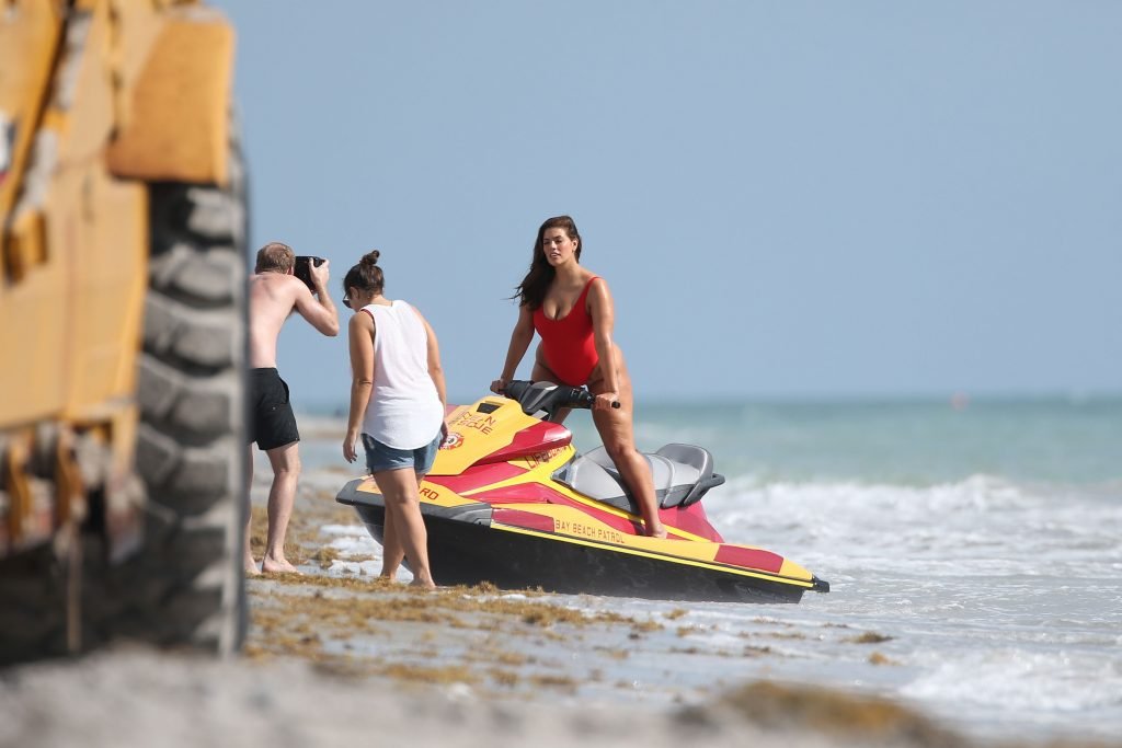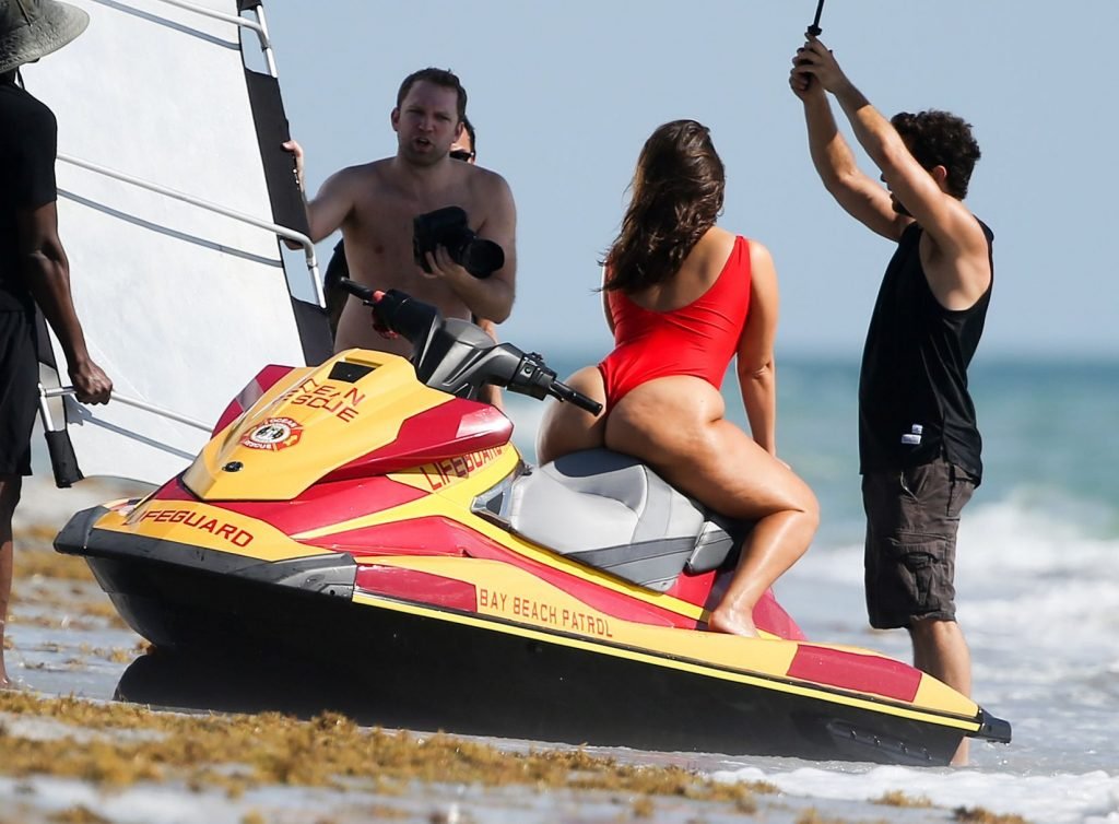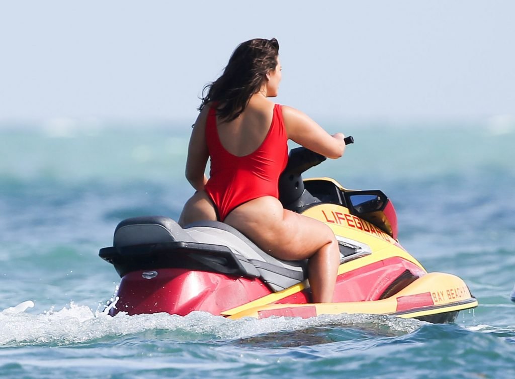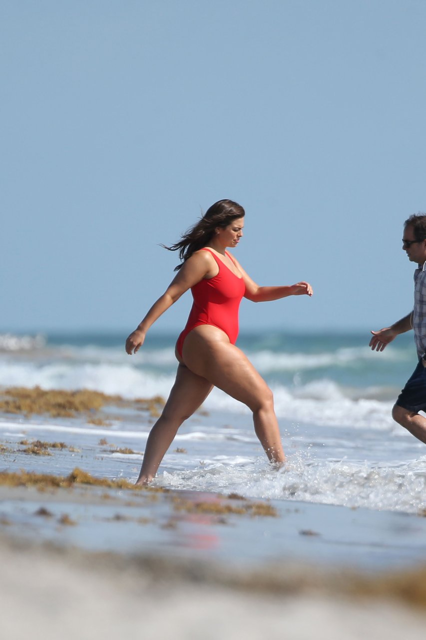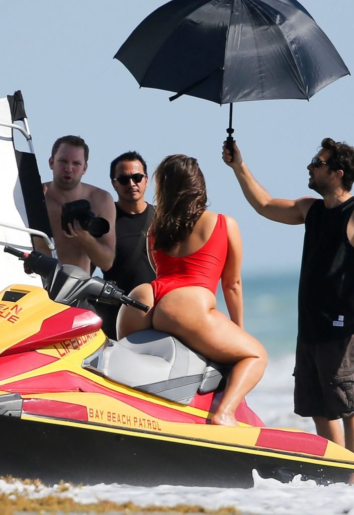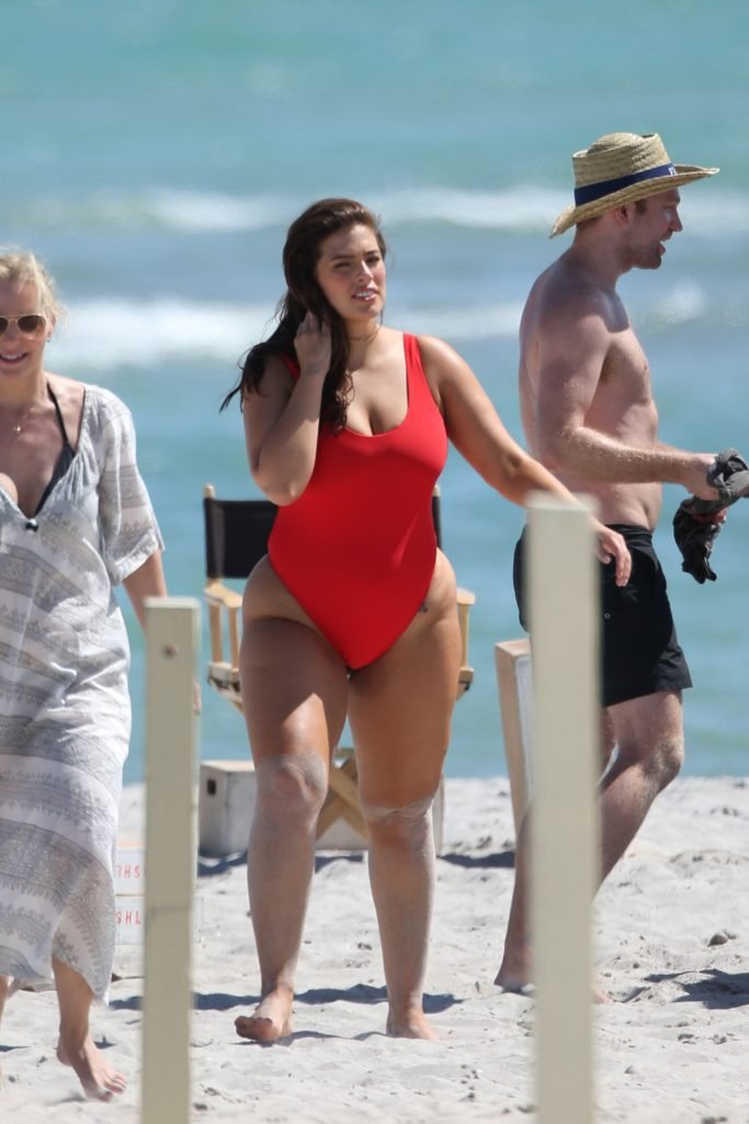 Ashley Graham mostra il suo enorme sedere in un costume da bagno rosso sulla spiaggia di Miami, 01/03/2017. Ashley Graham è una modella taglia forte (Glamour, Vogue, Harper’s Bazaar) di Lincoln (Nebraska (USA)). Età – 29 anni, 30 ottobre 1987.