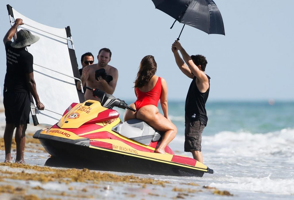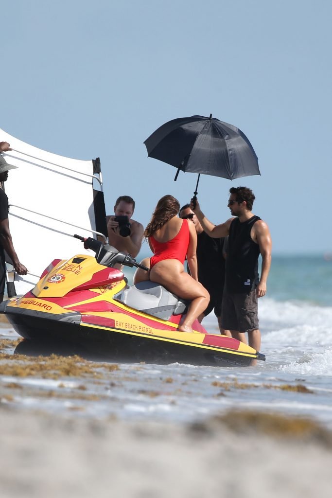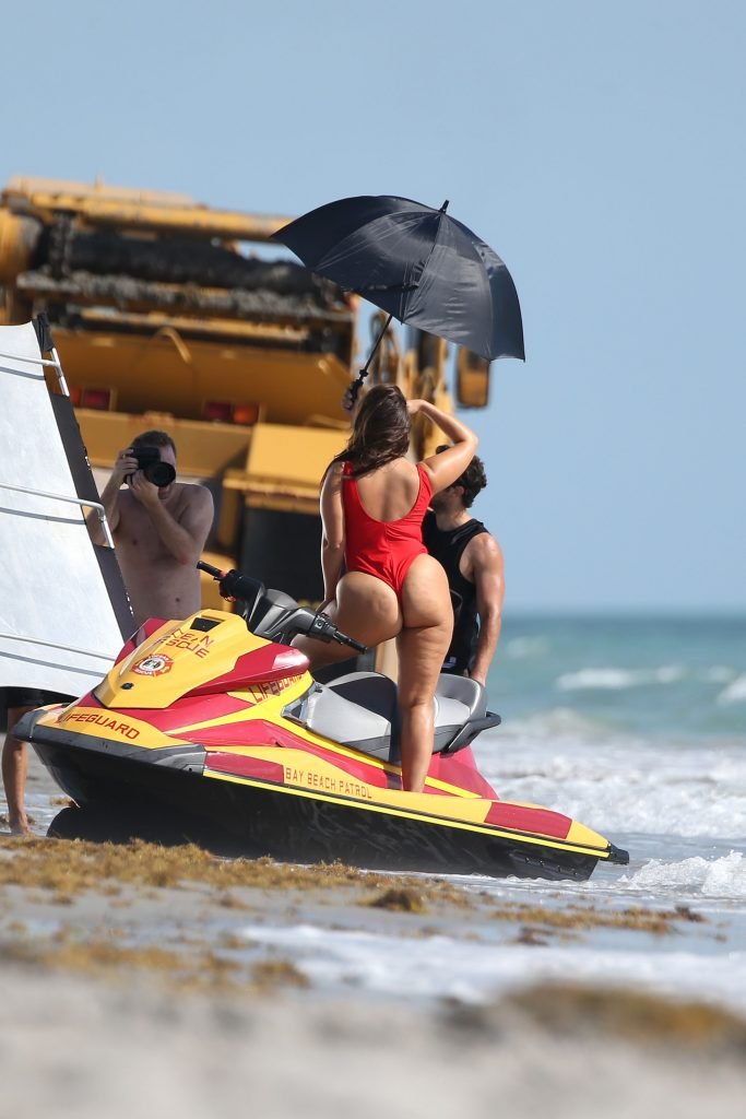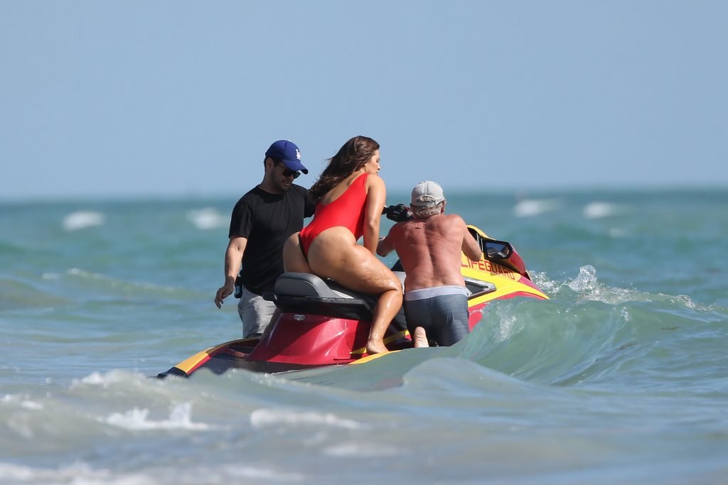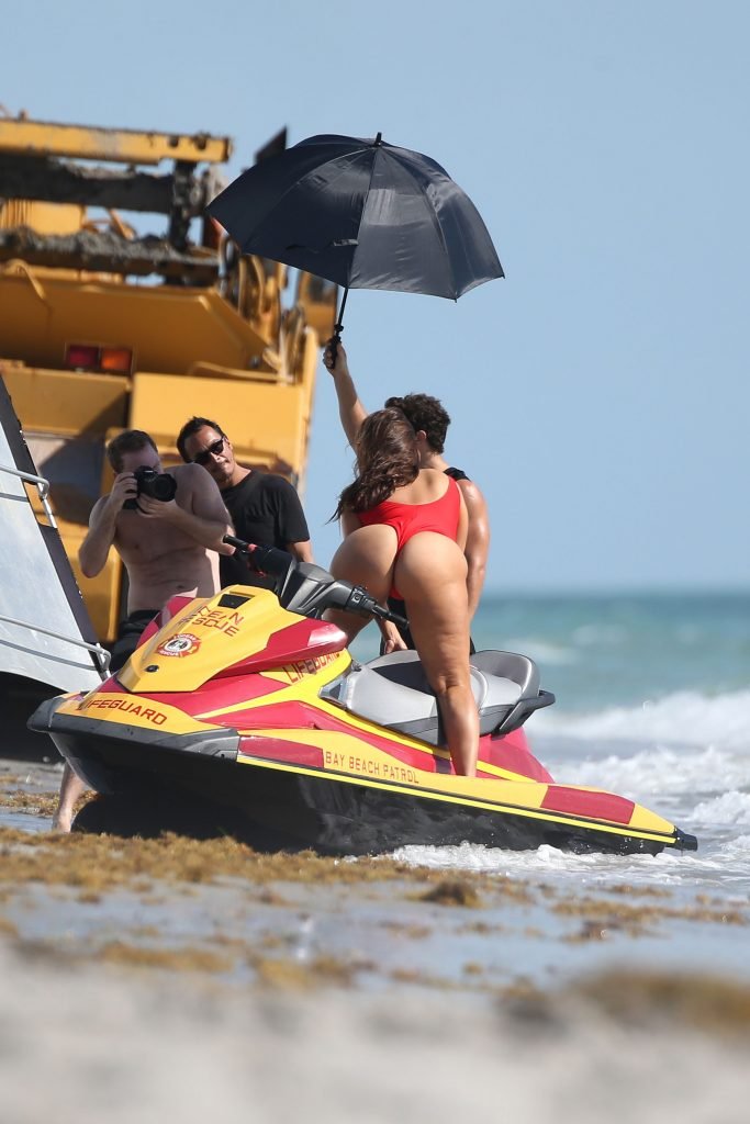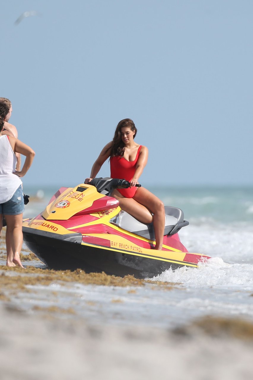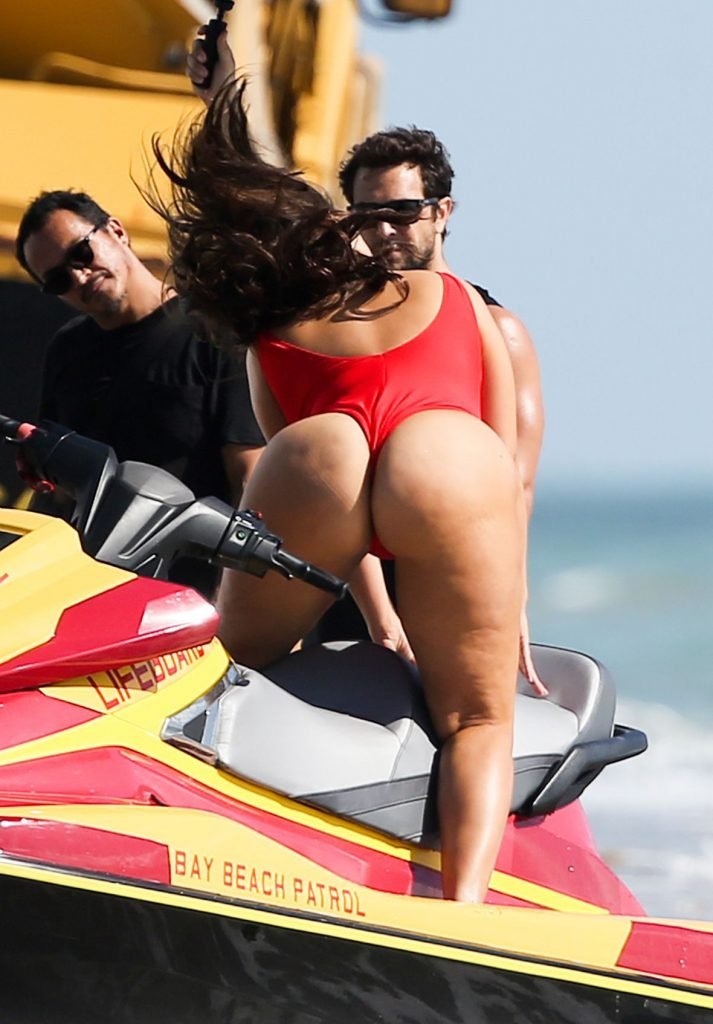 Ashley Graham mostra il suo enorme sedere in un costume da bagno rosso sulla spiaggia di Miami, 01/03/2017. Ashley Graham è una modella taglia forte (Glamour, Vogue, Harper’s Bazaar) di Lincoln (Nebraska (USA)). Età – 29 anni, 30 ottobre 1987.