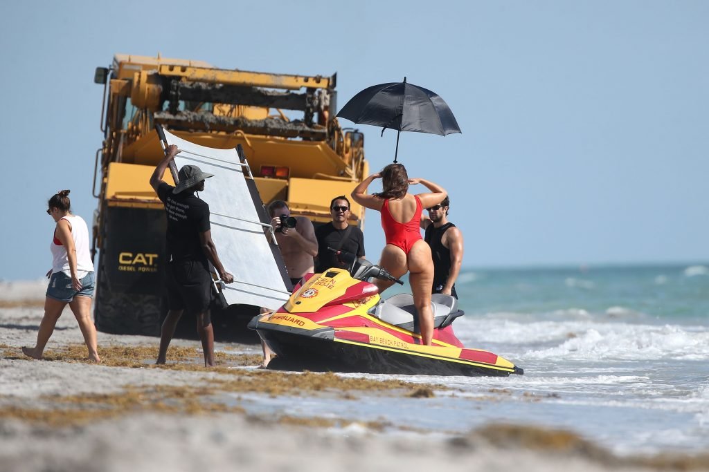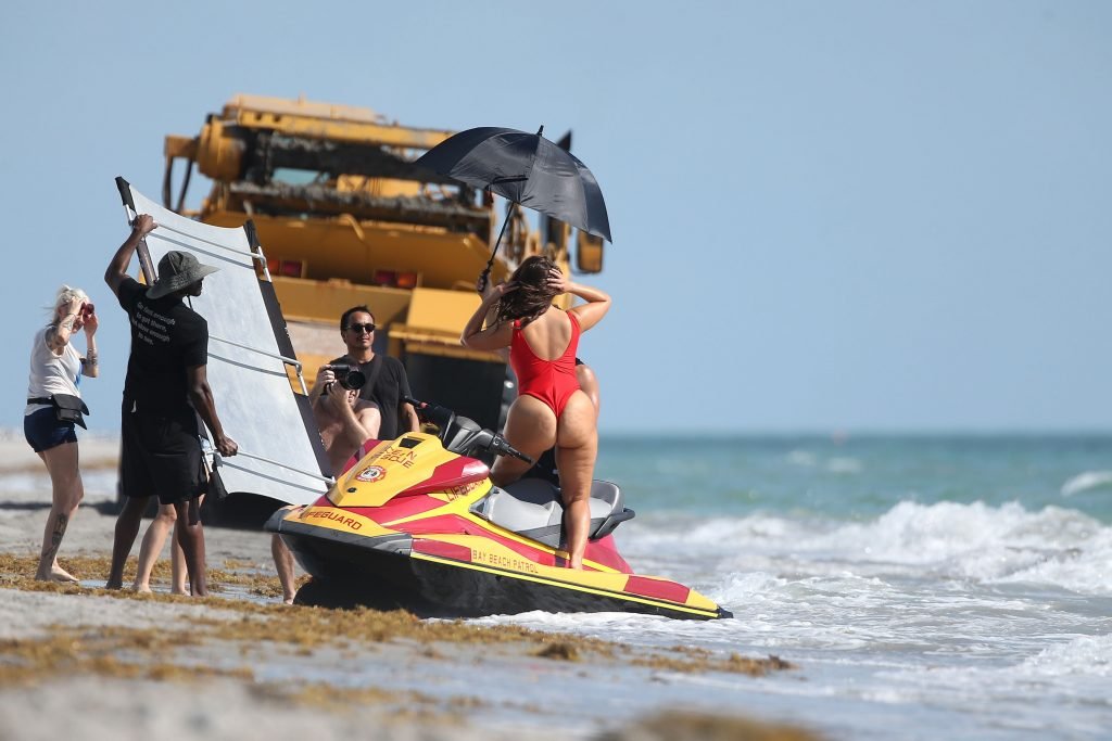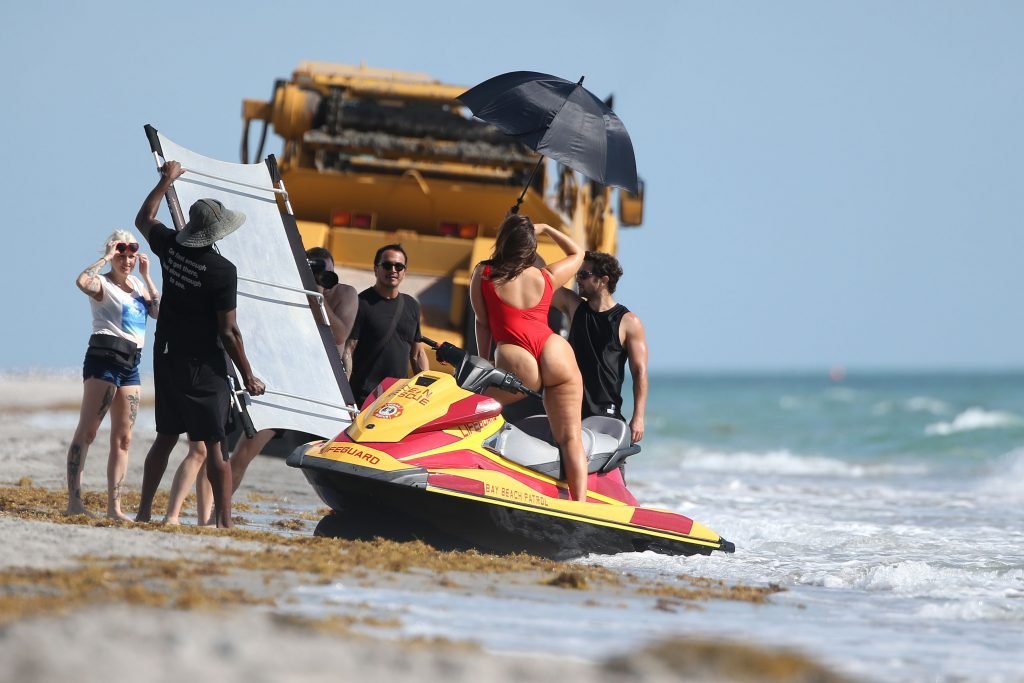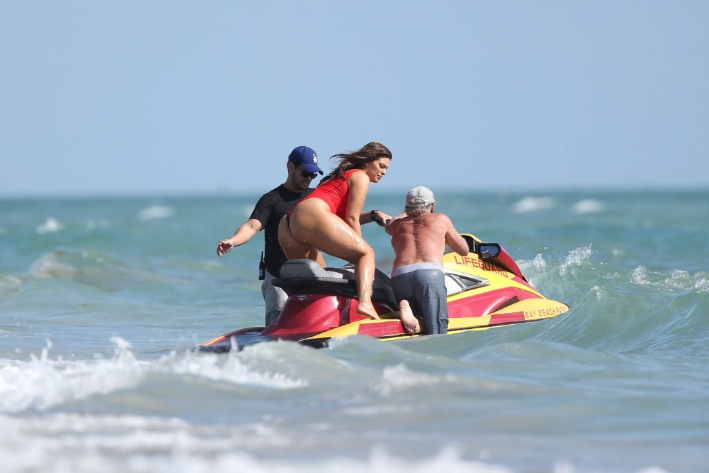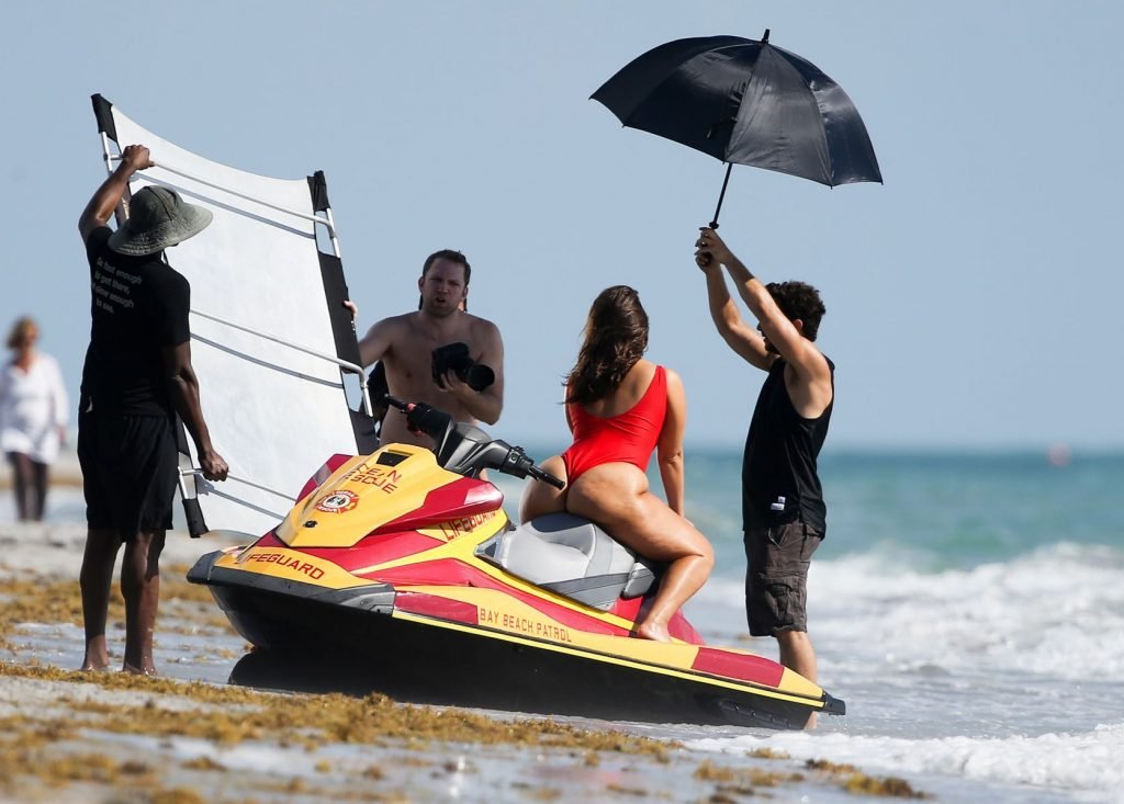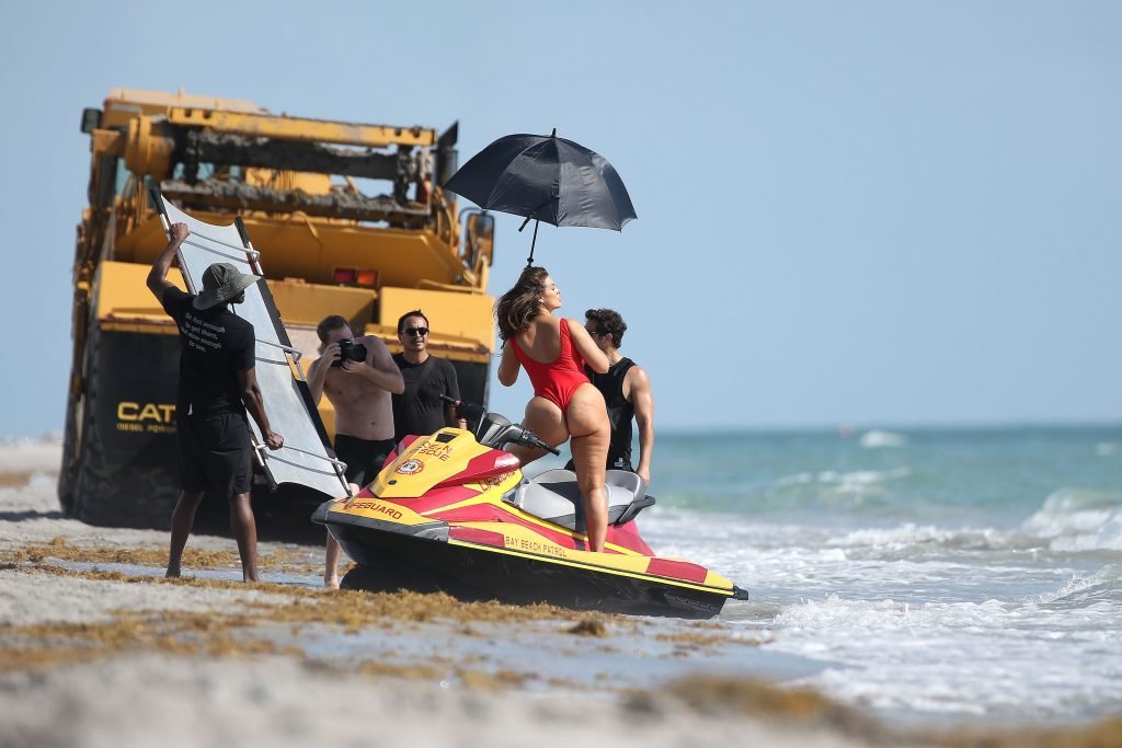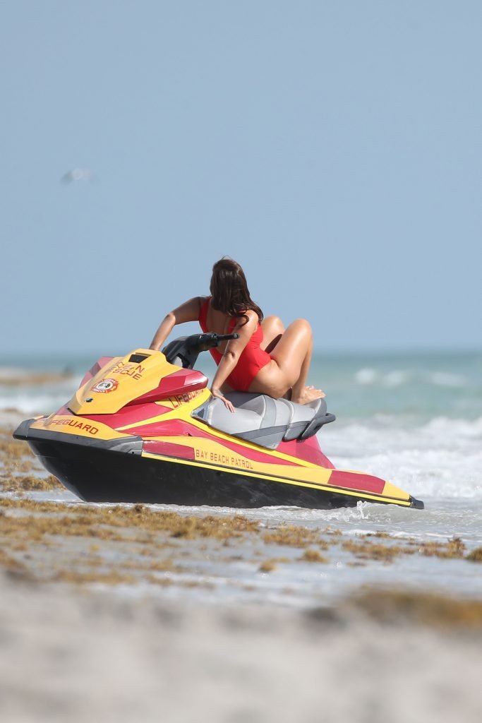 Ashley Graham mostra il suo enorme sedere in un costume da bagno rosso sulla spiaggia di Miami, 01/03/2017. Ashley Graham è una modella taglia forte (Glamour, Vogue, Harper’s Bazaar) di Lincoln (Nebraska (USA)). Età – 29 anni, 30 ottobre 1987.