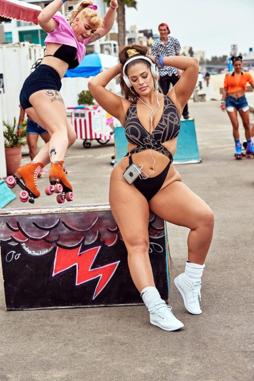 Ashley Graham si ricollega alla campagna resort 2019 di Swimsuits For All. La nuova collezione si ispira agli anni ’90 con tonalità neon e tagli a vita alta. Ashley posa in una location nel Sud della California.