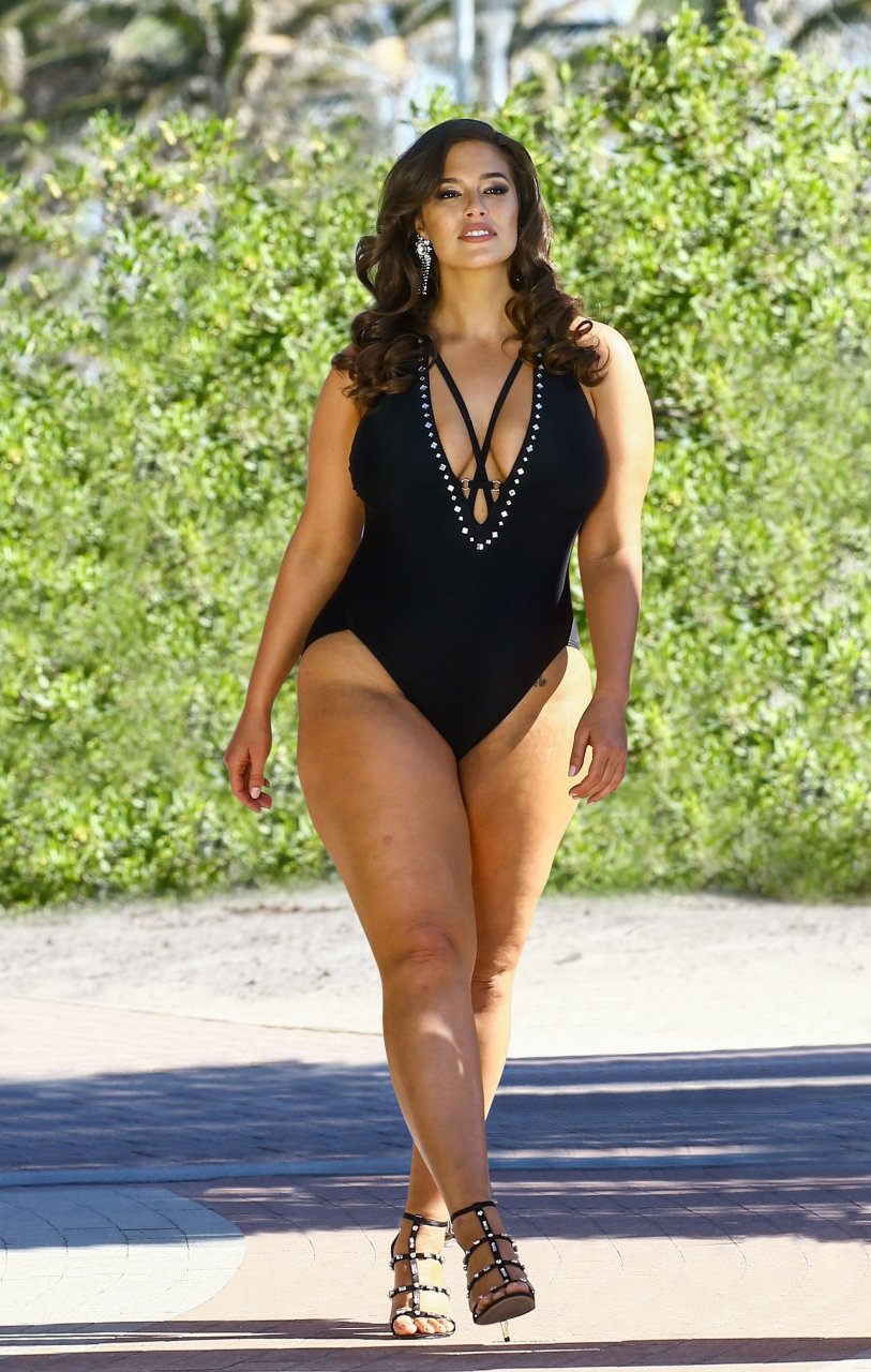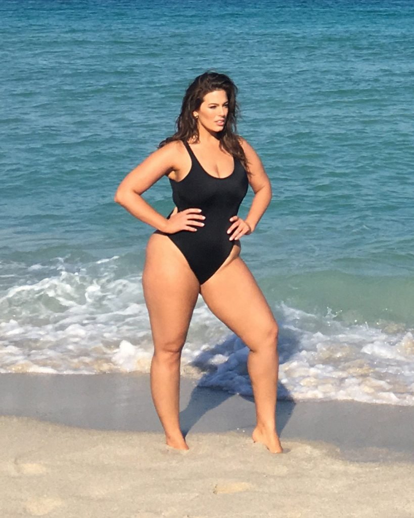 Ashley Graham è qui mostrata in tutta la sua bellezza naturale in una serie di fotografie non ritoccate di un servizio fotografico sulla spiaggia per il lancio della sua collezione di costumi da bagno Estate 2018.