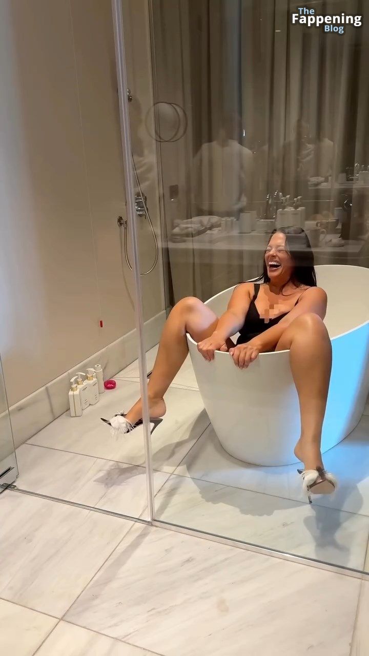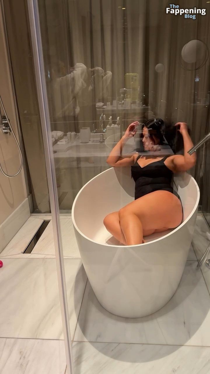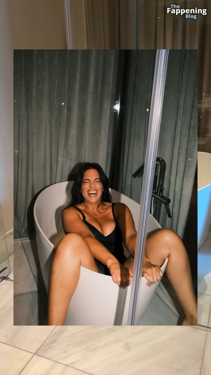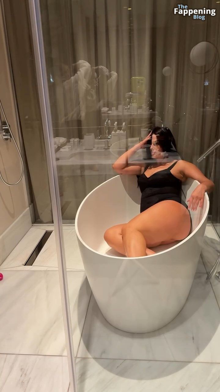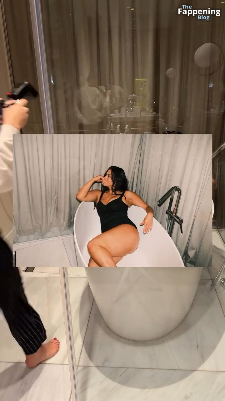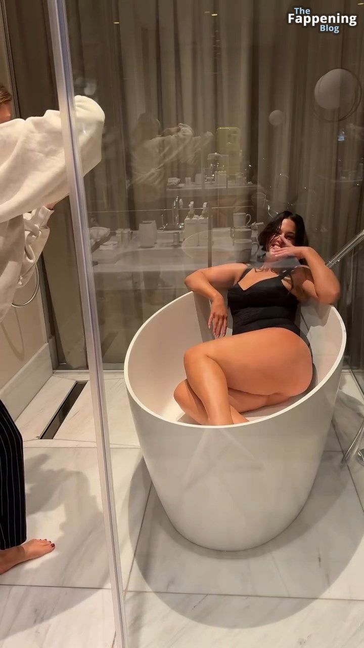 In queste foto, la modella indossa un body nero molto audace, mettendo in mostra il suo sedere succoso e dei tacchi a spillo chic proprio in bagno. Non si trattiene, sfoggiando il suo grande lato B e il suo seno senza vergogna. In uno scatto la si vede salire nella vasca da bagno con un sorriso, mostrando accidentalmente il seno mentre si gode chiaramente ogni momento. Altre foto mostrano Ashley che si rilassa nella vasca con sicurezza, come una vera regina.