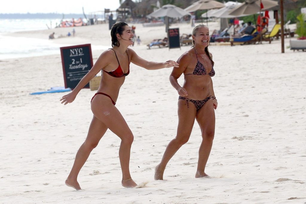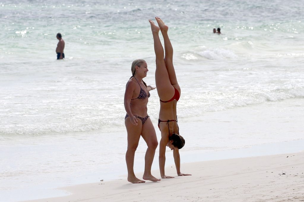 Modella australiana Ashley Hart si gode la spiaggia con un’amica a Cancun, 16/11/2017. La modella di 28 anni dallo spirito libero ha indossato un piccolo bikini rosso e si è tuffata in mare in tandem con la sua amica. Uscita dall’acqua, Ashley ha deciso di mettersi in mostra facendo un handstand di yoga, facendo divertire molto le ragazze.