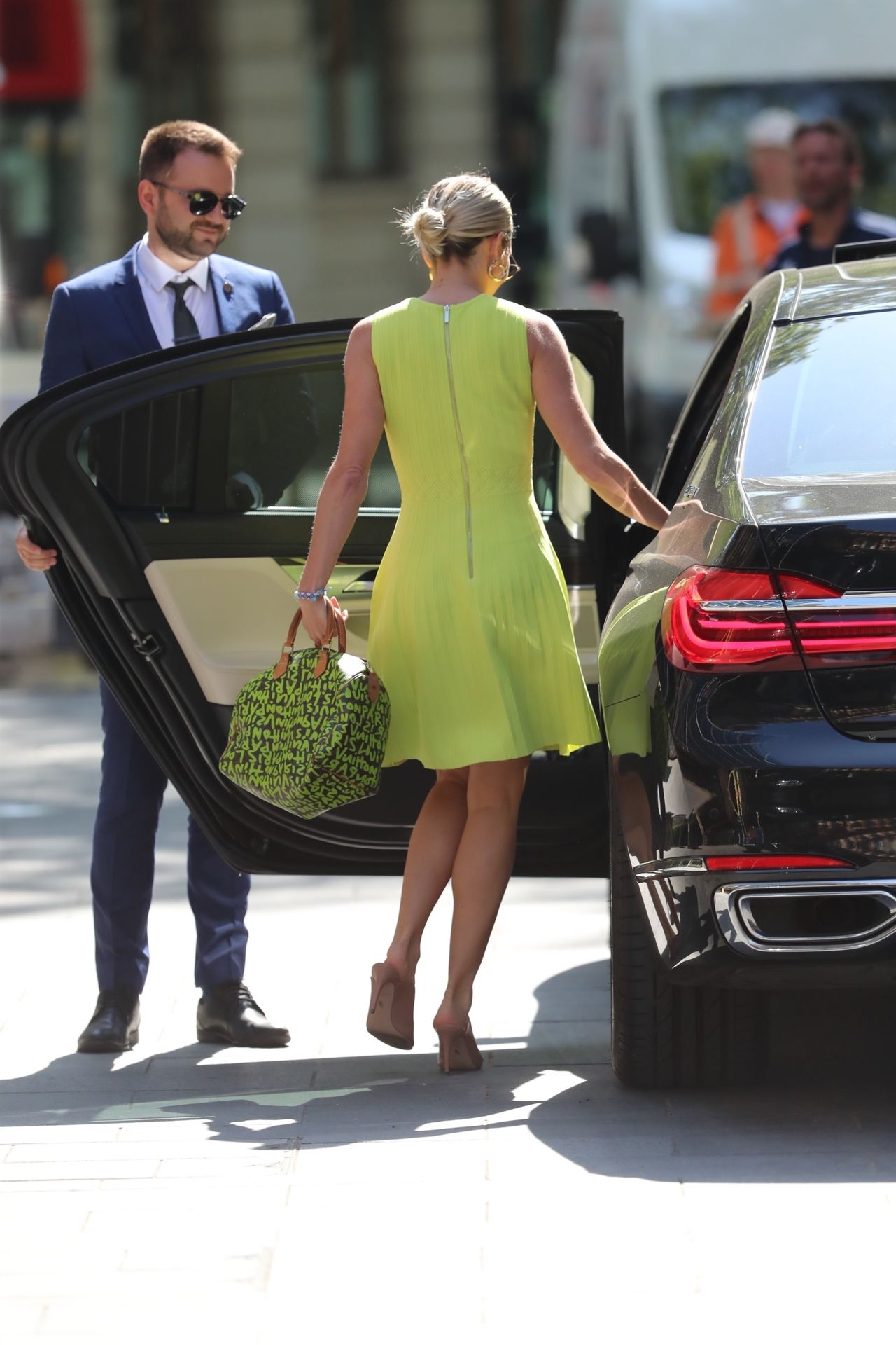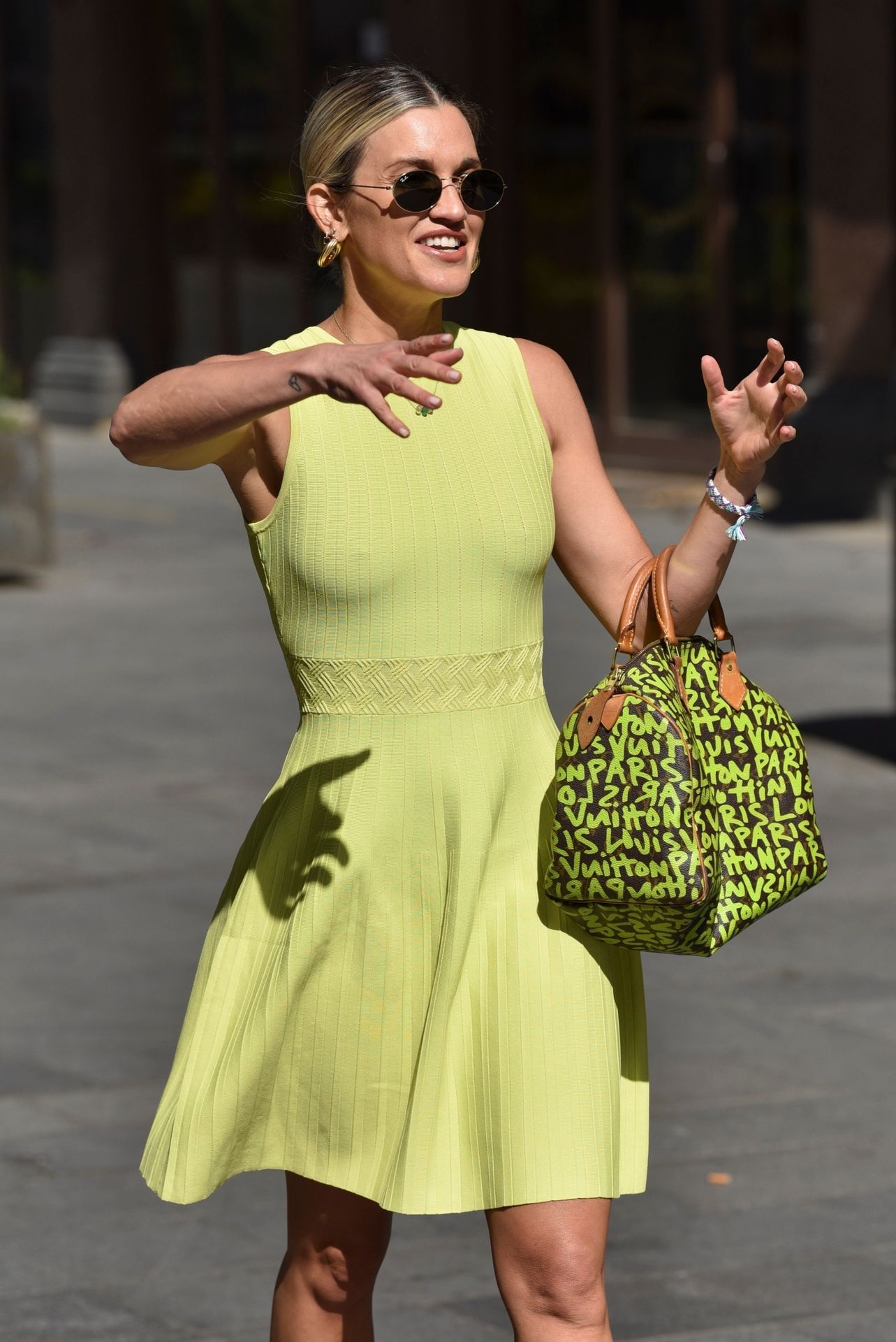 La cantante delle “Pussycat Dolls” Ashley Roberts mostra le gambe uscendo da Heart Radio con un vestito Ted Baker a Londra, 27/05/2020.