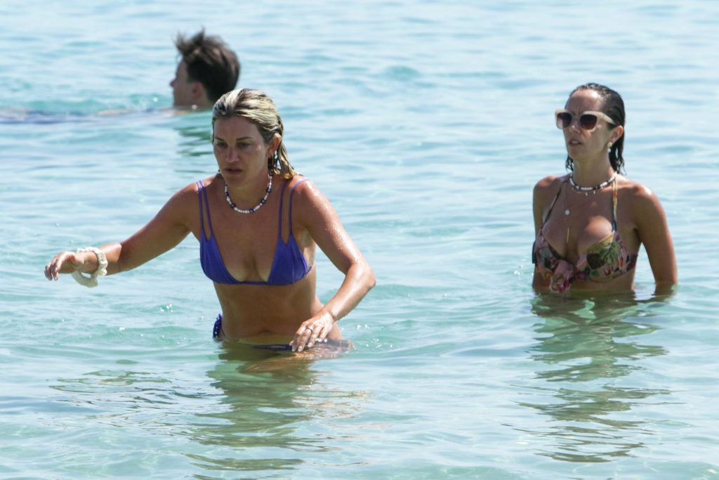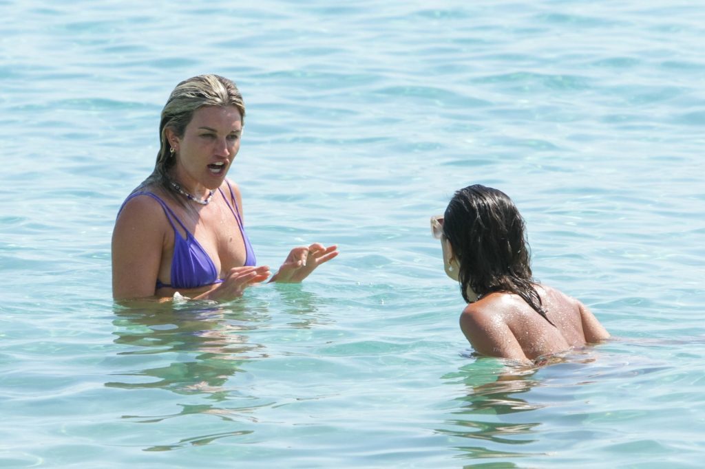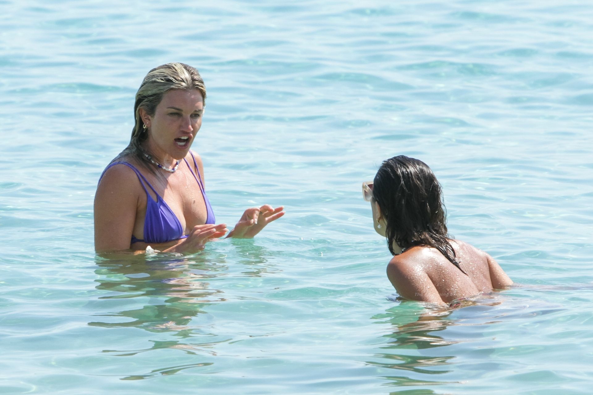 Cantante e conduttrice TV/radio Ashley Roberts è vista mentre mostra la sua invidiabile figura in un bikini tanga blu sulla spiaggia di Mykonos, Grecia, 18/08/2021.