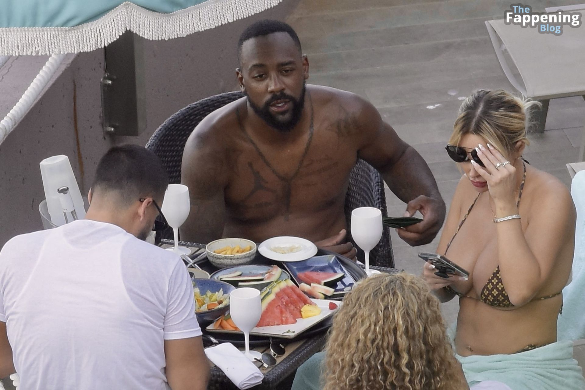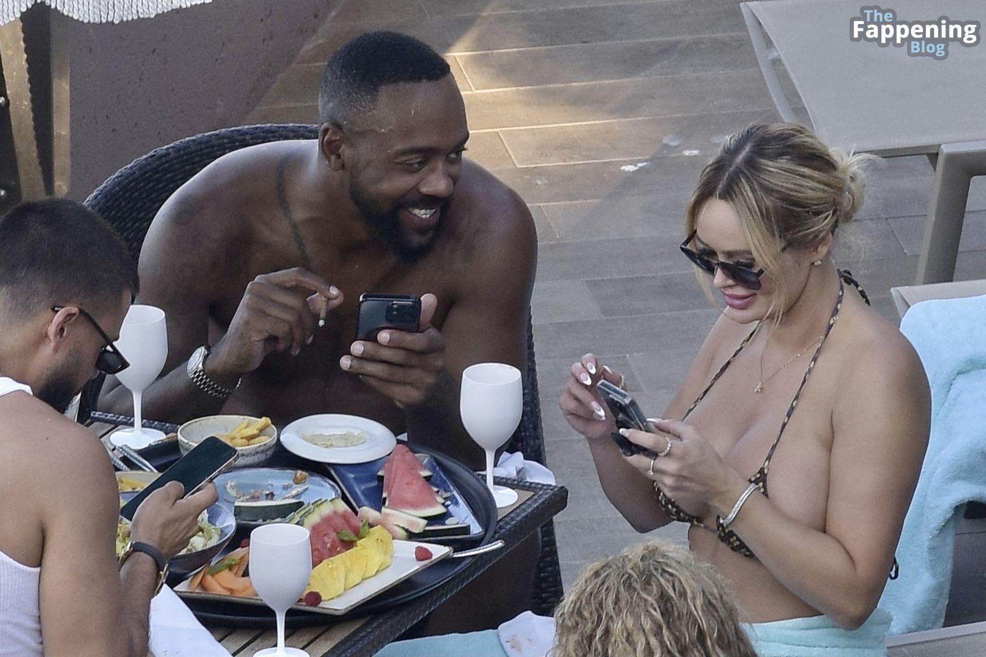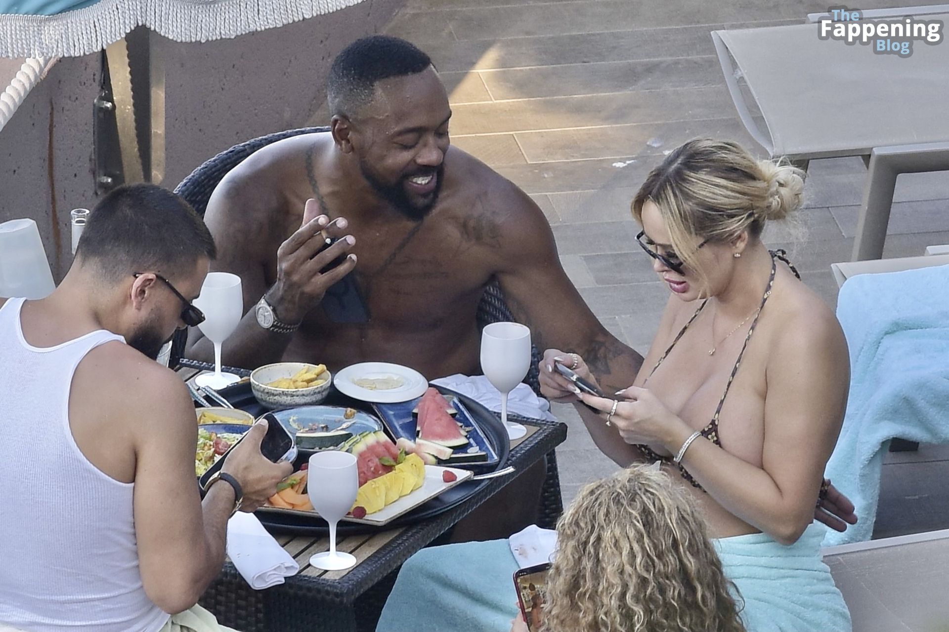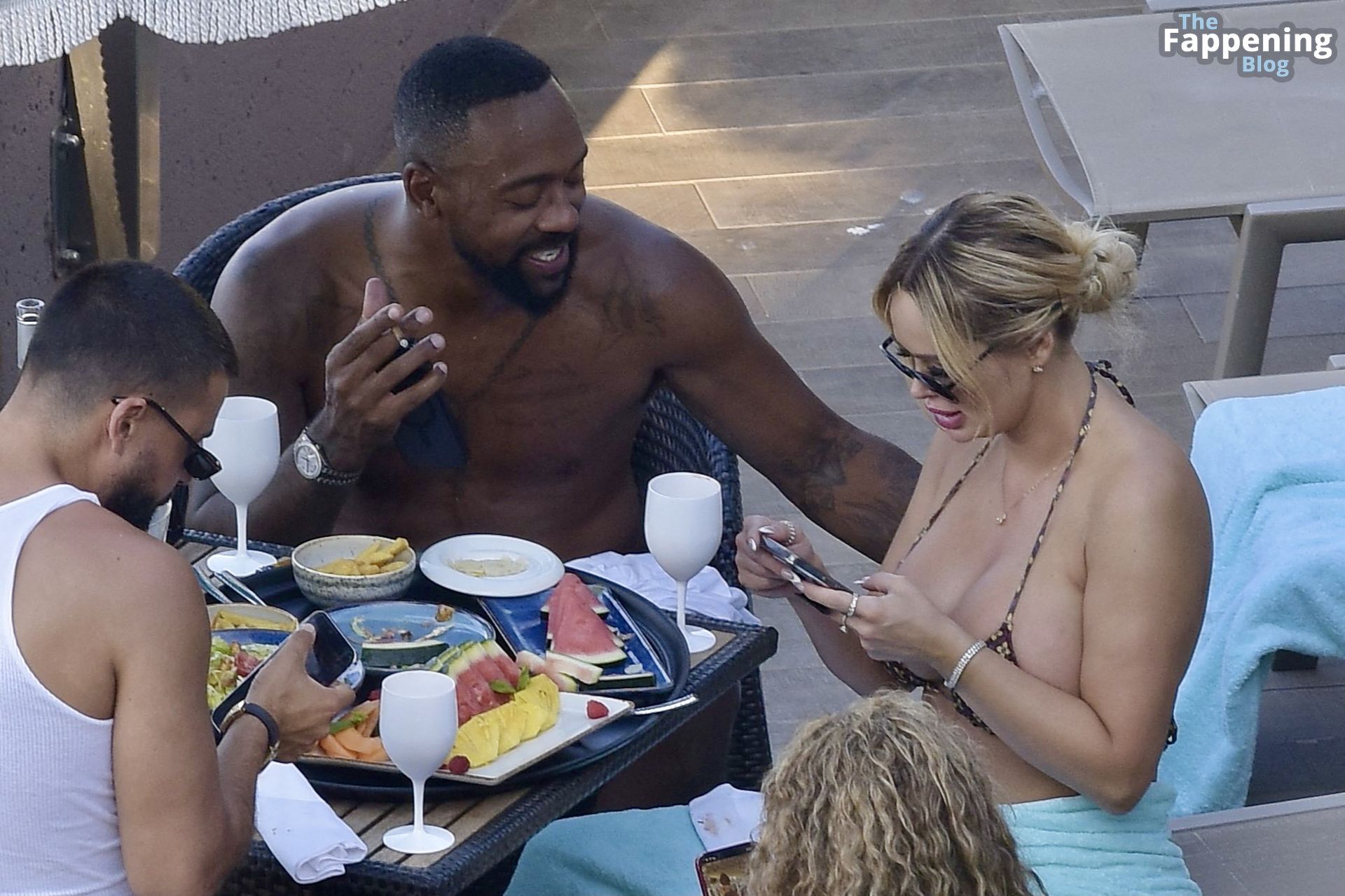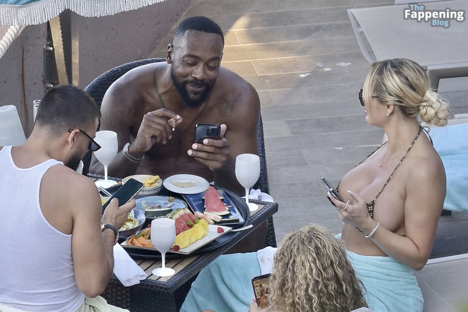La coppia si stava divertendo con gli amici su una terrazza sul mare del lussuoso Tiara Miramar Beach Hotel and Spa, proprio davanti agli altri ospiti. Il tatuato Marcus si sta godendo la vita con la sinuosa modella di Instagram, che sfoggiava un costume a filo quasi inesistente con fantasia e ha condiviso la loro vacanza glamour in Europa sui social.