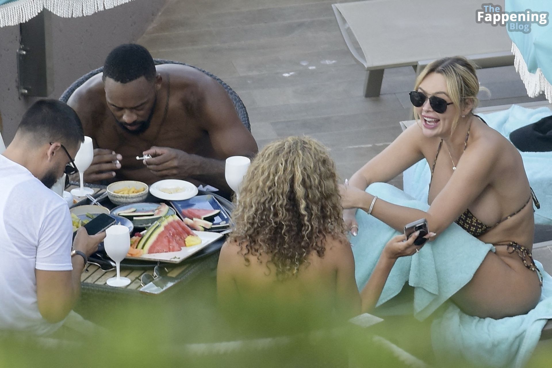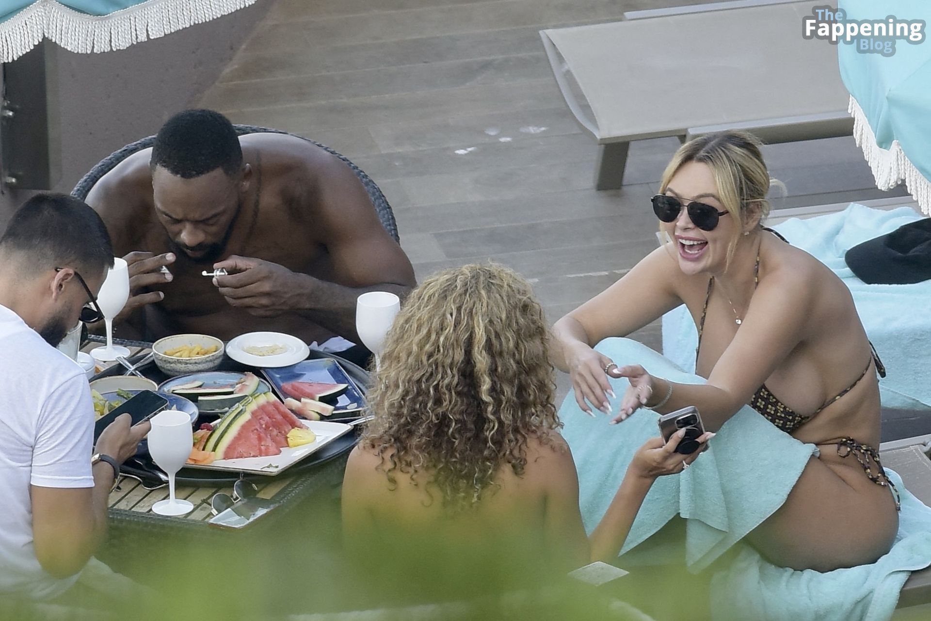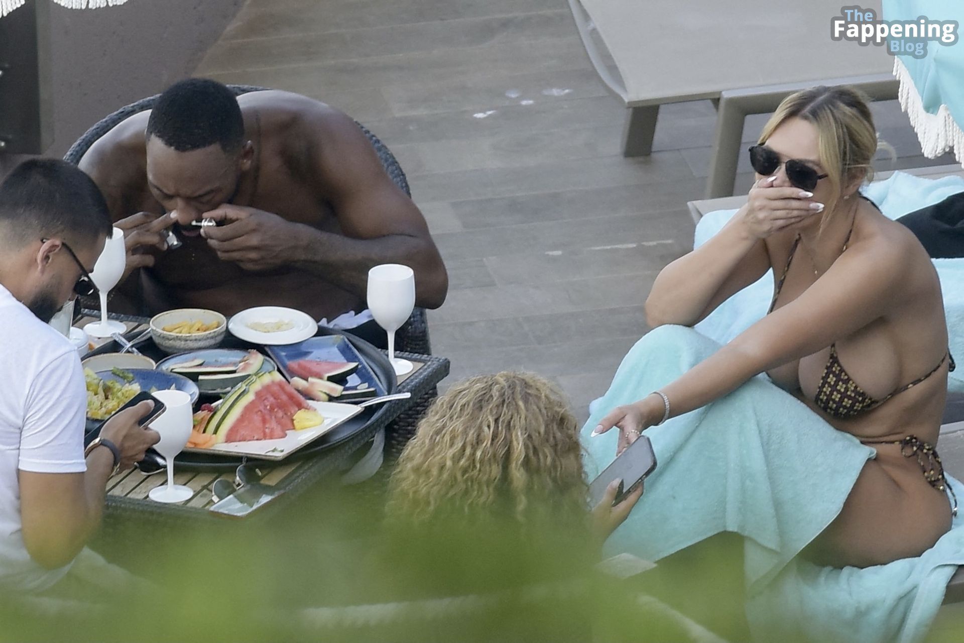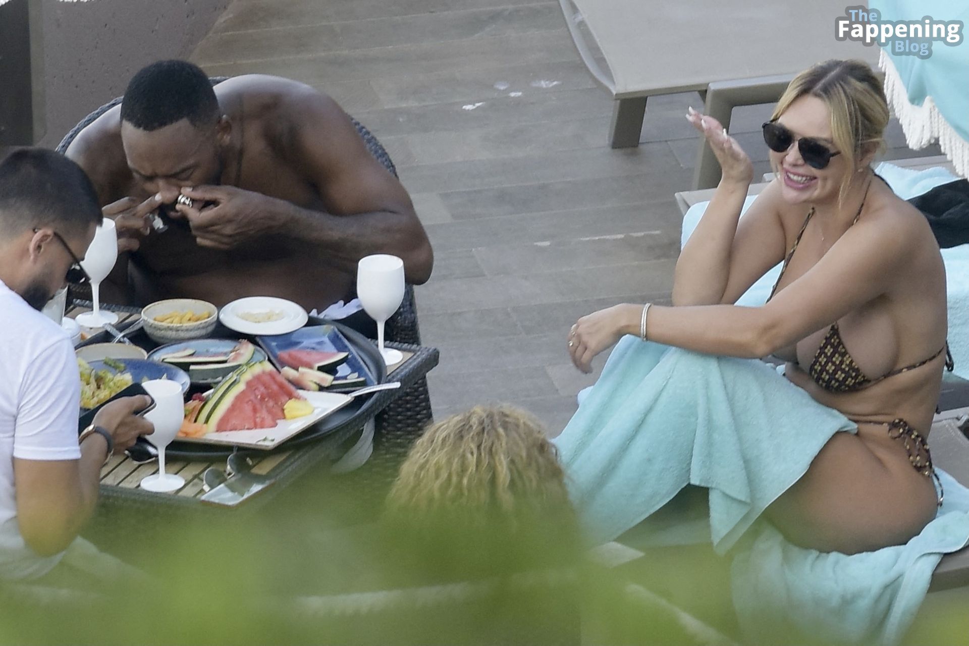 La coppia si stava divertendo con gli amici su una terrazza sul mare del lussuoso Tiara Miramar Beach Hotel and Spa, proprio davanti agli altri ospiti. Il tatuato Marcus si sta godendo la vita con la sinuosa modella di Instagram, che sfoggiava un costume a filo quasi inesistente con fantasia e ha condiviso la loro vacanza glamour in Europa sui social.