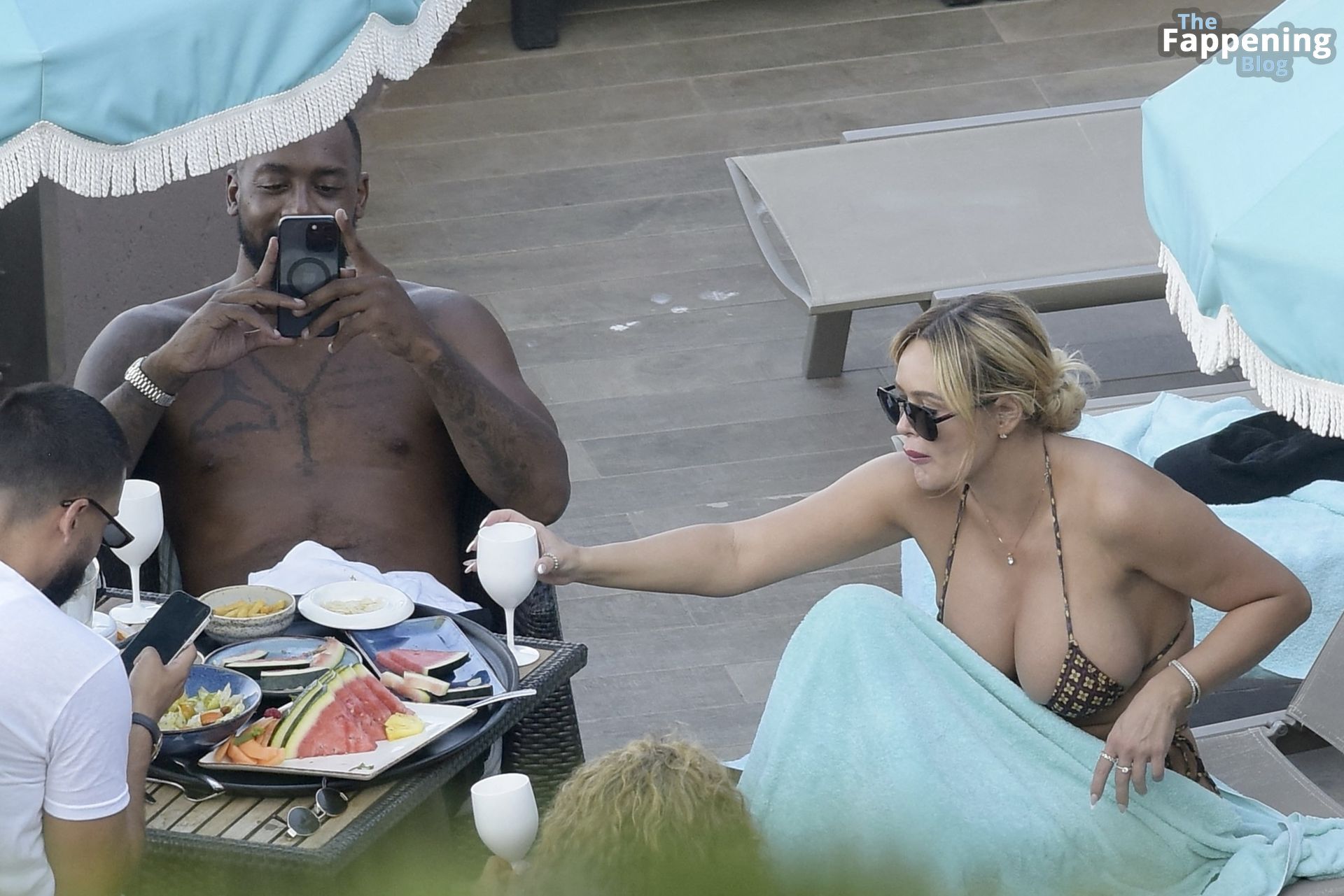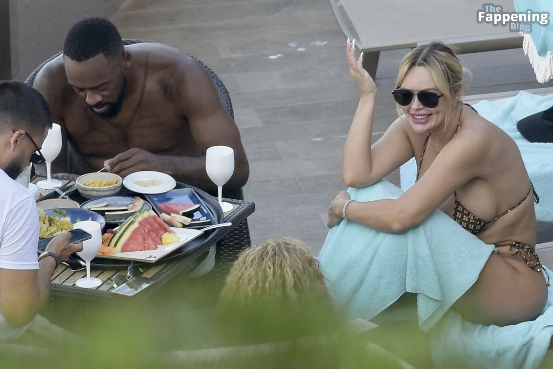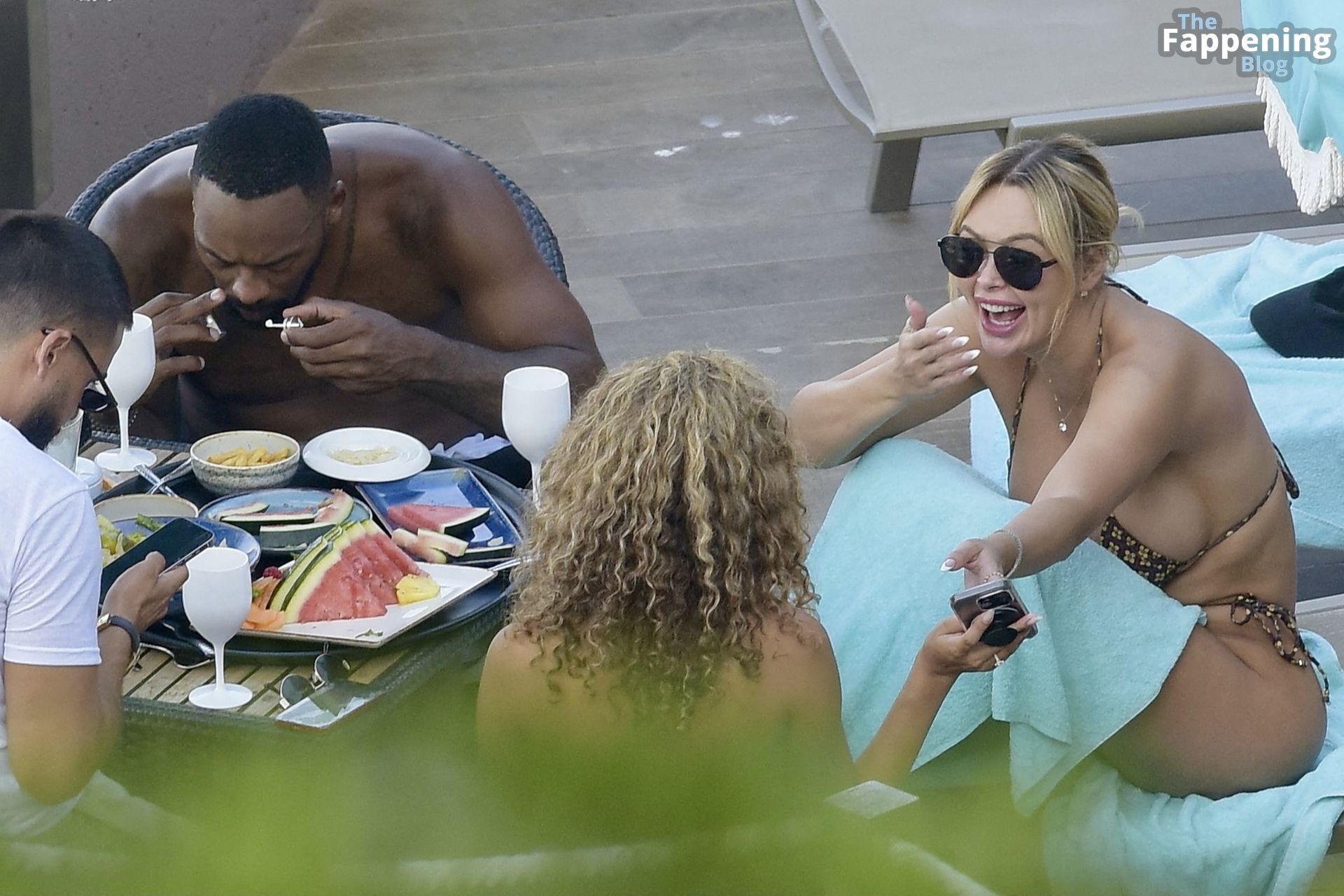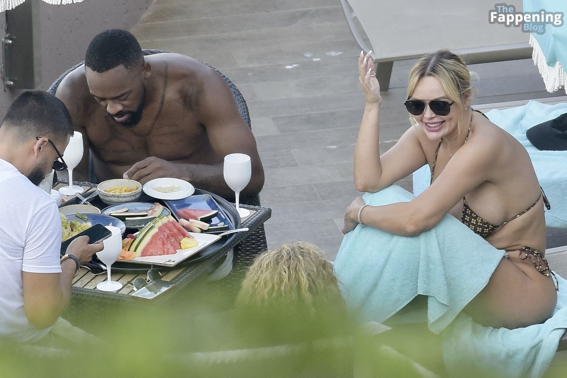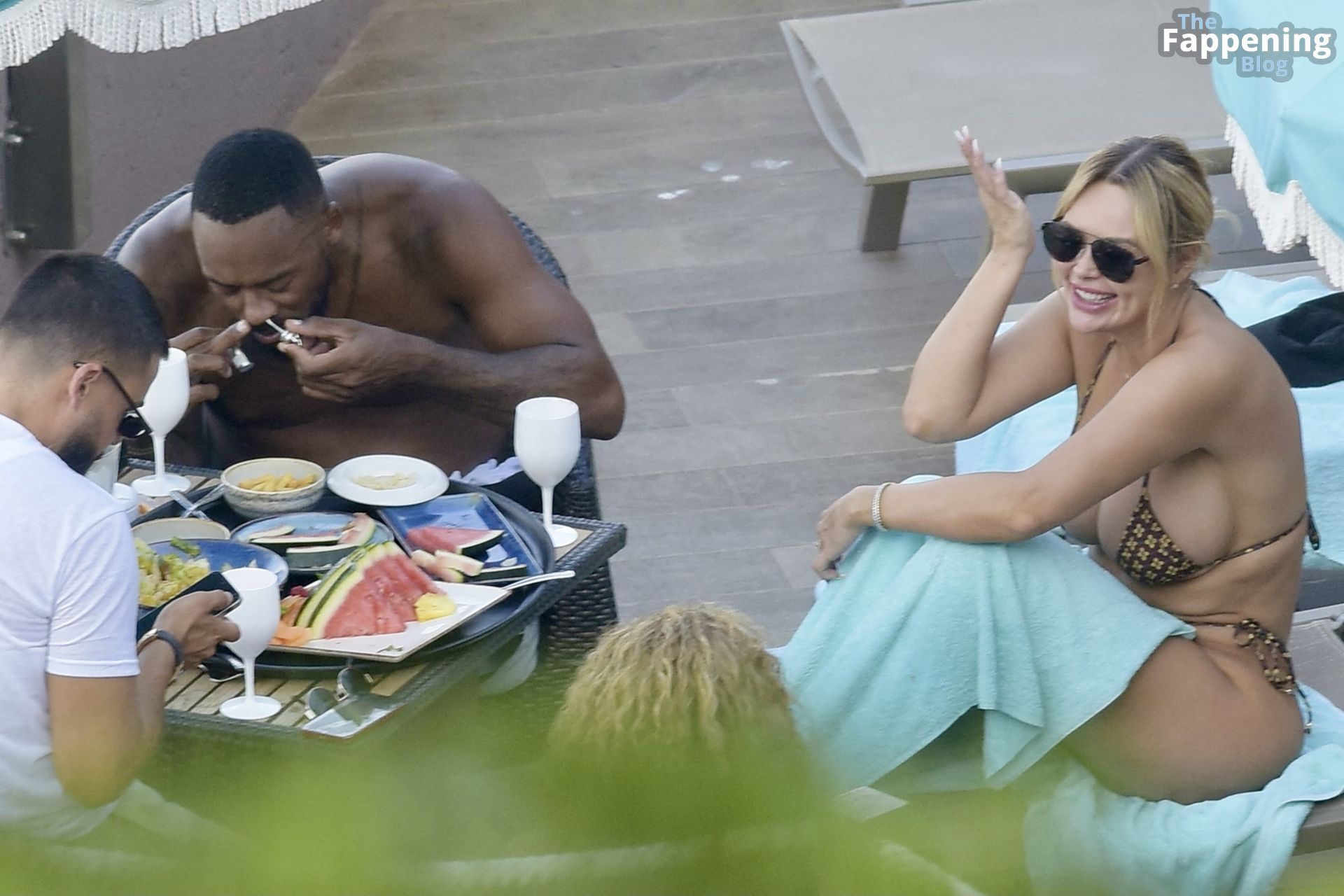 La coppia si stava divertendo con gli amici su una terrazza sul mare del lussuoso Tiara Miramar Beach Hotel and Spa, proprio davanti agli altri ospiti. Il tatuato Marcus si sta godendo la vita con la sinuosa modella di Instagram, che sfoggiava un costume a filo quasi inesistente con fantasia e ha condiviso la loro vacanza glamour in Europa sui social.
