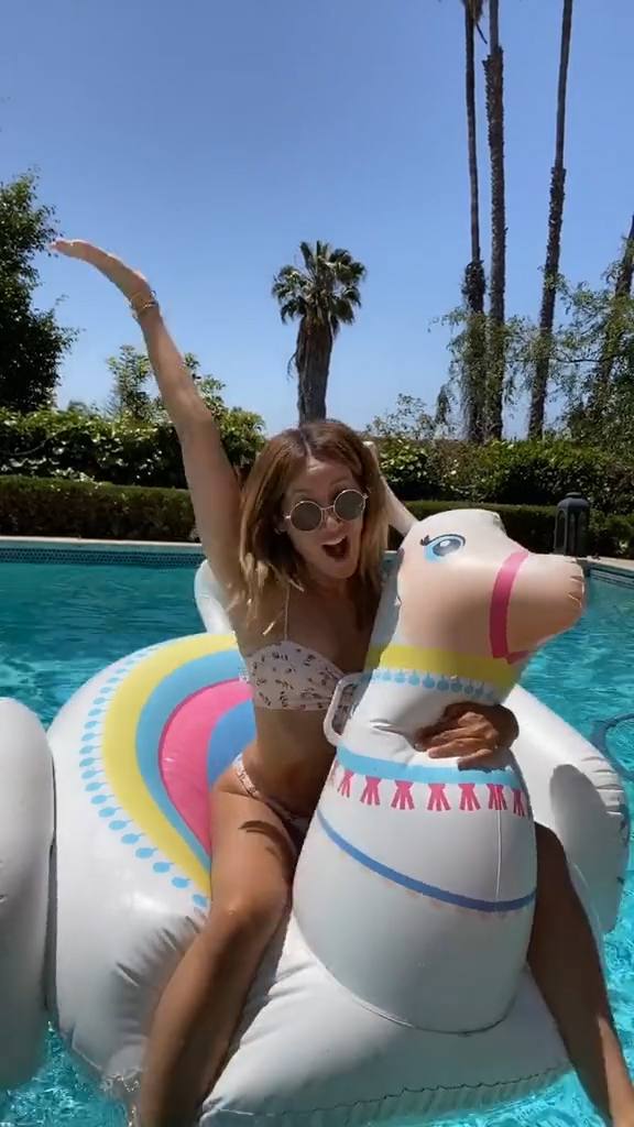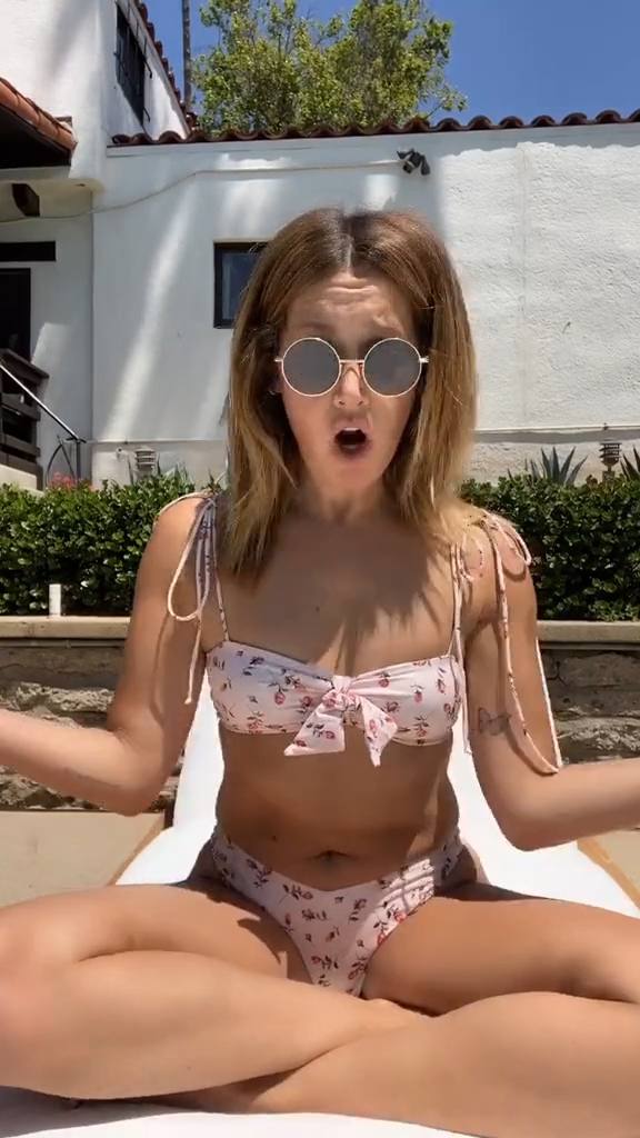 L’attrice/cantante/produttrice americana Ashley Tisdale mostra il suo corpo sexy indossando un bikini a bordo piscina in un caldo video TikTok, 05/02/2020.