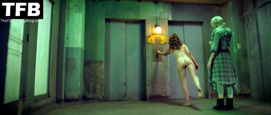 Ashlynn Yennie entra nuda in un corridoio e cammina verso alcuni ascensori, dove Katie Cassidy sta aspettando. Ashlynn mostra seni e sedere mentre parla un po’ con Katie, tutto senza indossare nulla.
