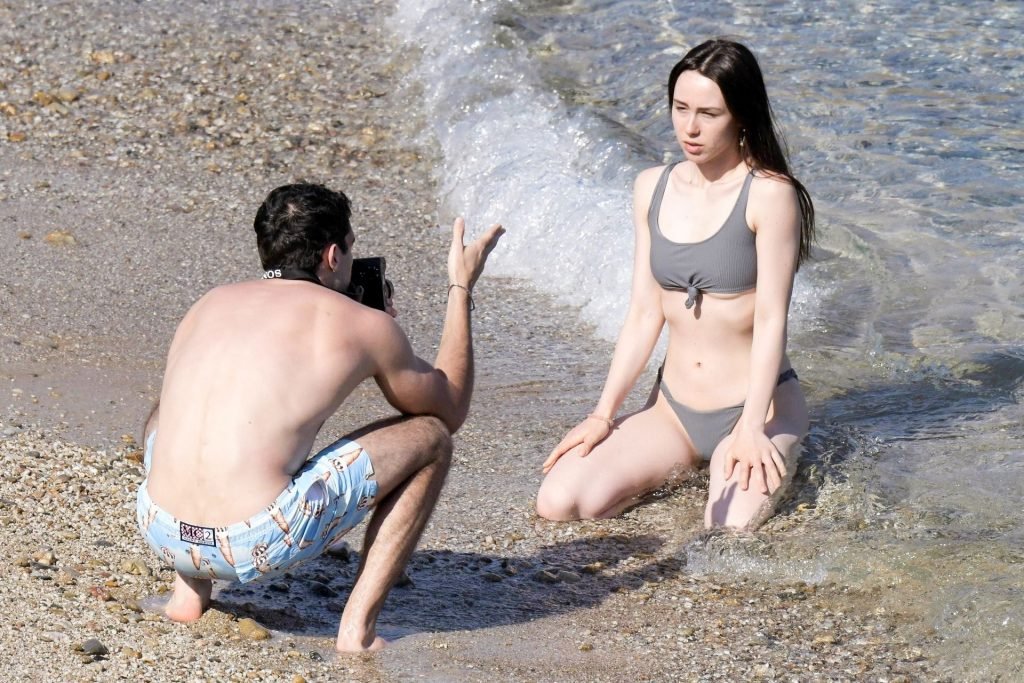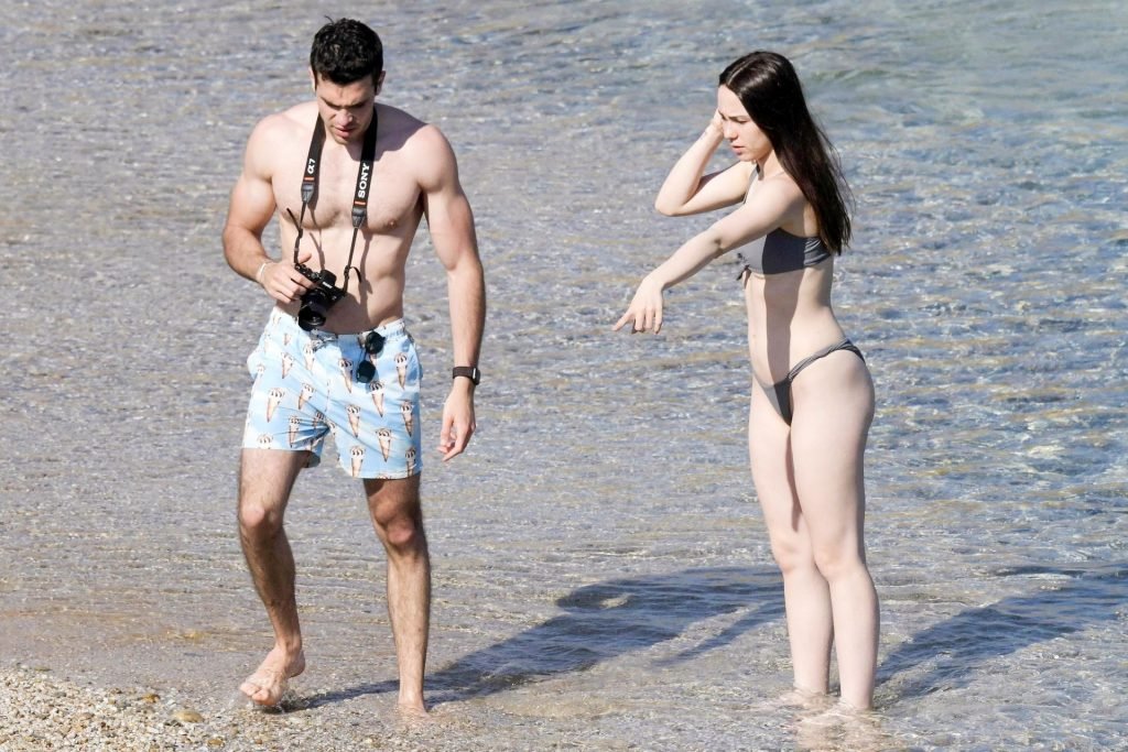 Aurora Ramazzotti, la figlia di Eros Ramazzotti, e il suo fidanzato Goffredo Cerza hanno trascorso del tempo sulla spiaggia del lussuoso resort Liasti, 06/09/2019.
