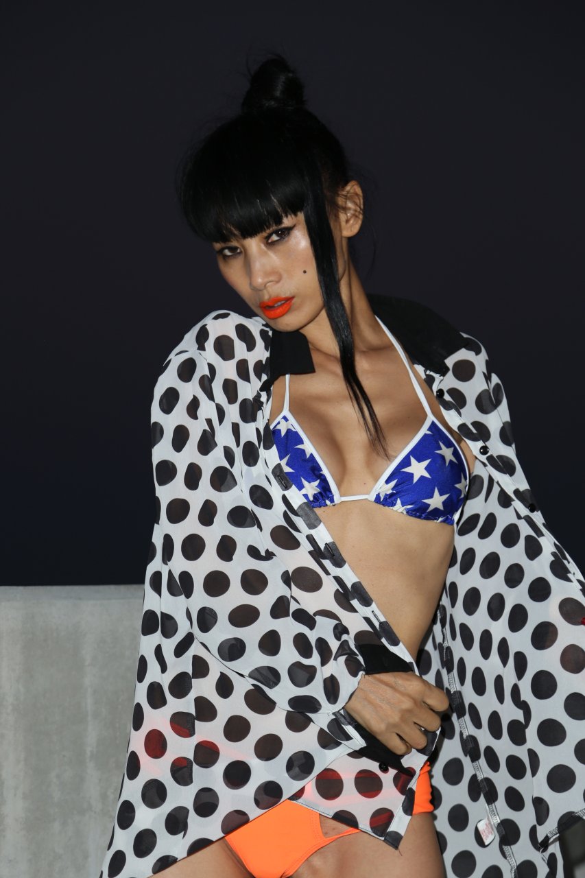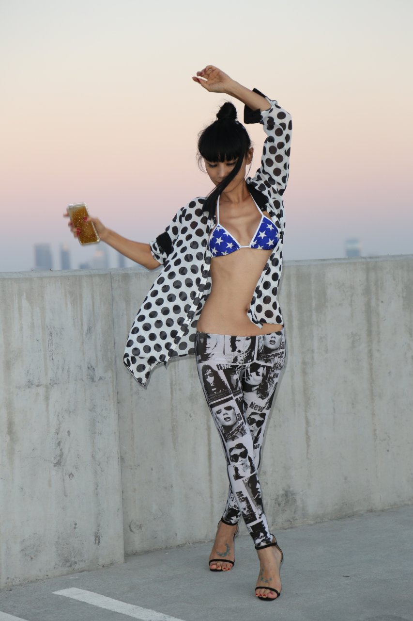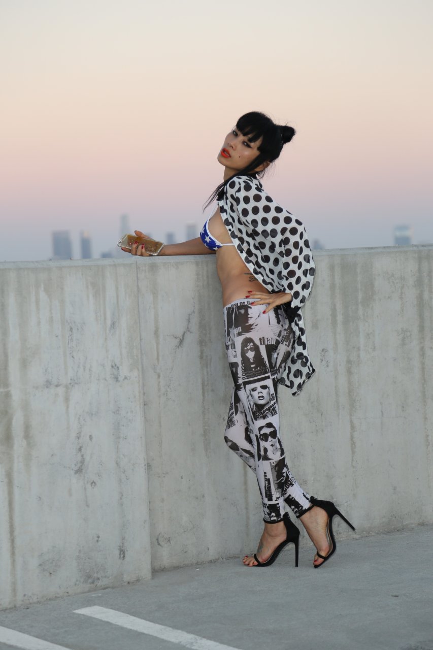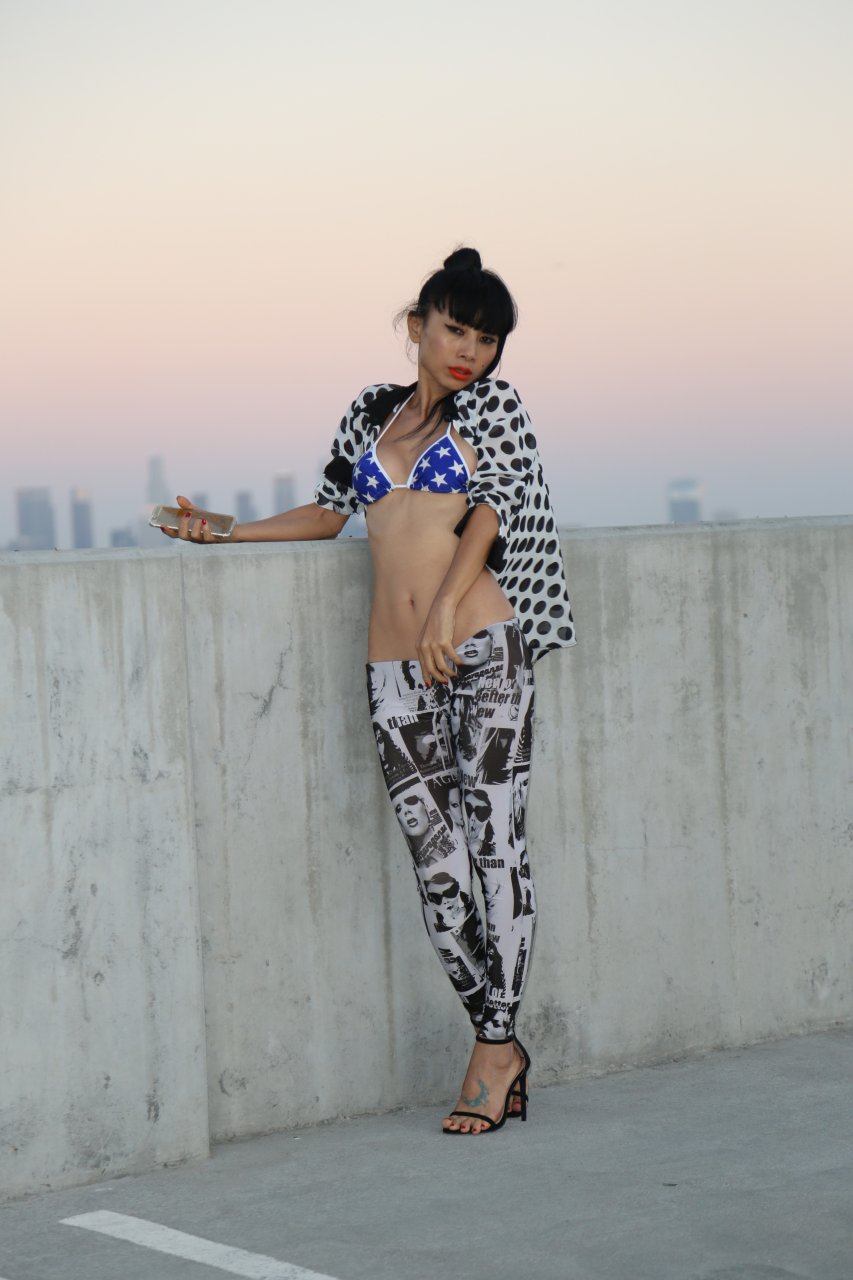 Bai Ling mostra la sua vita sottile in un bikini blu-arancione nel parcheggio del teatro ArcLight a Los Angeles, 10/08/2016. Bai Ling è un’attrice cinese-americana. Età: 49 (10 ottobre 1966).