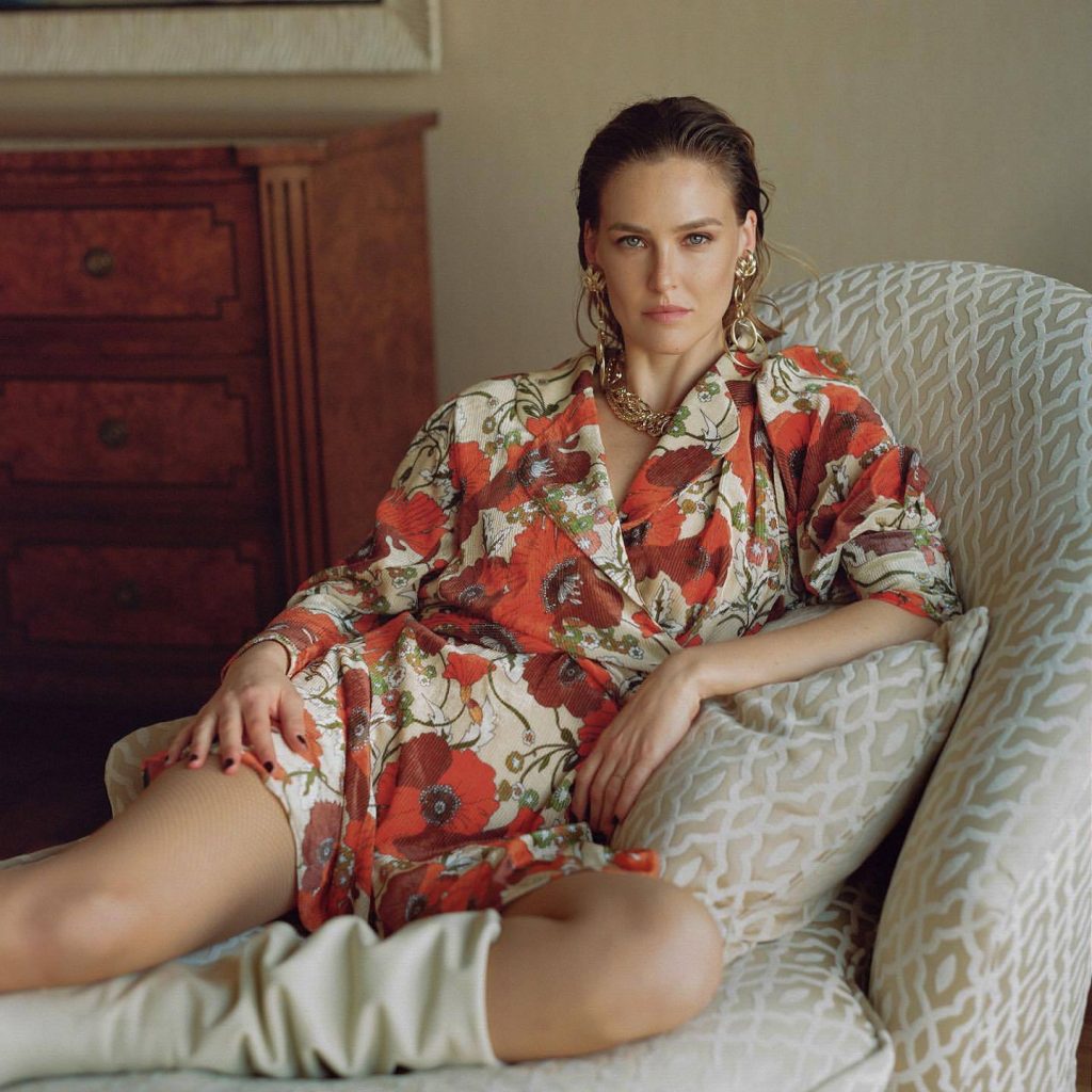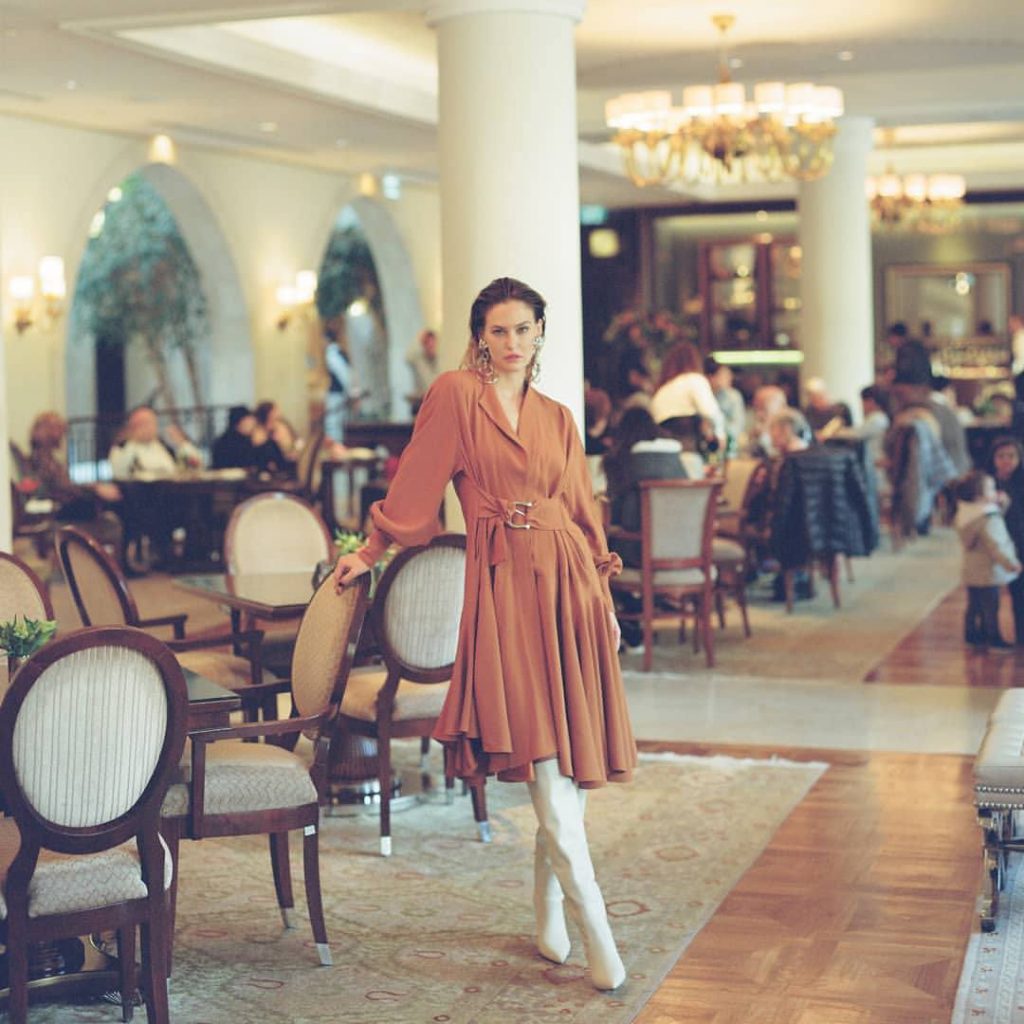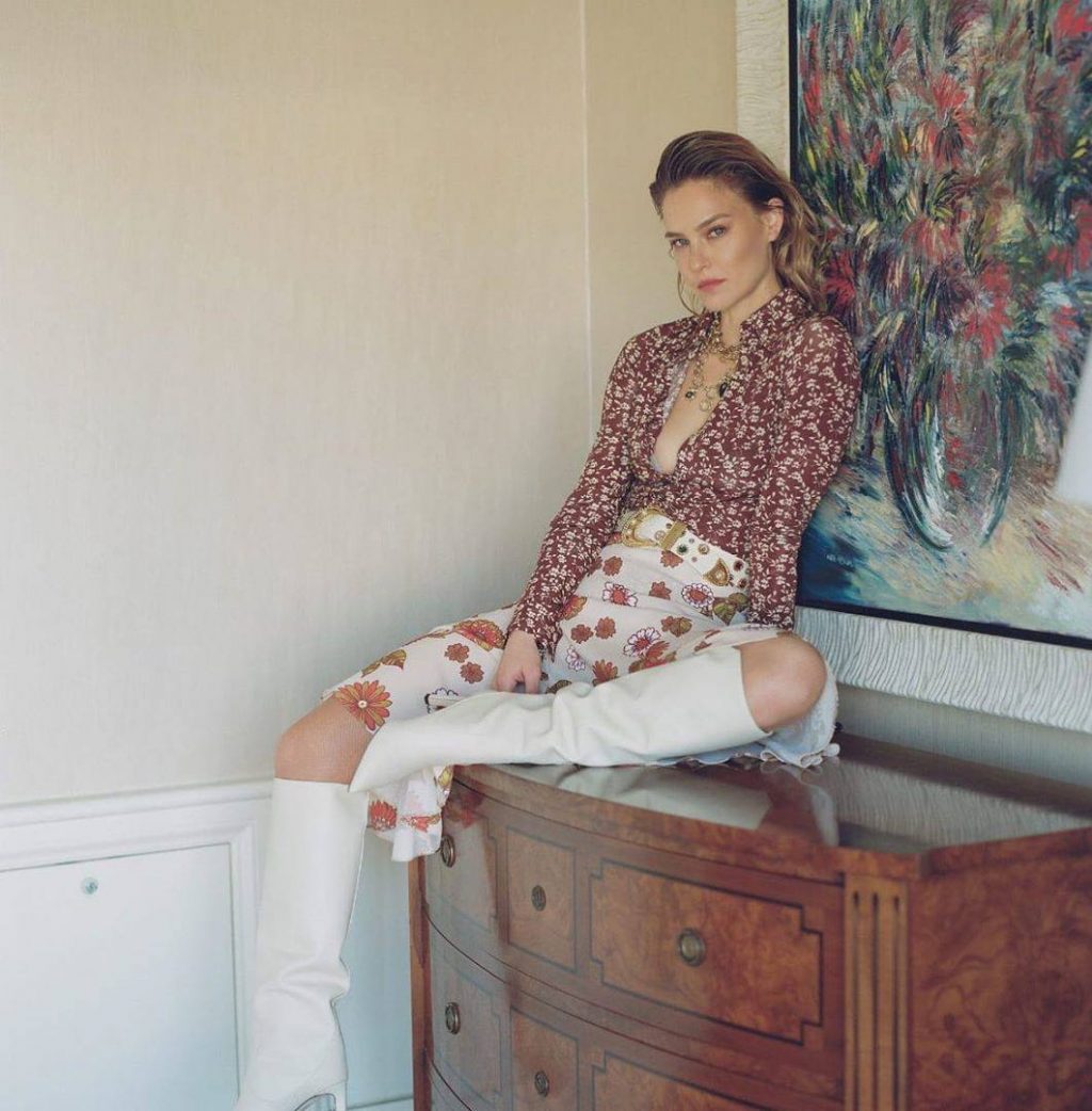 La top model israeliana Bar Refaeli mostra le sue sexy gambe snelle posando in hotel in un servizio fotografico di Dudi Hasson per la collezione di abbigliamento Dodo Bar Or (2019).
